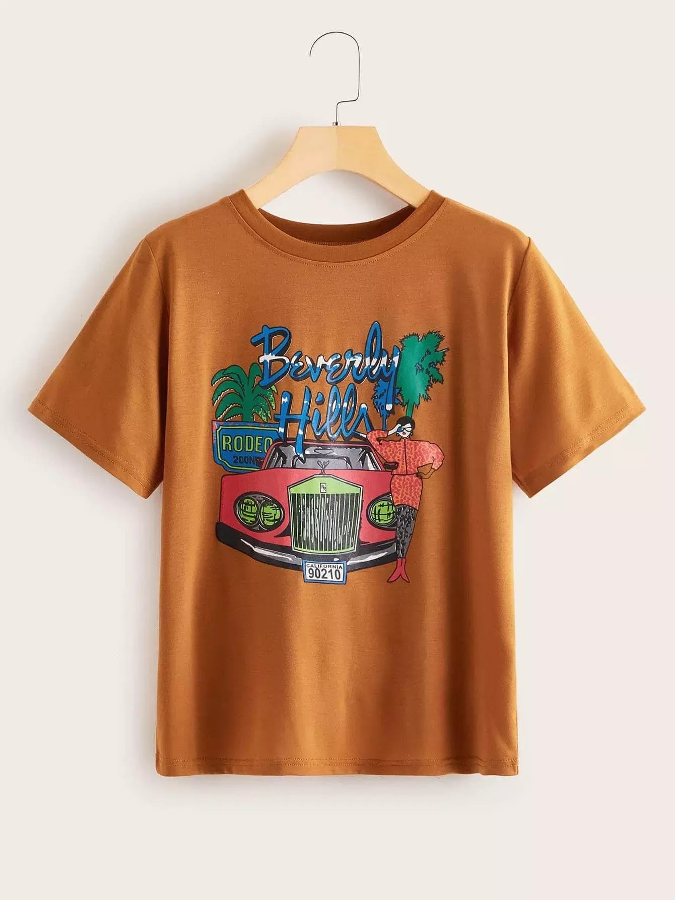 تي شيرت برسوم سيارة كرتونية ورسومات حروف