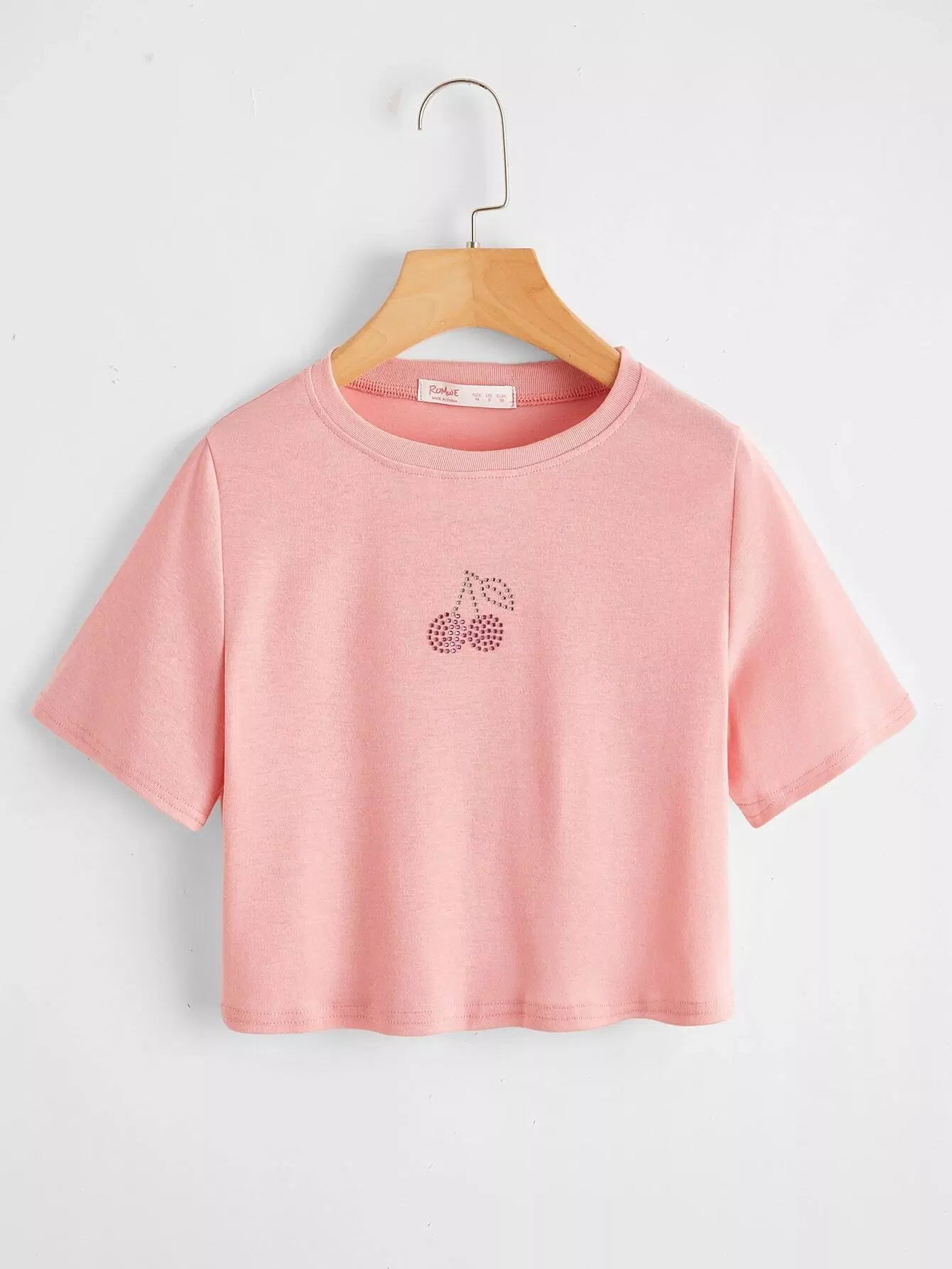 بلوزة قصيرة مزينة بأحجار الكرز المزخرفة بالكرز