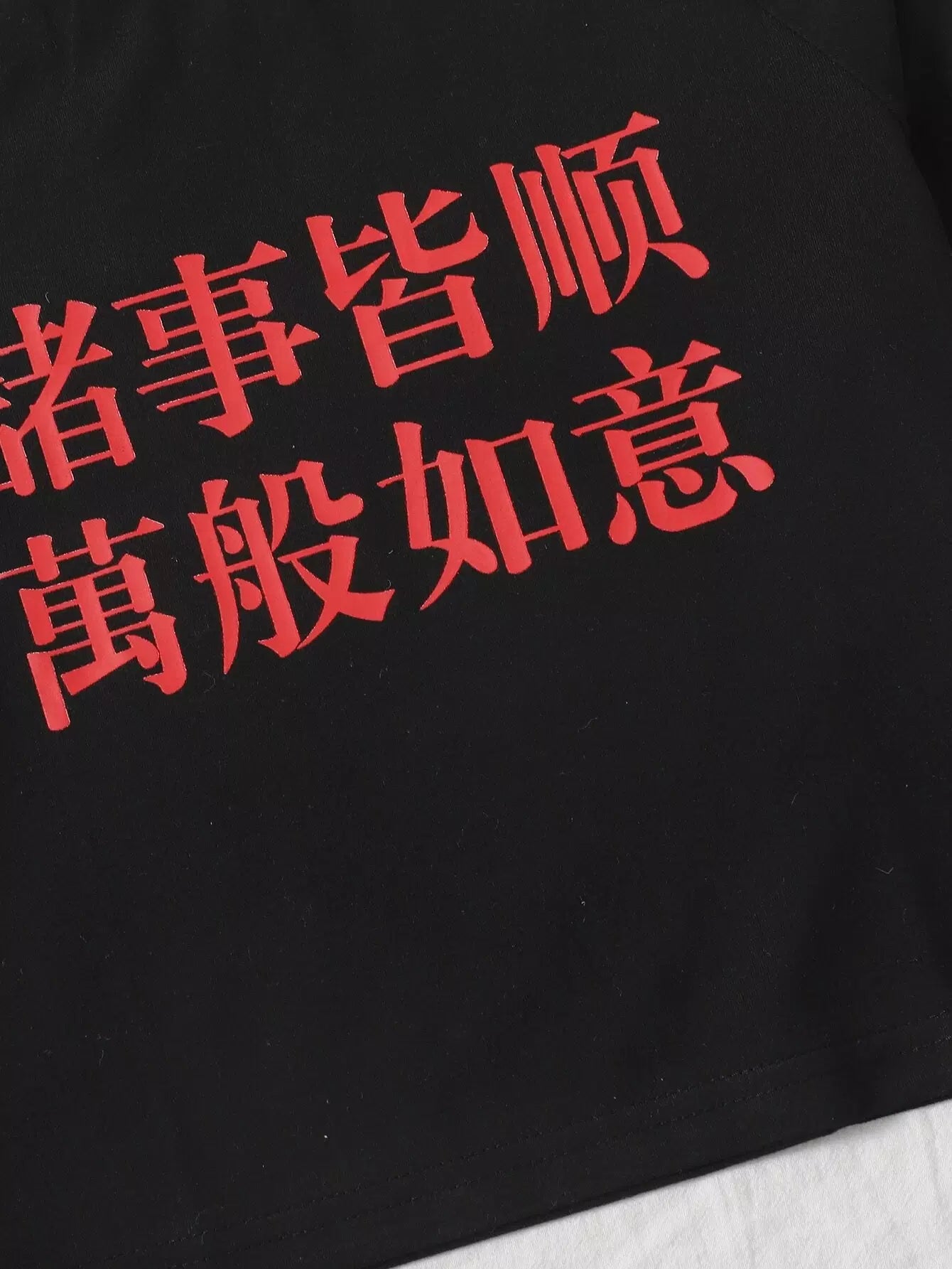 تي شيرت بأكمام راجلان ذات رسومات صينية بأكمام قصيرة