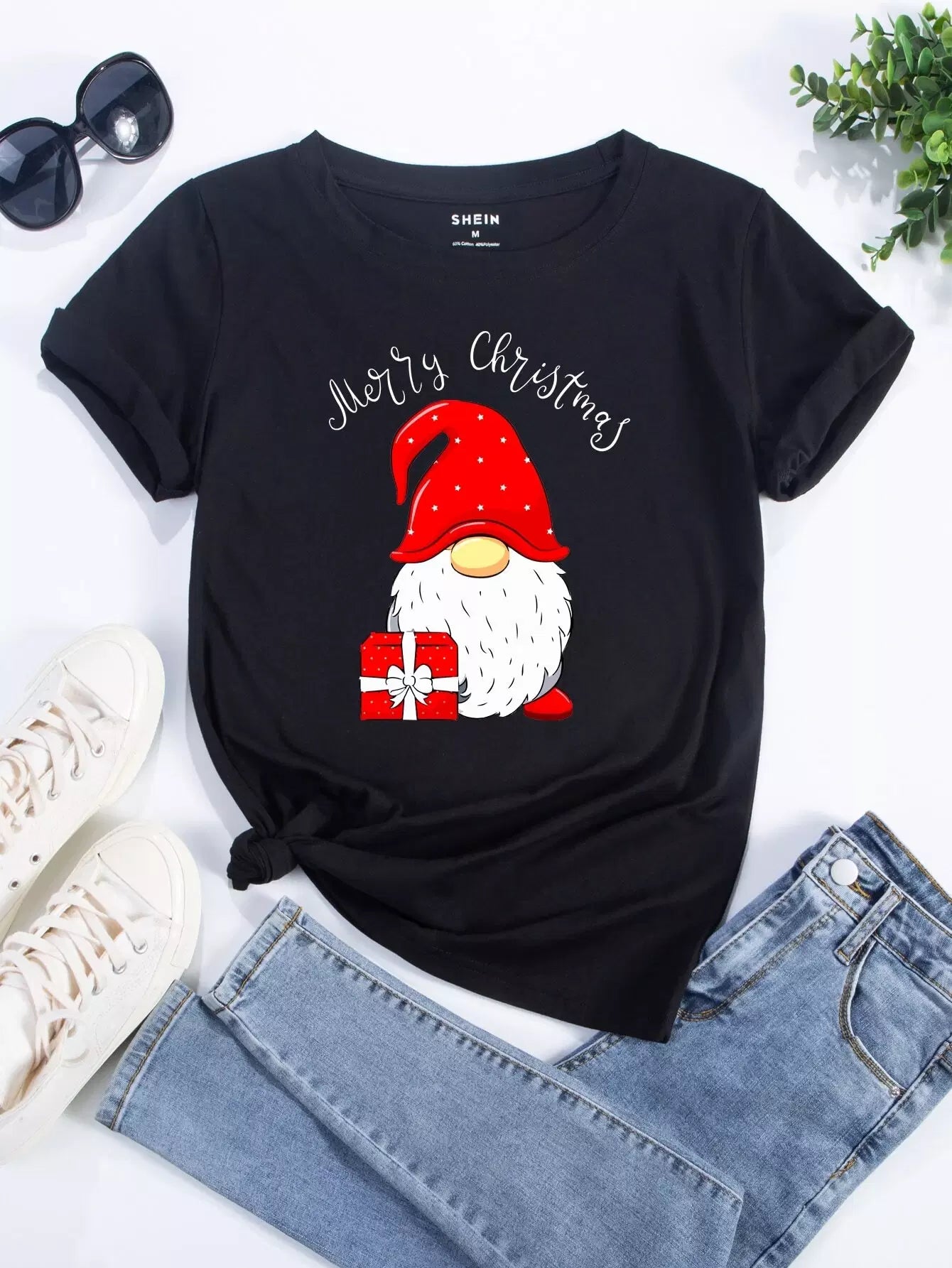 تي شيرت برقبة مستديرة مطبوع عليه طبعة عيد الميلاد