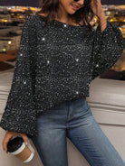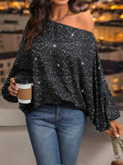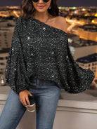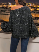 Clasi Women's Casual Oblique Shoulder Long Sleeve Holiday Blouse, Everyday Wear One Shoulder Top