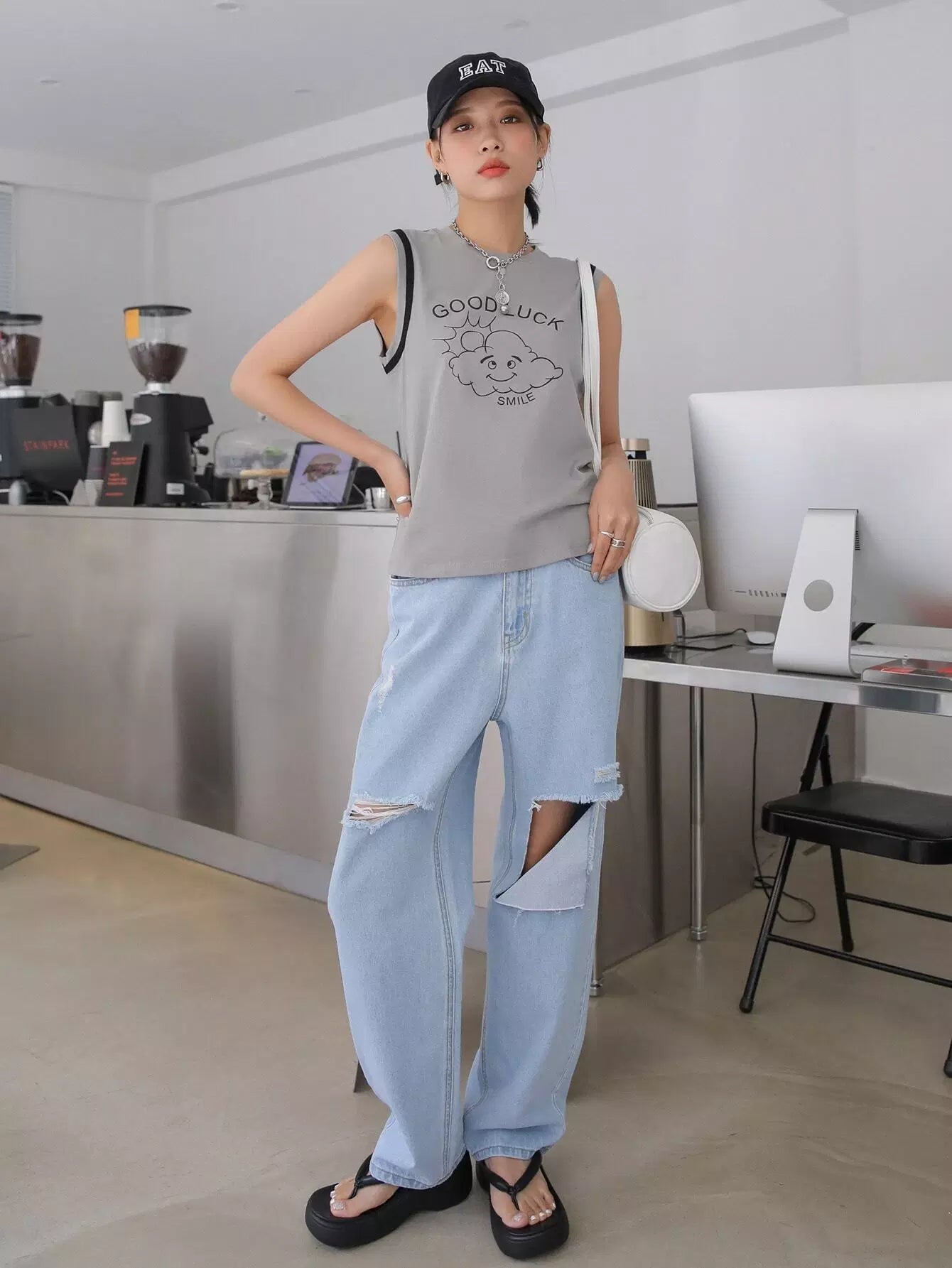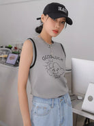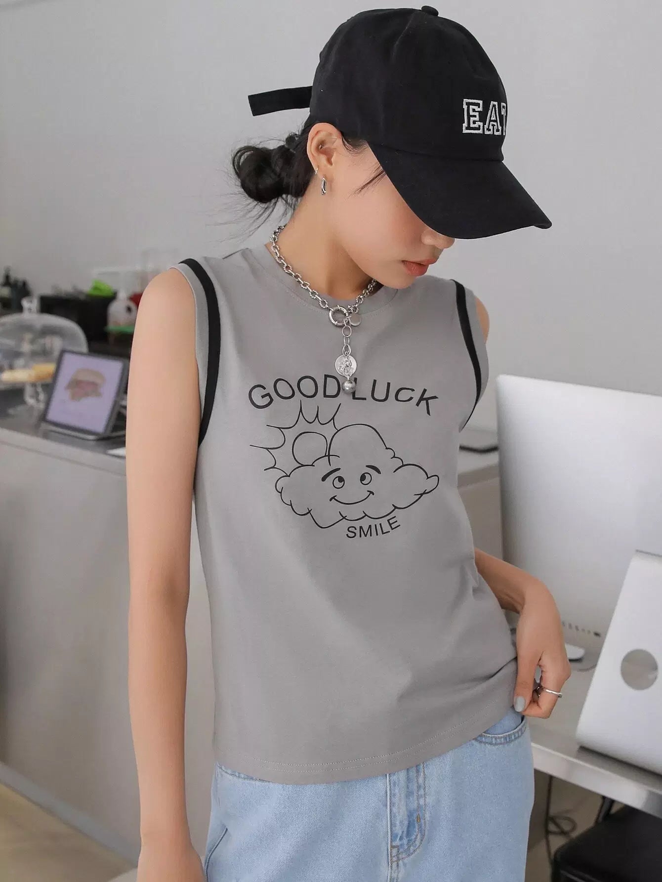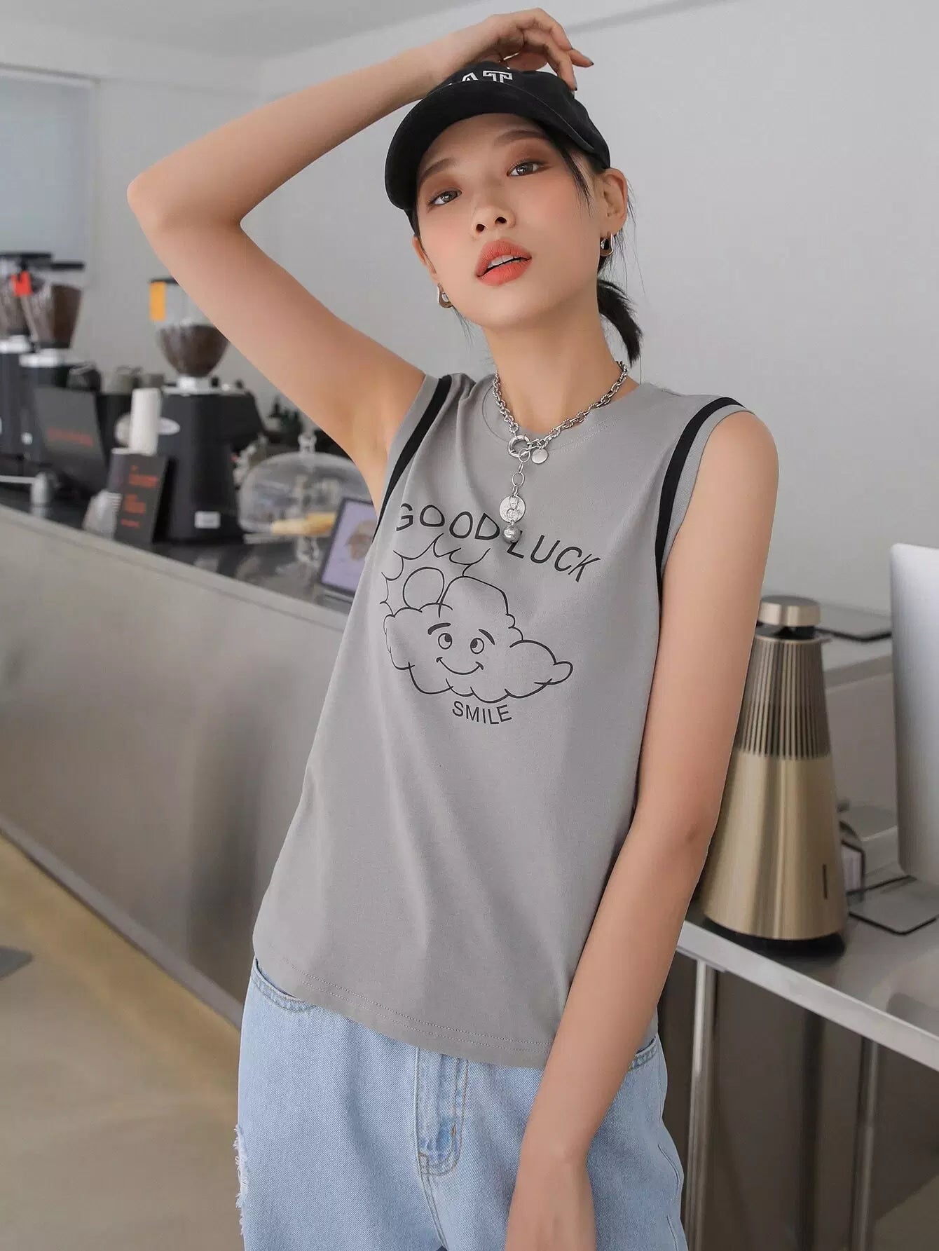 تانك بدون أكمام بدون أكمام مزين بالرسومات على شكل سحابة وحروف