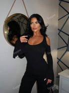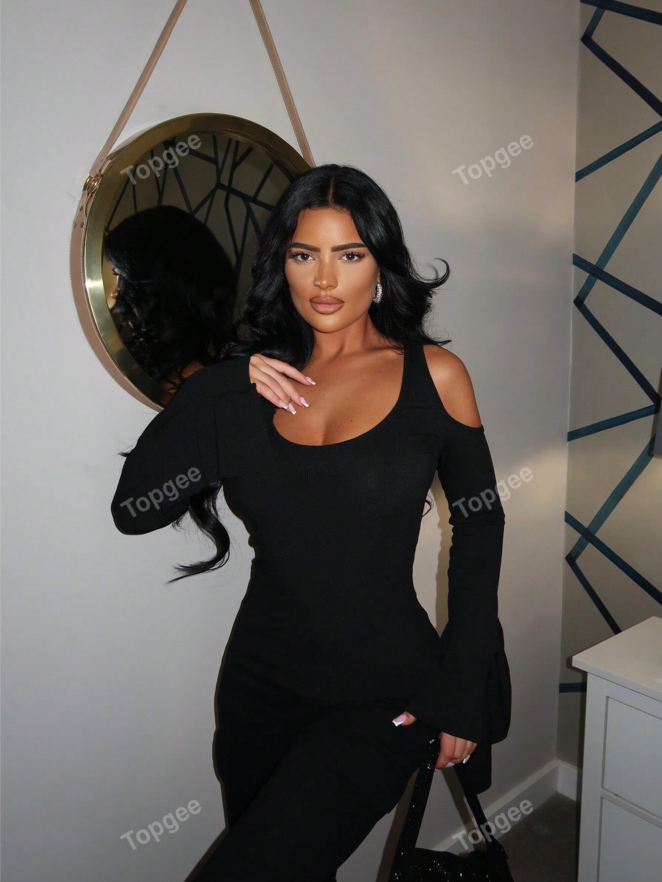 تي شيرت بأكمام مكشكشة وأكتاف مكشوفة