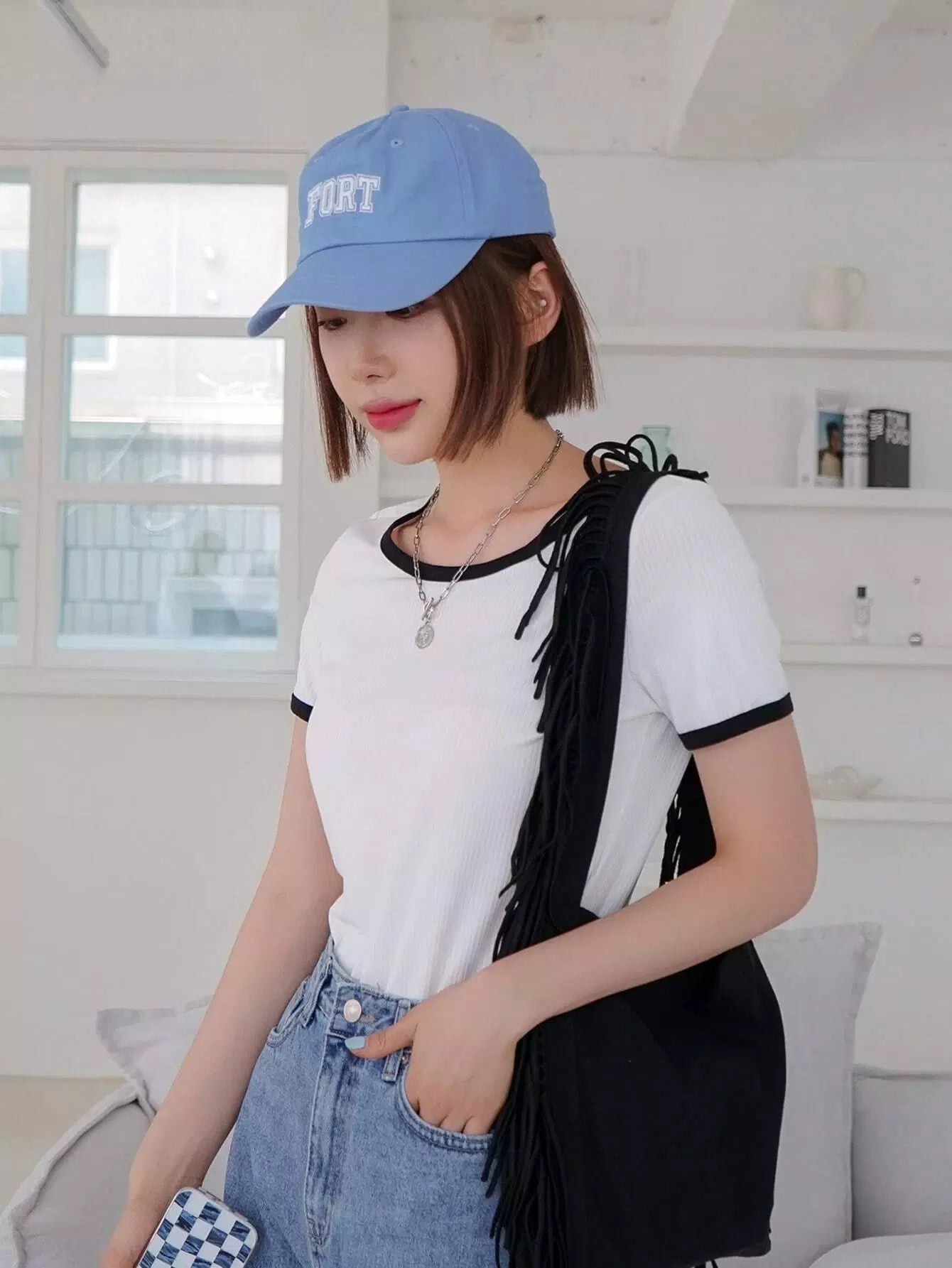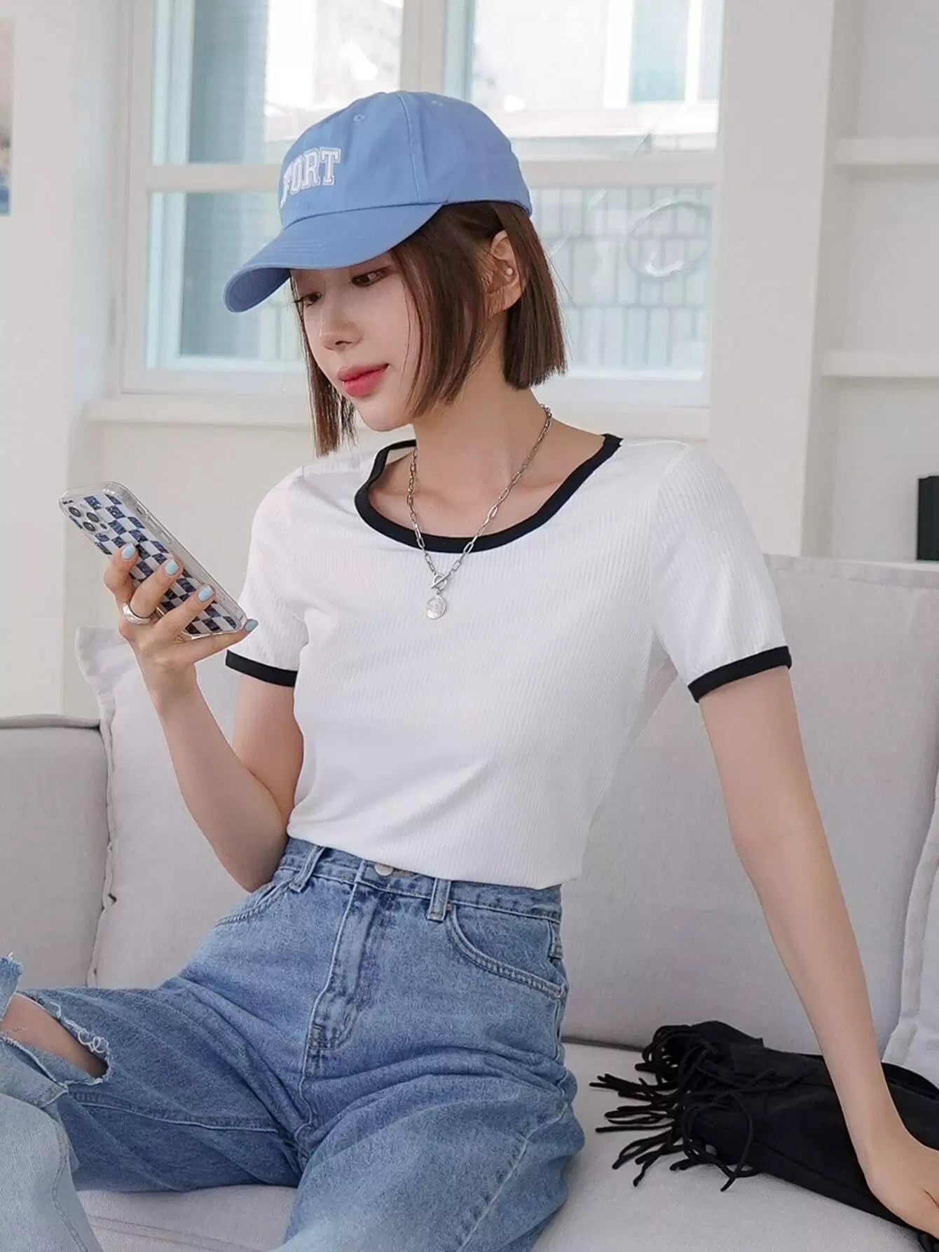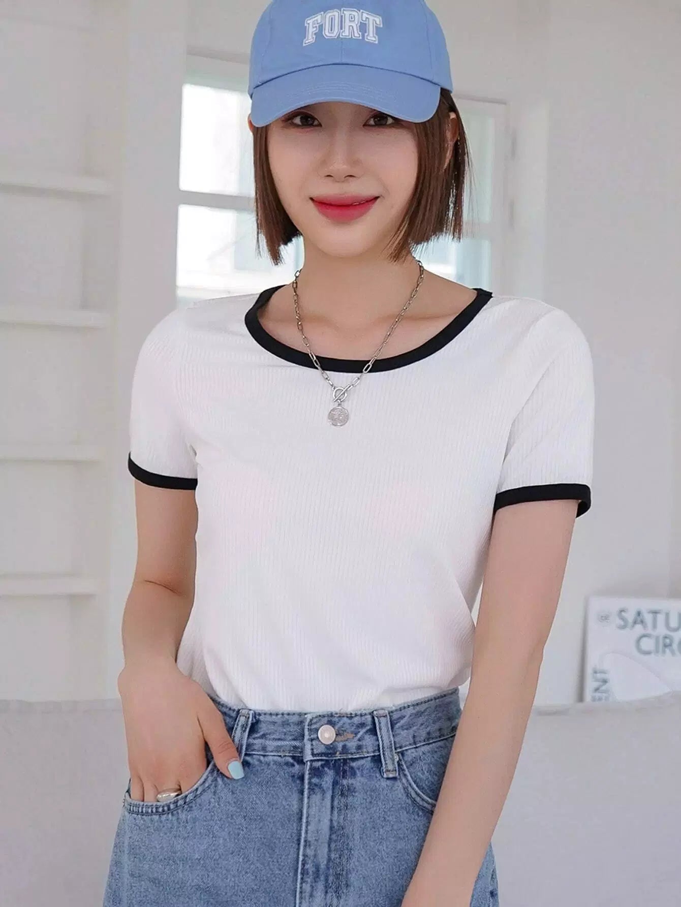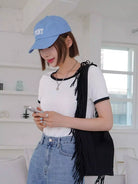 تي شيرت بأكمام قصيرة الأكمام ملزمة بلون مغاير
