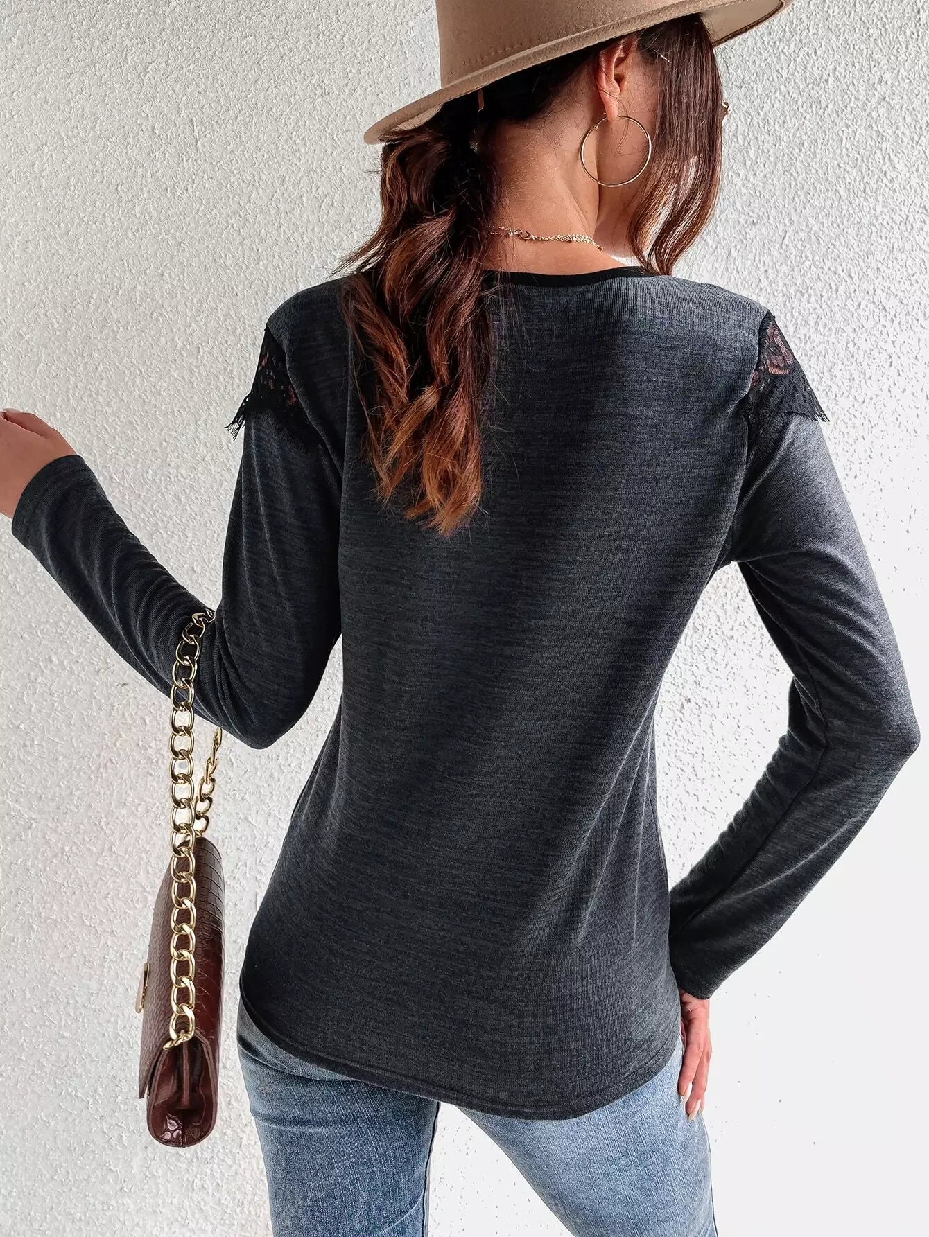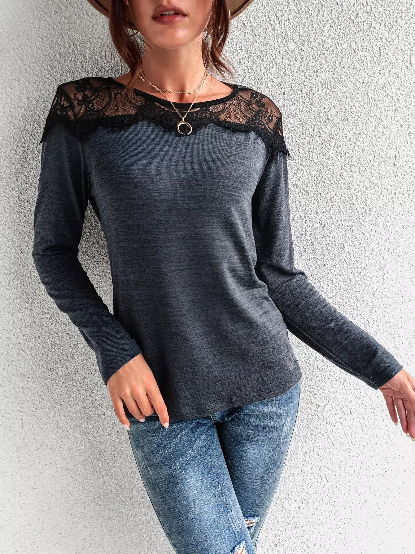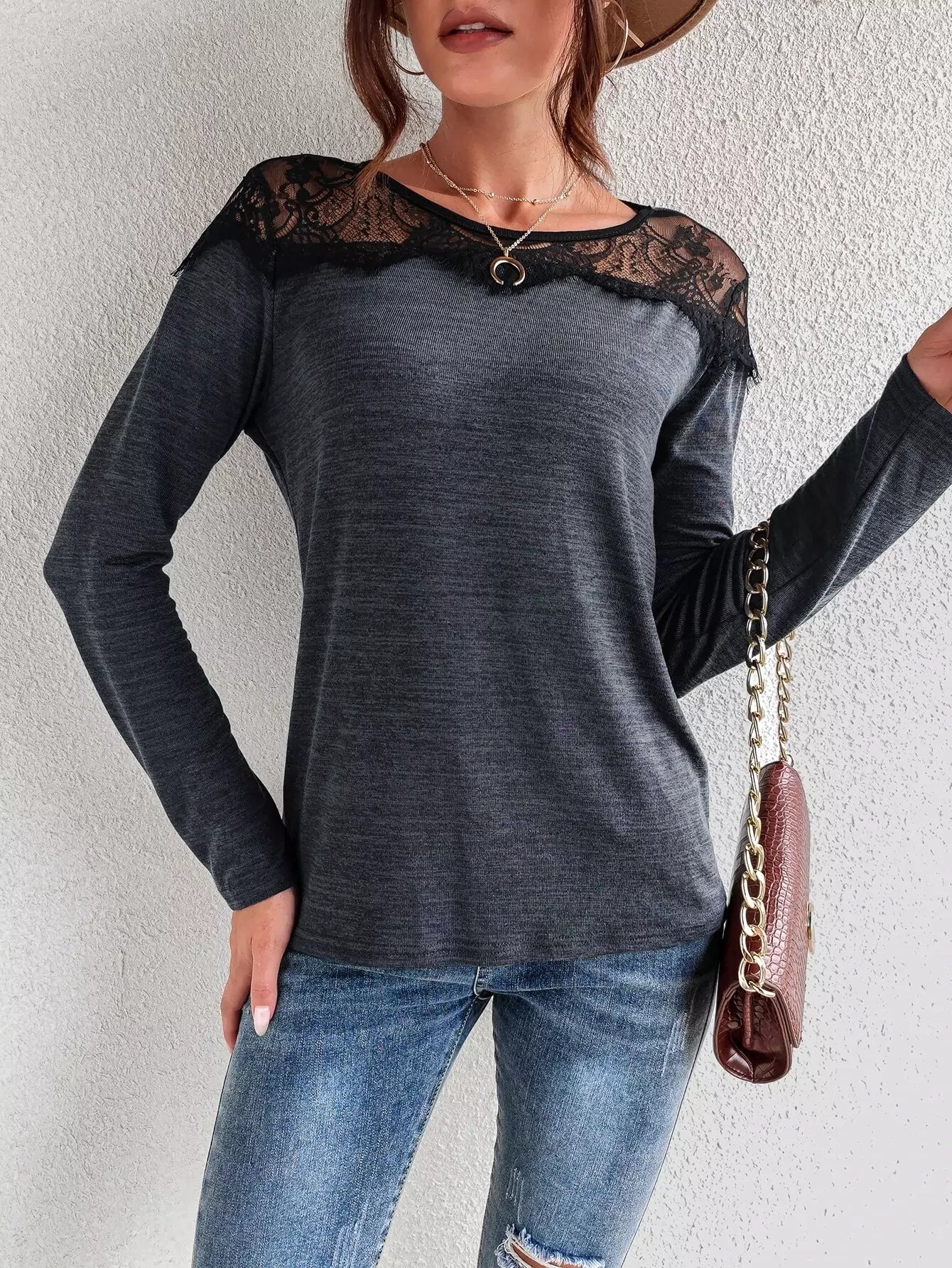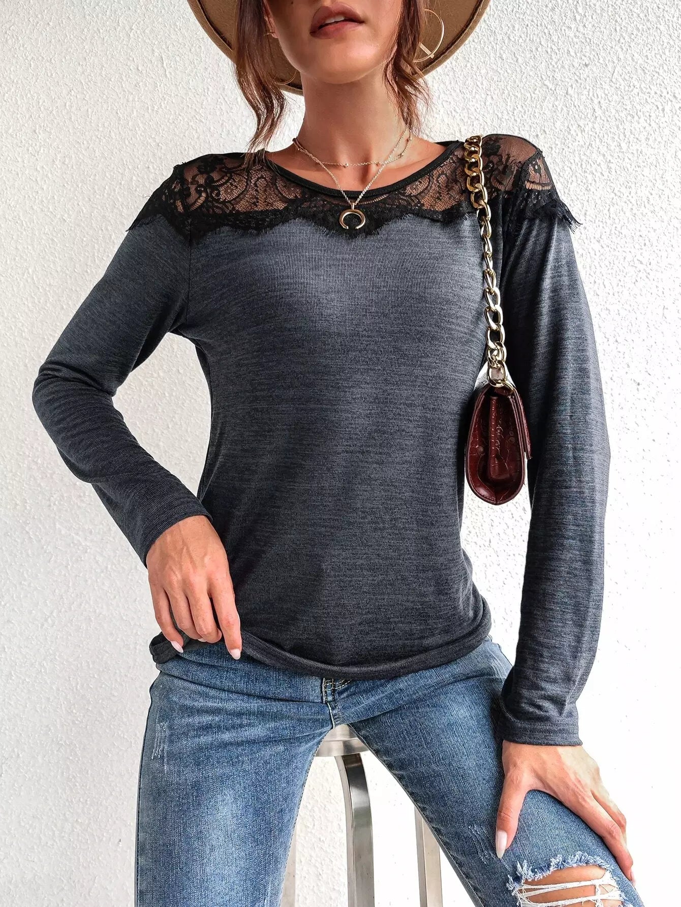 تي شيرت من الدانتيل على شكل رموش بلون مغاير