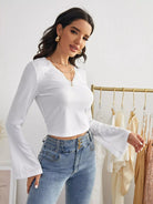 تي شيرت بأكمام دانتيل بلون مغاير