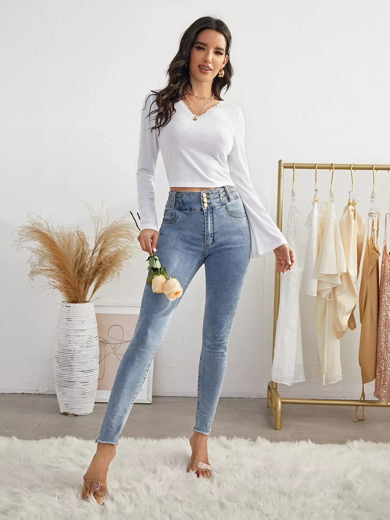 | خط العنق | رقبة على شكل حرف V |