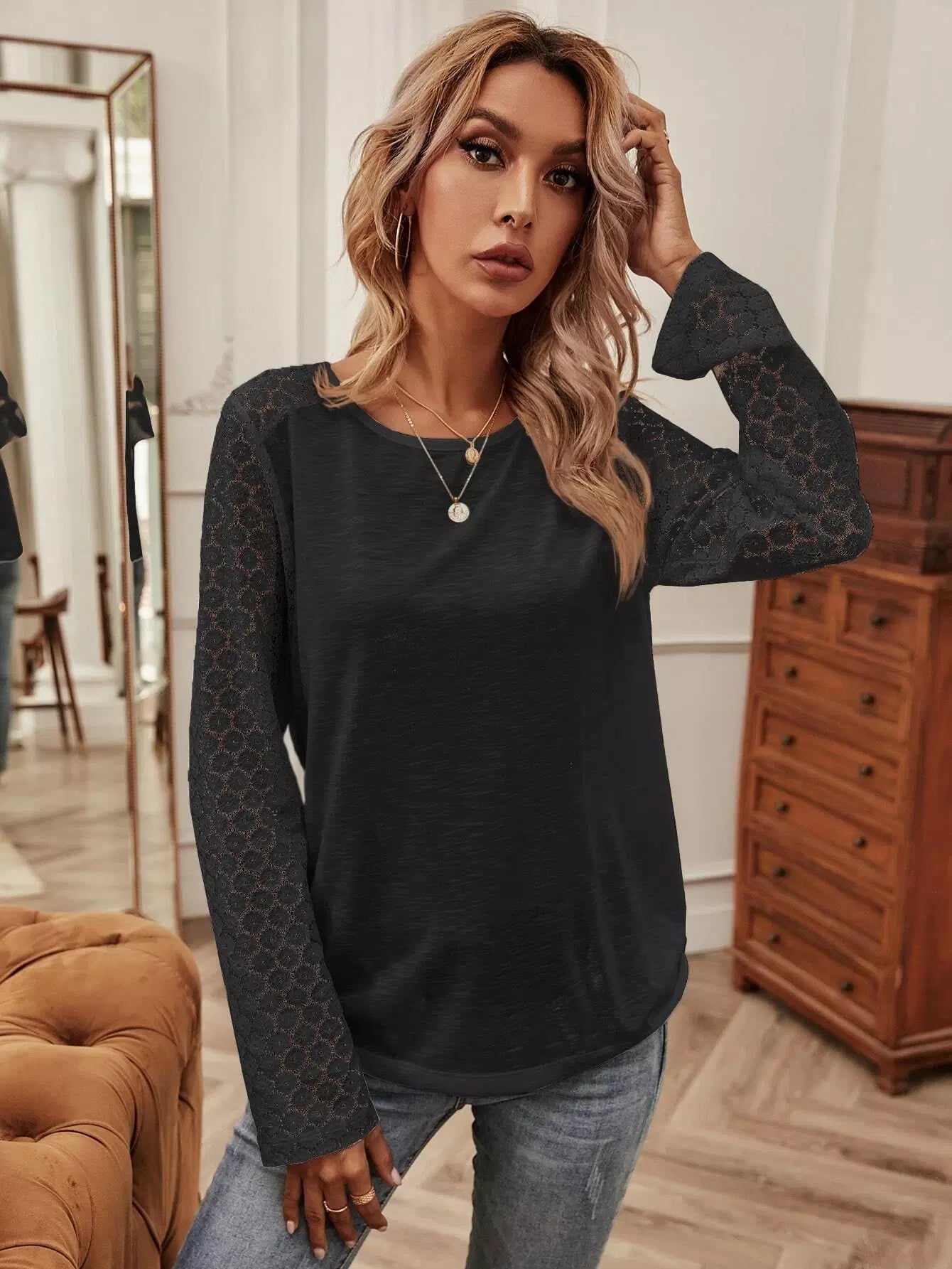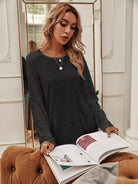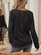 تي شيرت بأزرار من الدانتيل بلون مغاير من الخلف