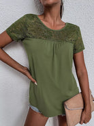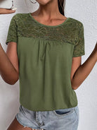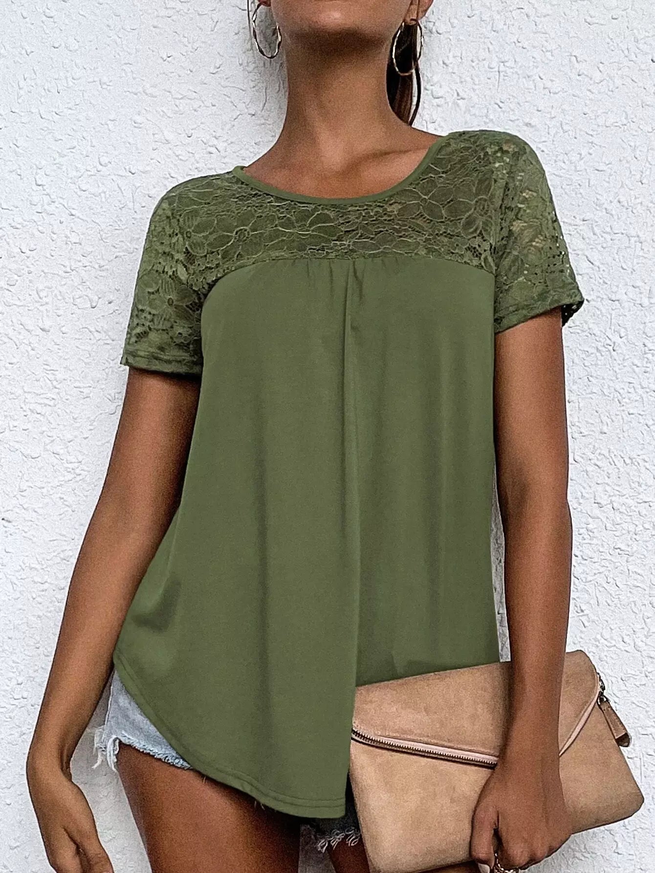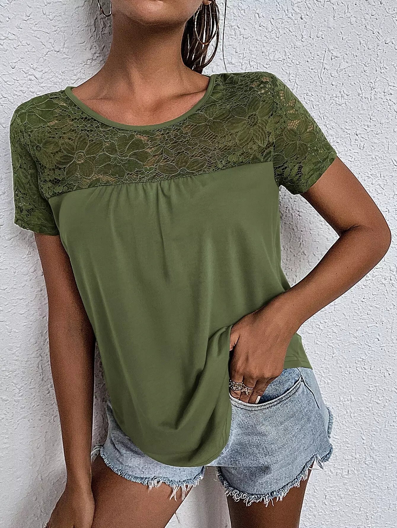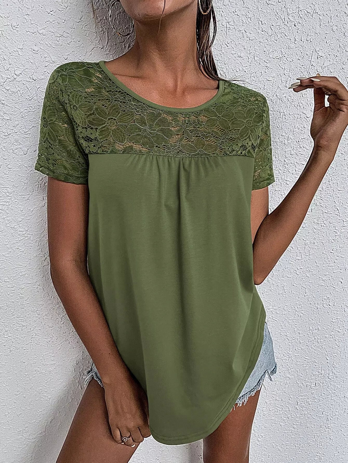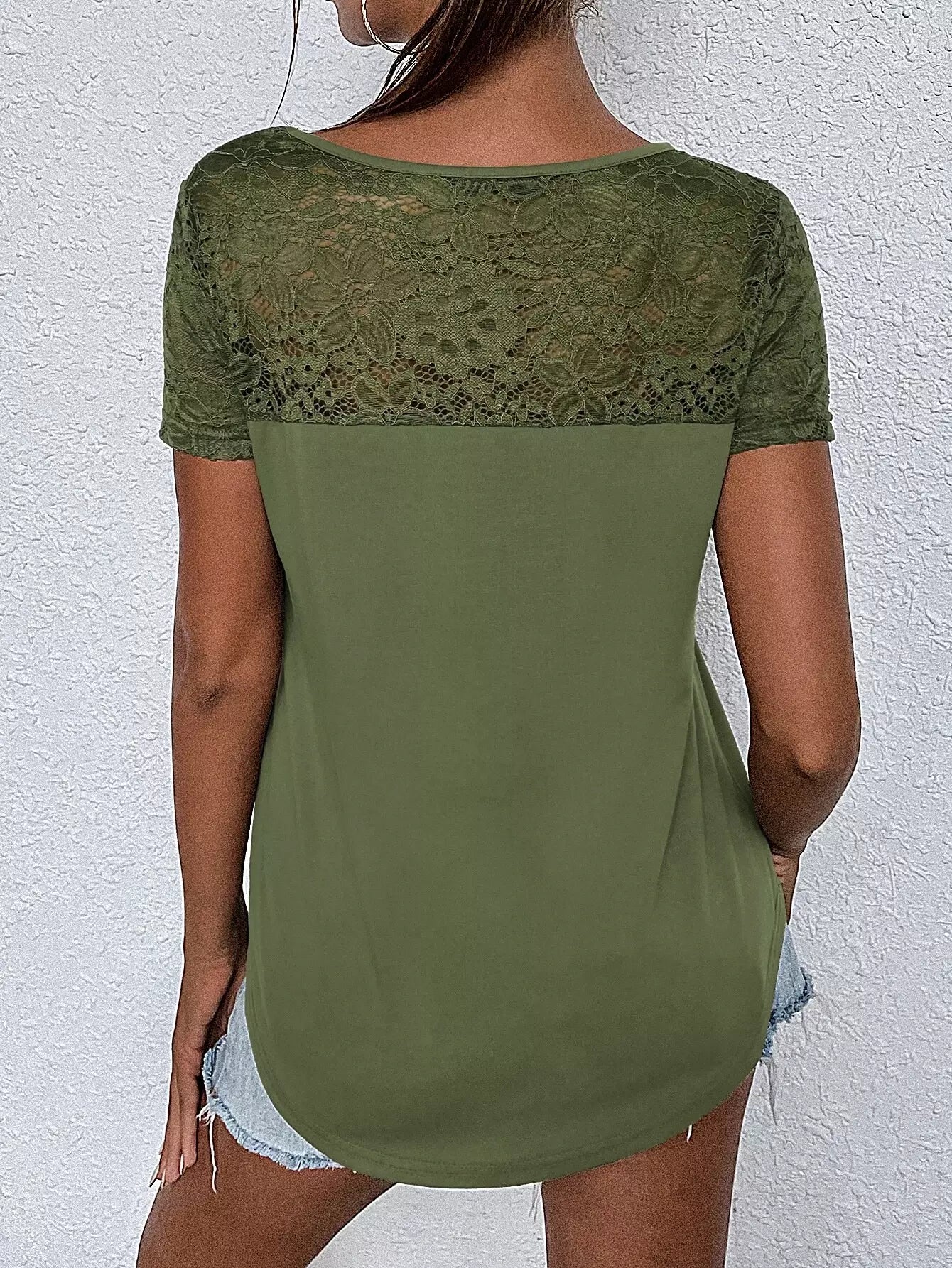 تي شيرت بحافة منحنية من الدانتيل بلون مغاير