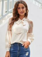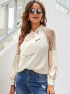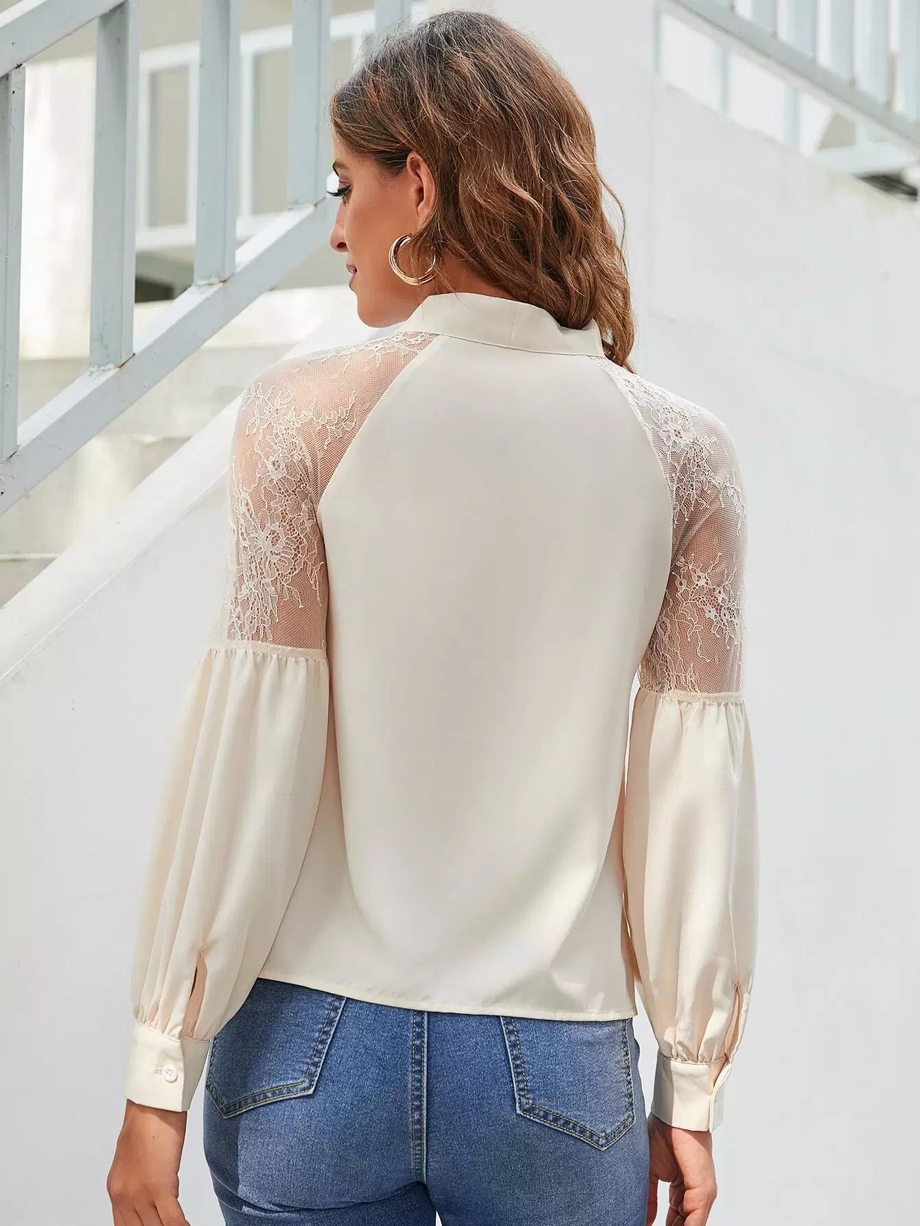 بلوزة بأكمام من الدانتيل بلون مغاير بأربطة عنق من الدانتيل