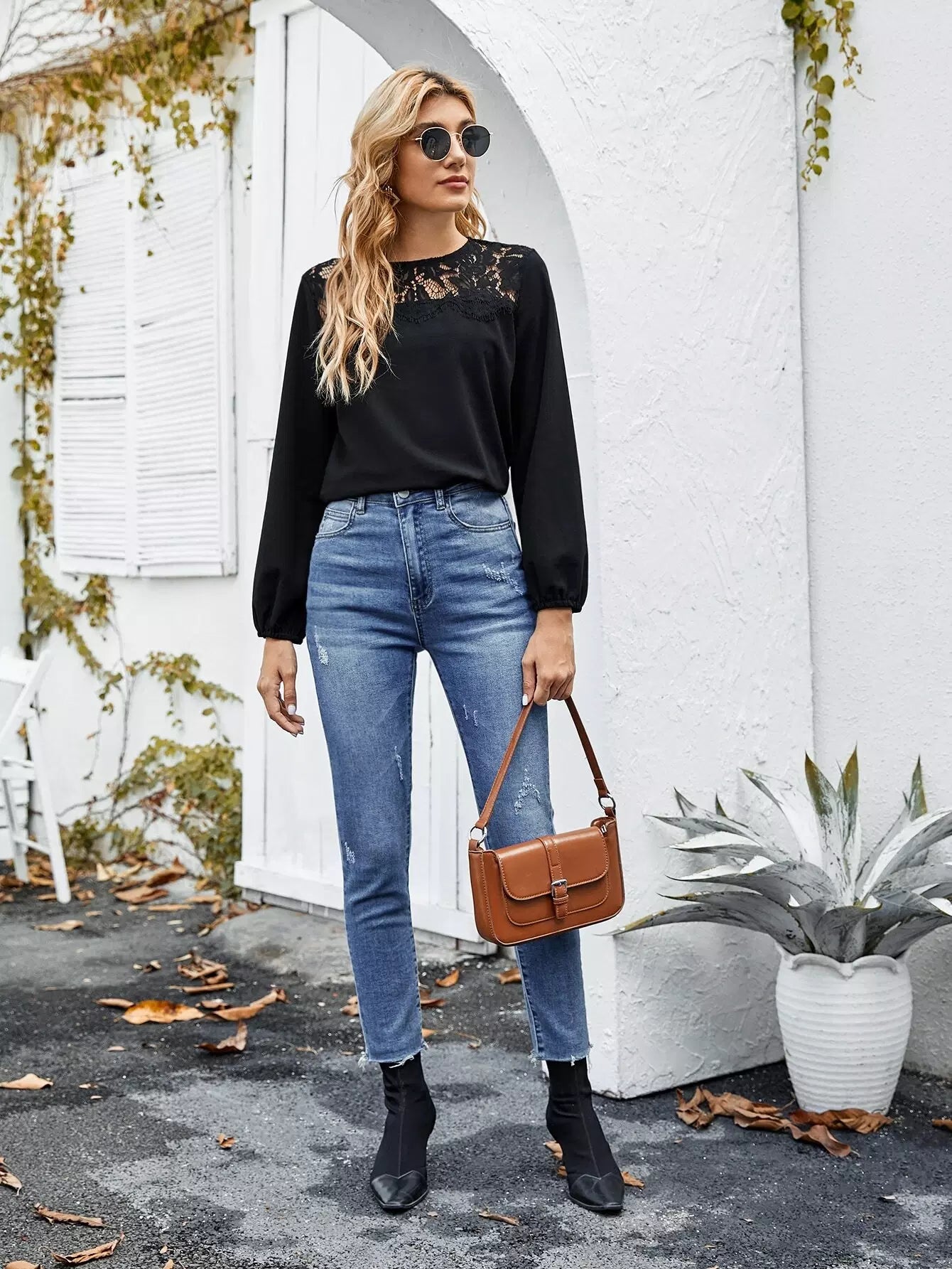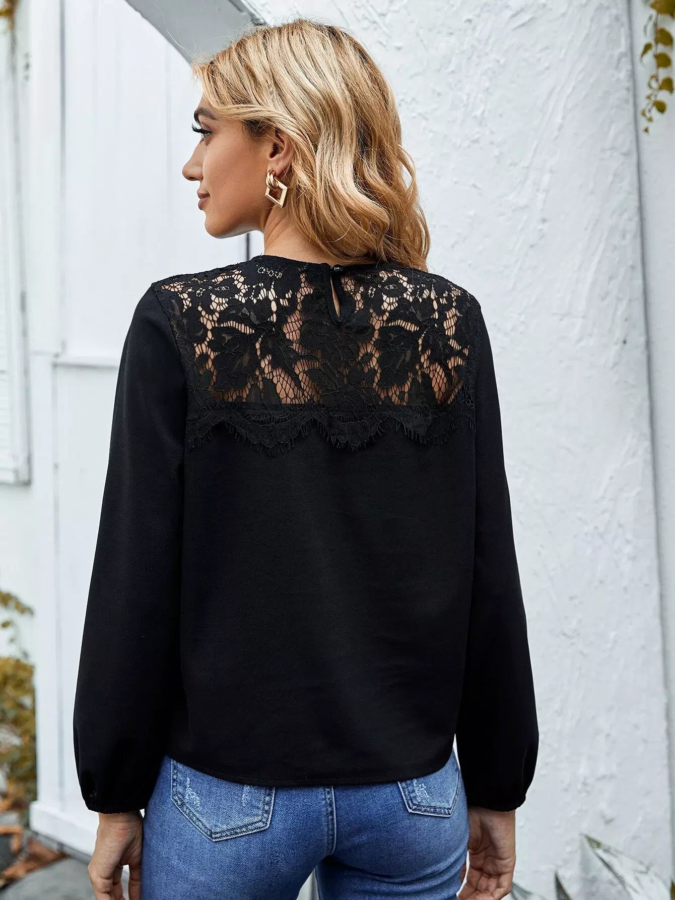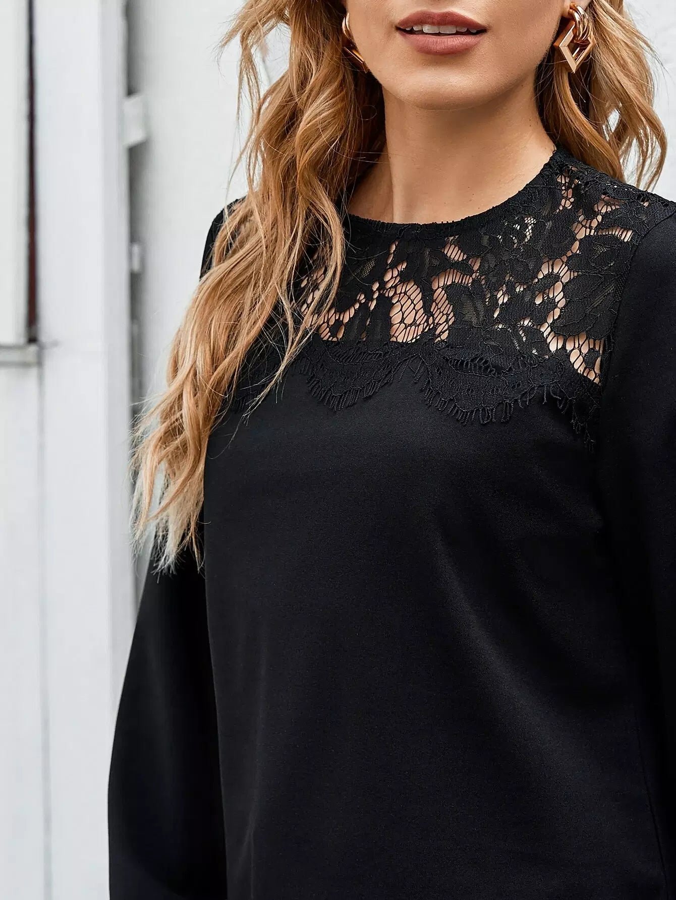 بلوزة دانتيل بنقوش دانتيل بلون مغاير