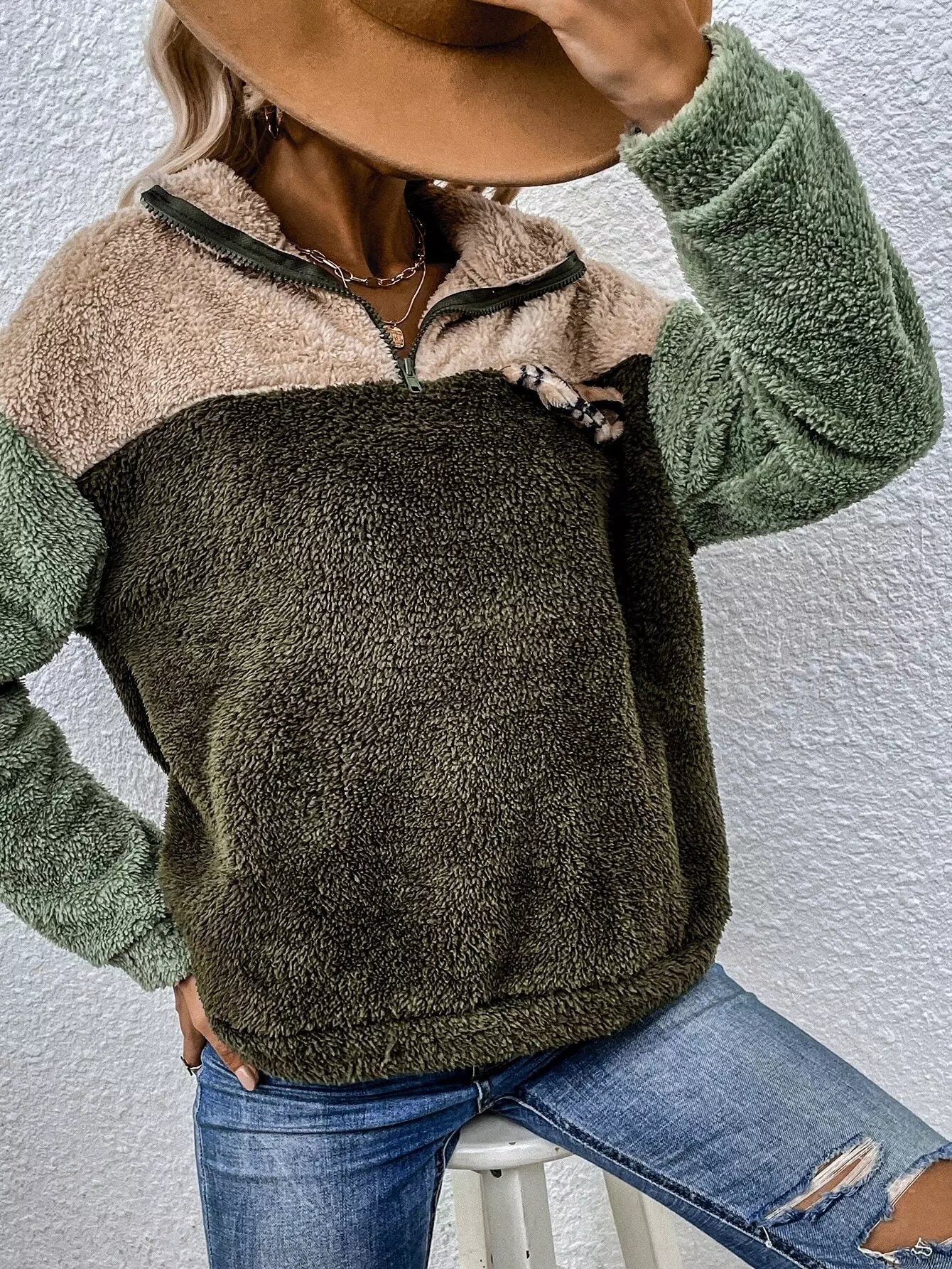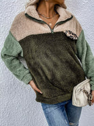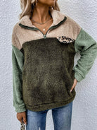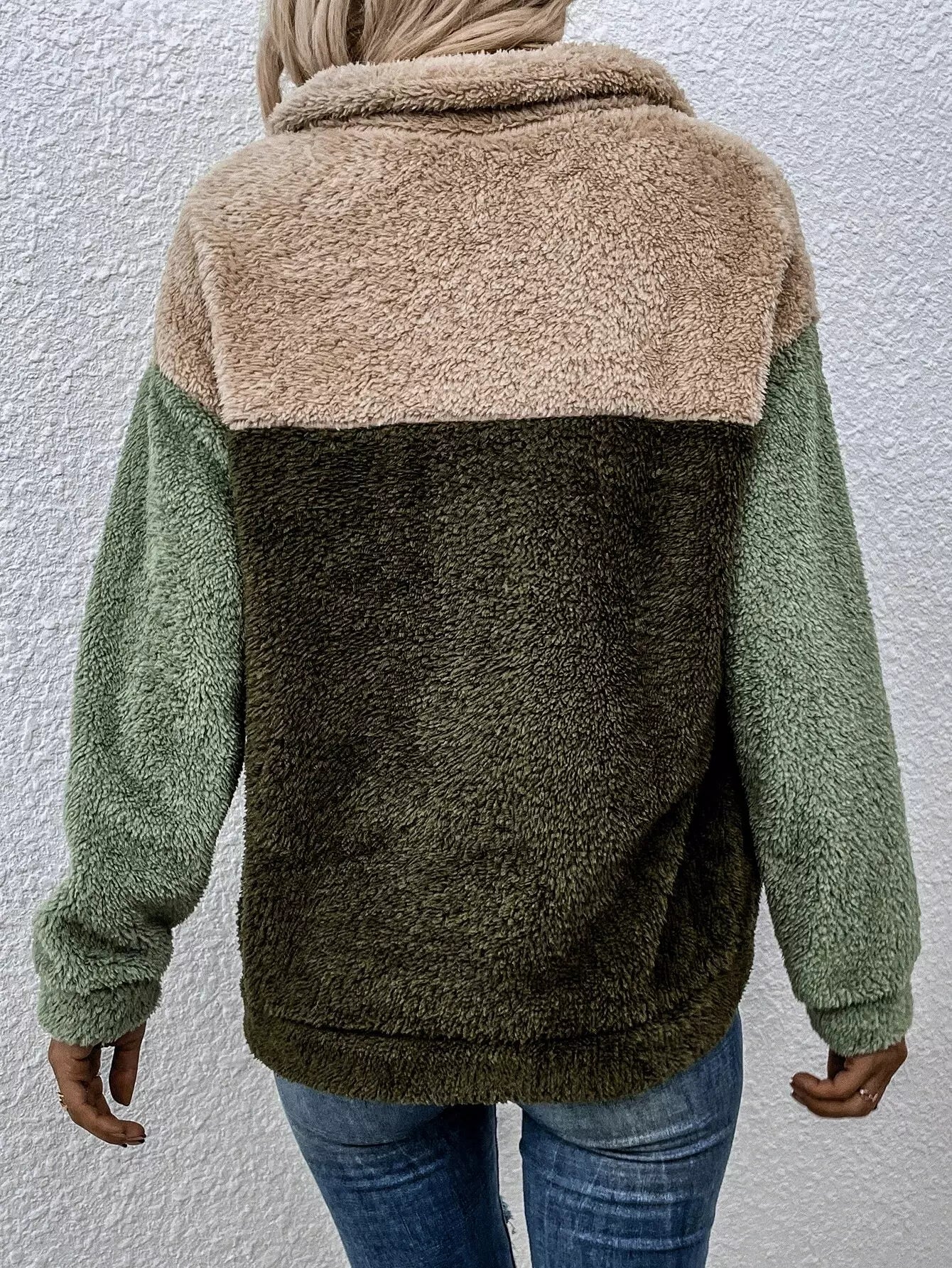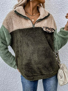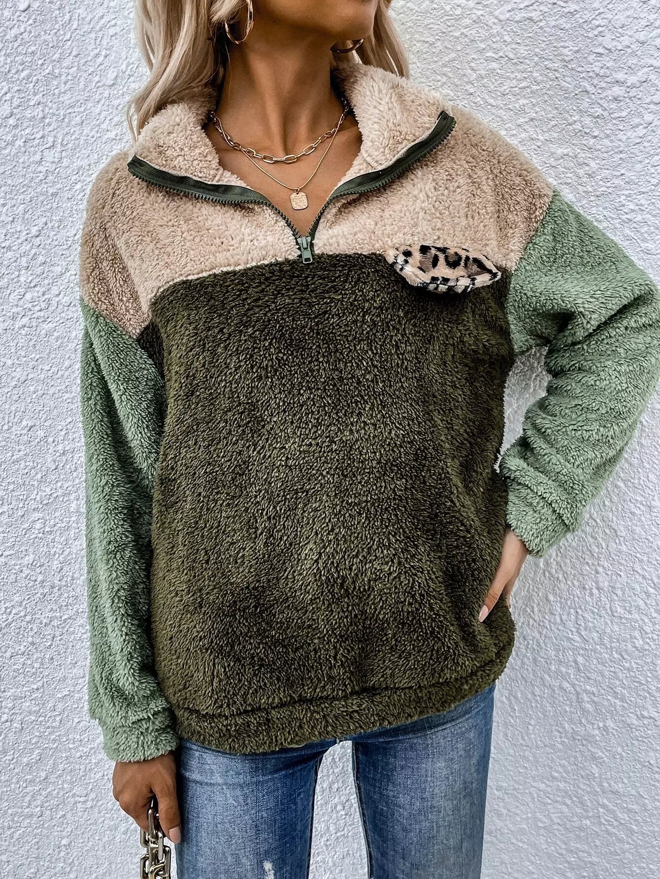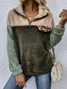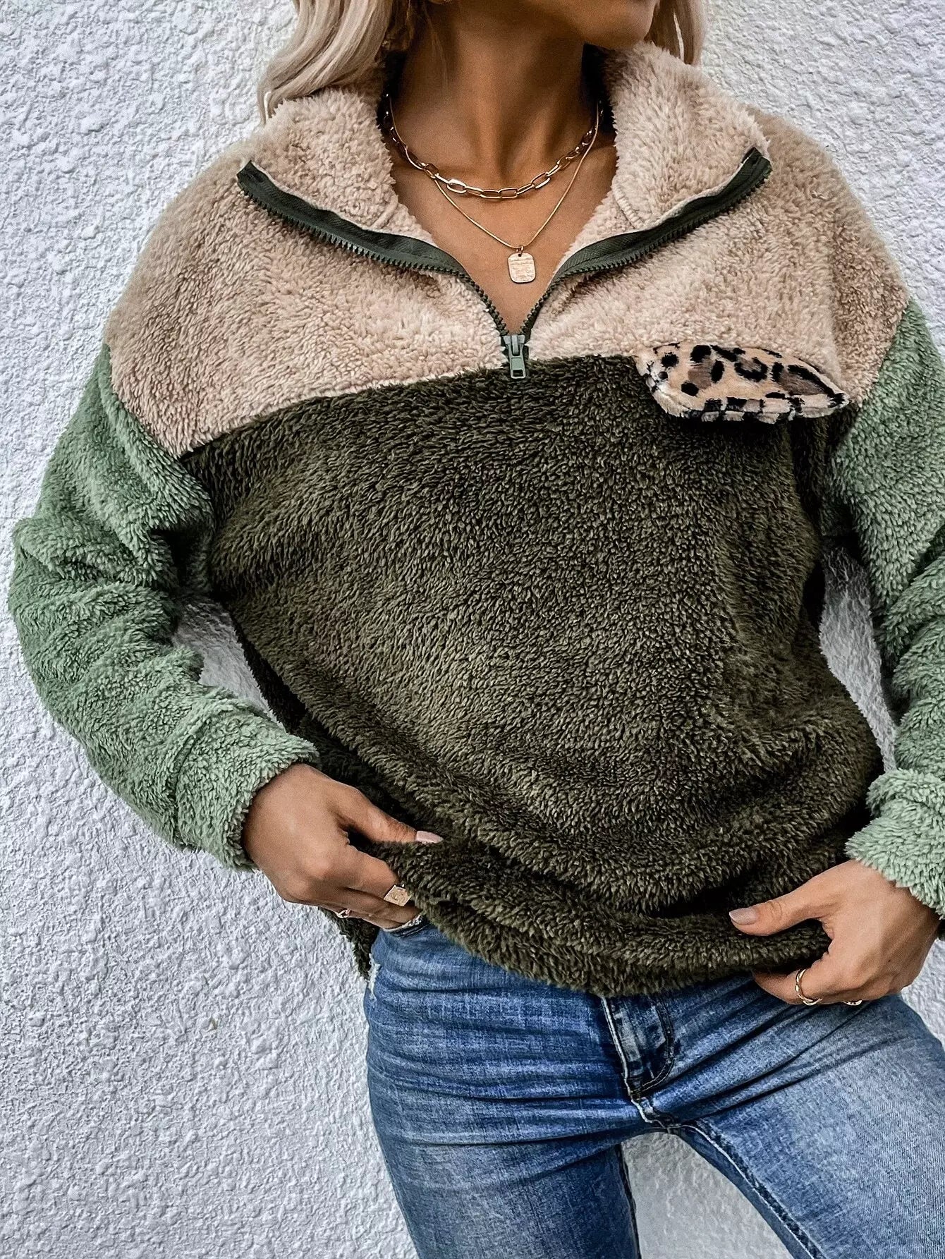 النساء - بلوفر تيدي بتفاصيل جلد الفهد المتباين وسحاب ربع تيدي