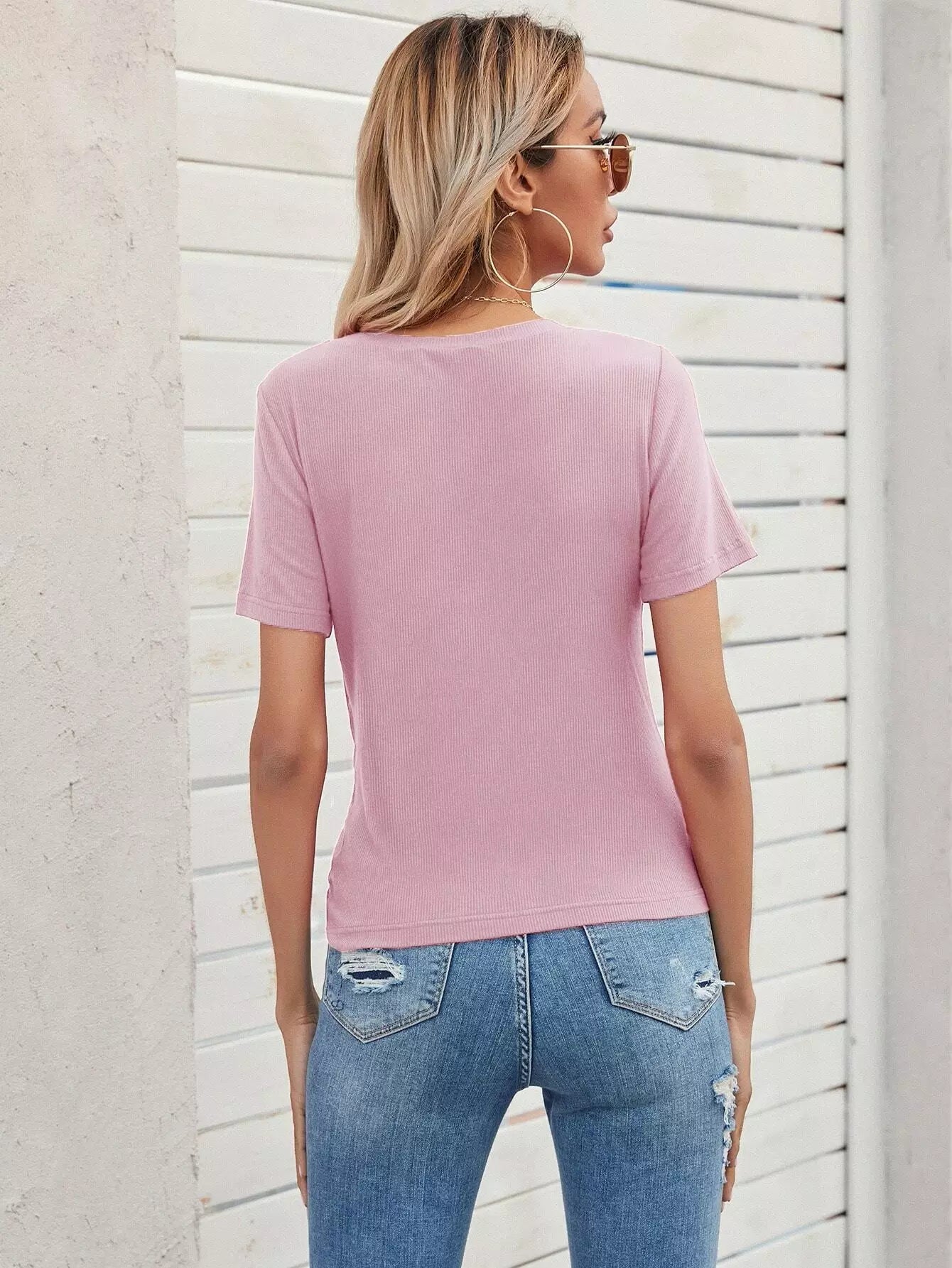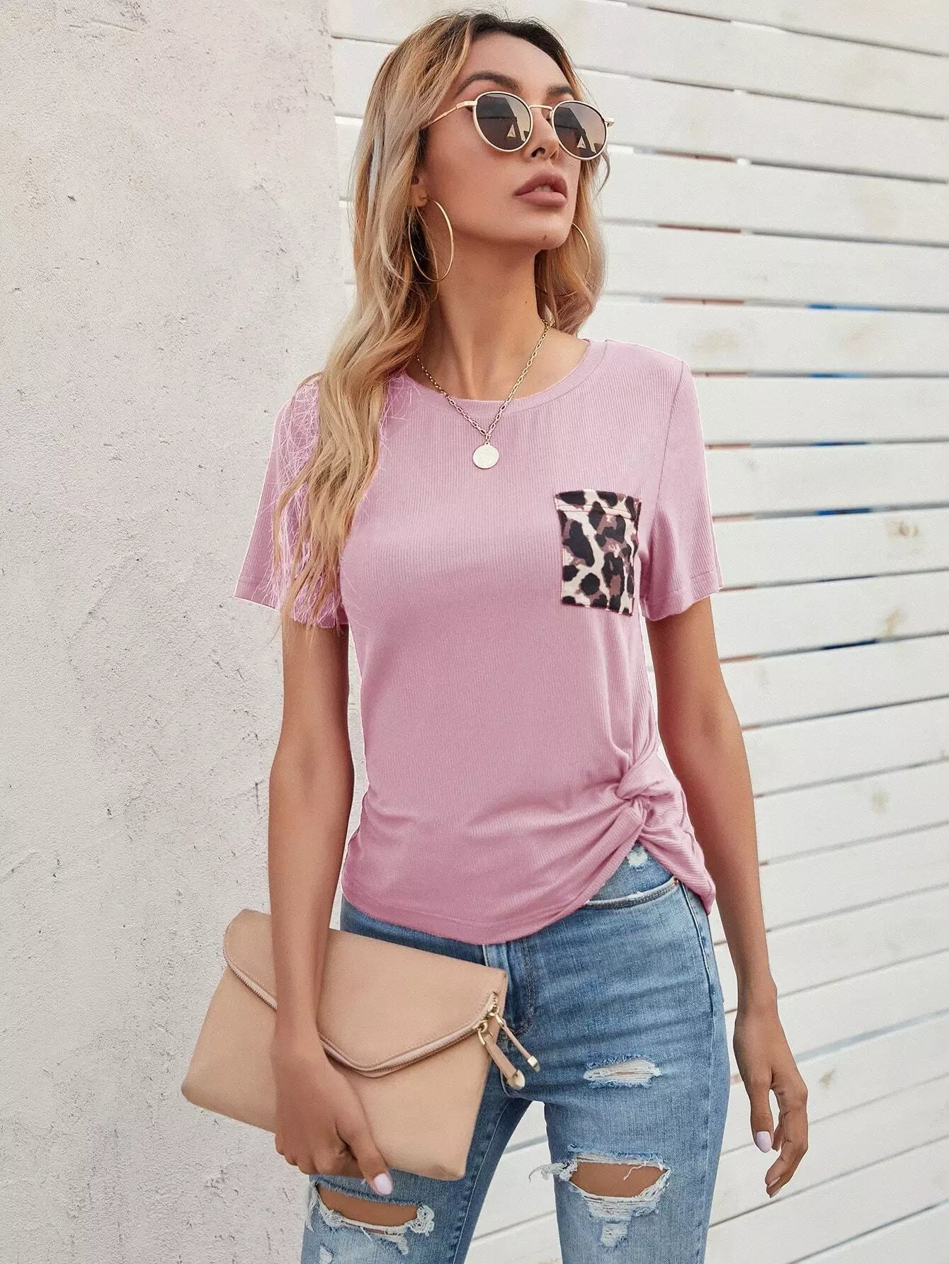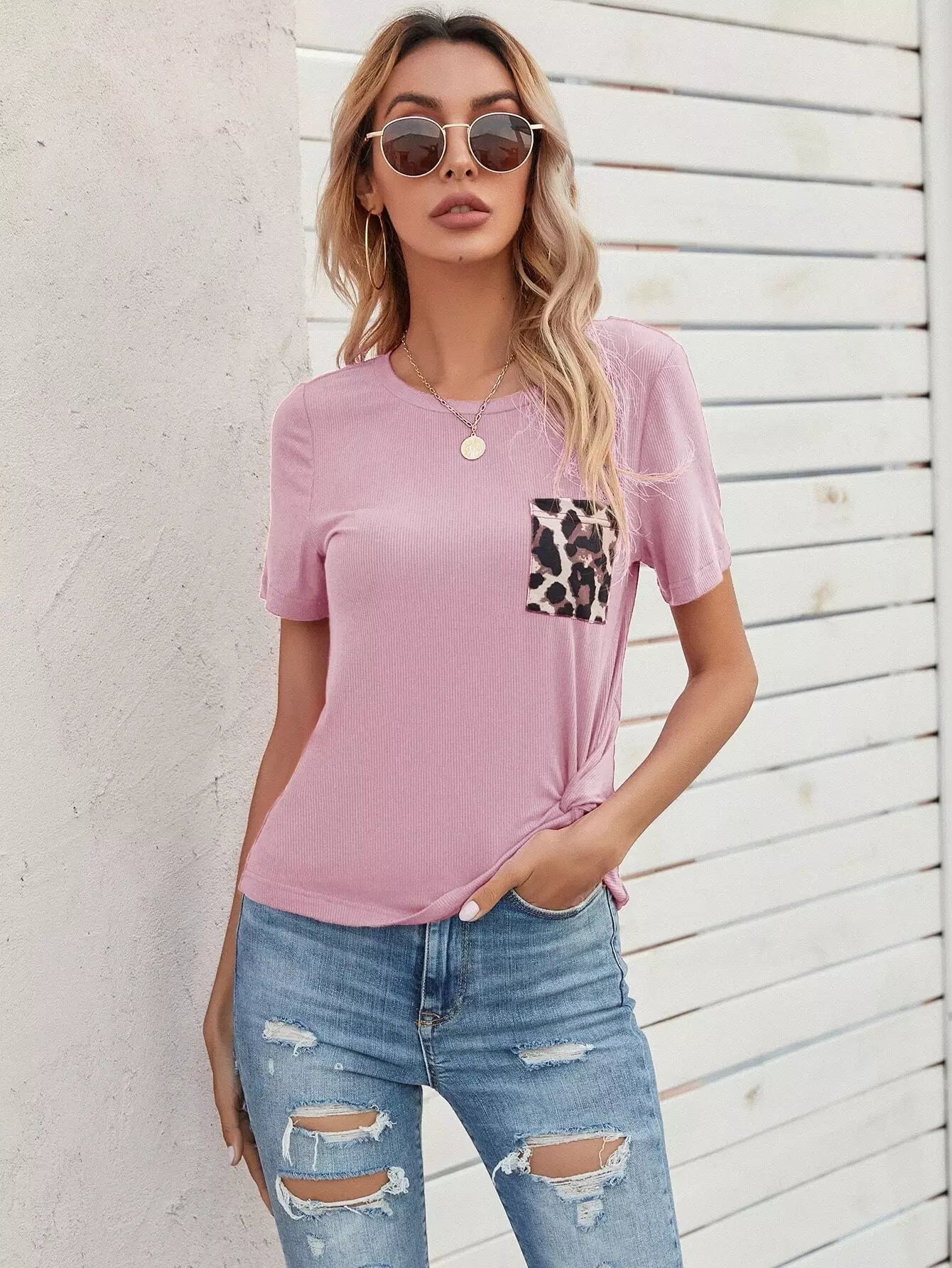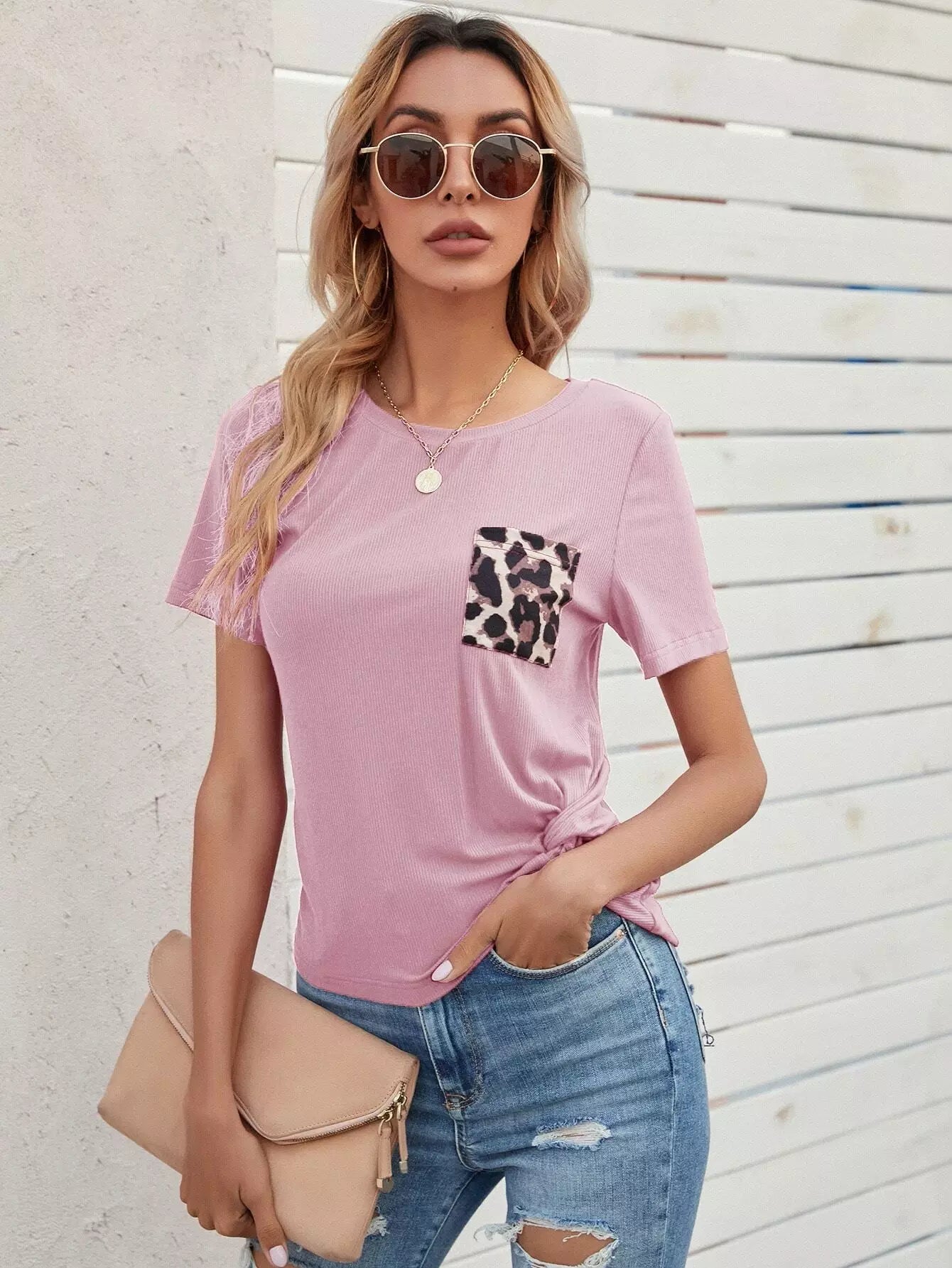 تي شيرت بحاشية ملتوية بجيب بلون مغاير