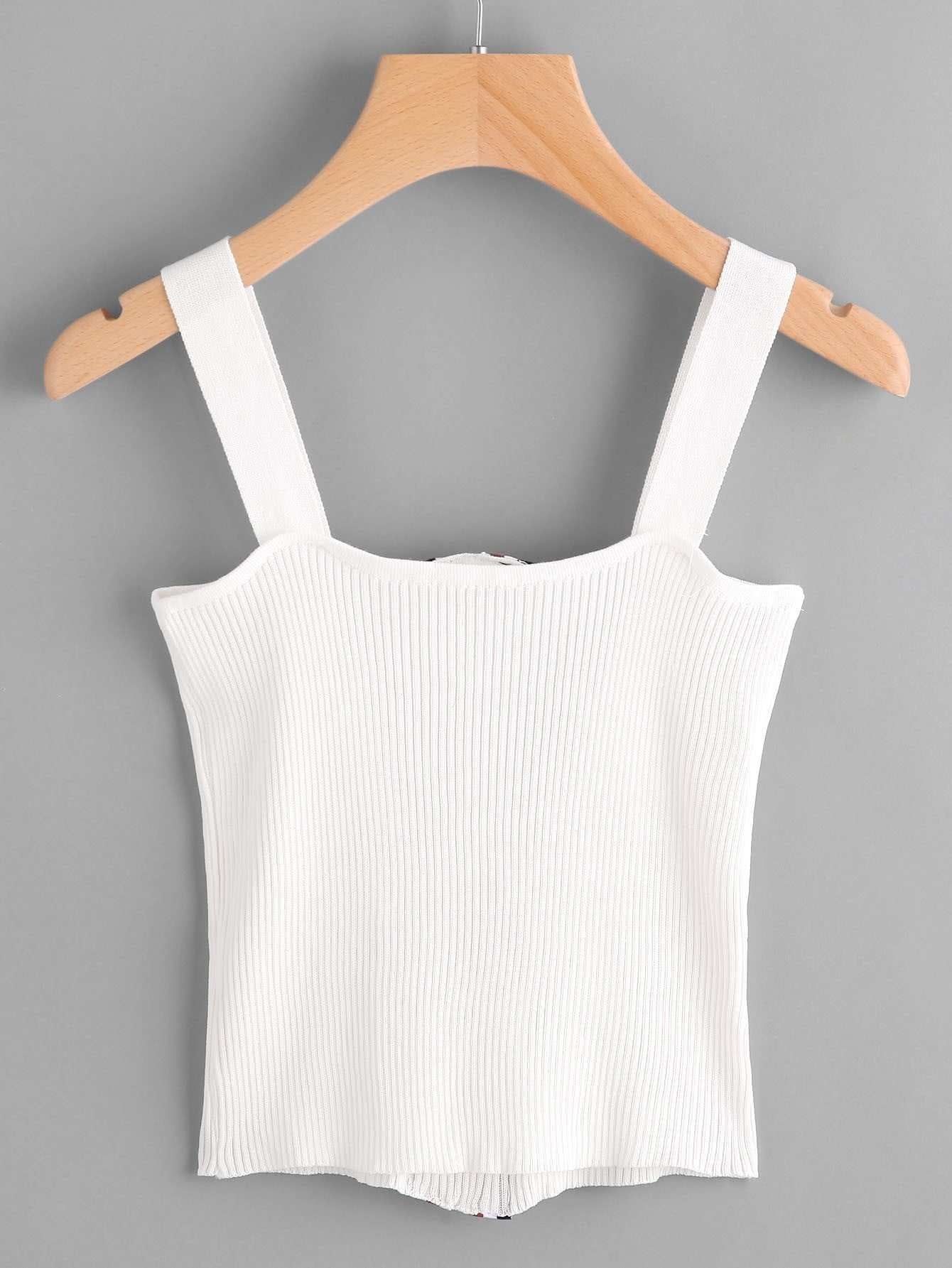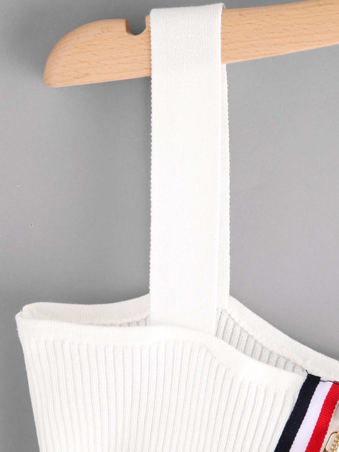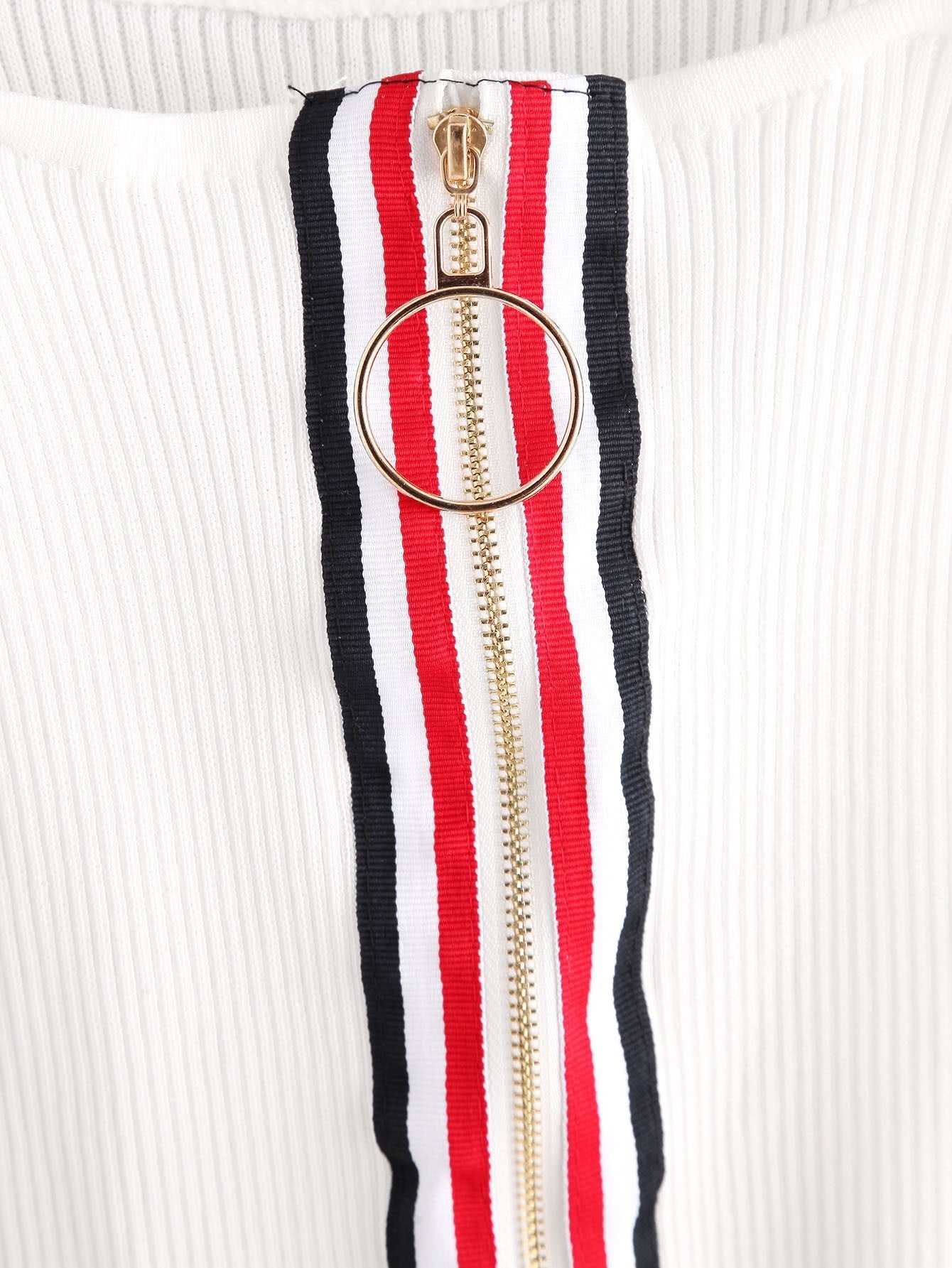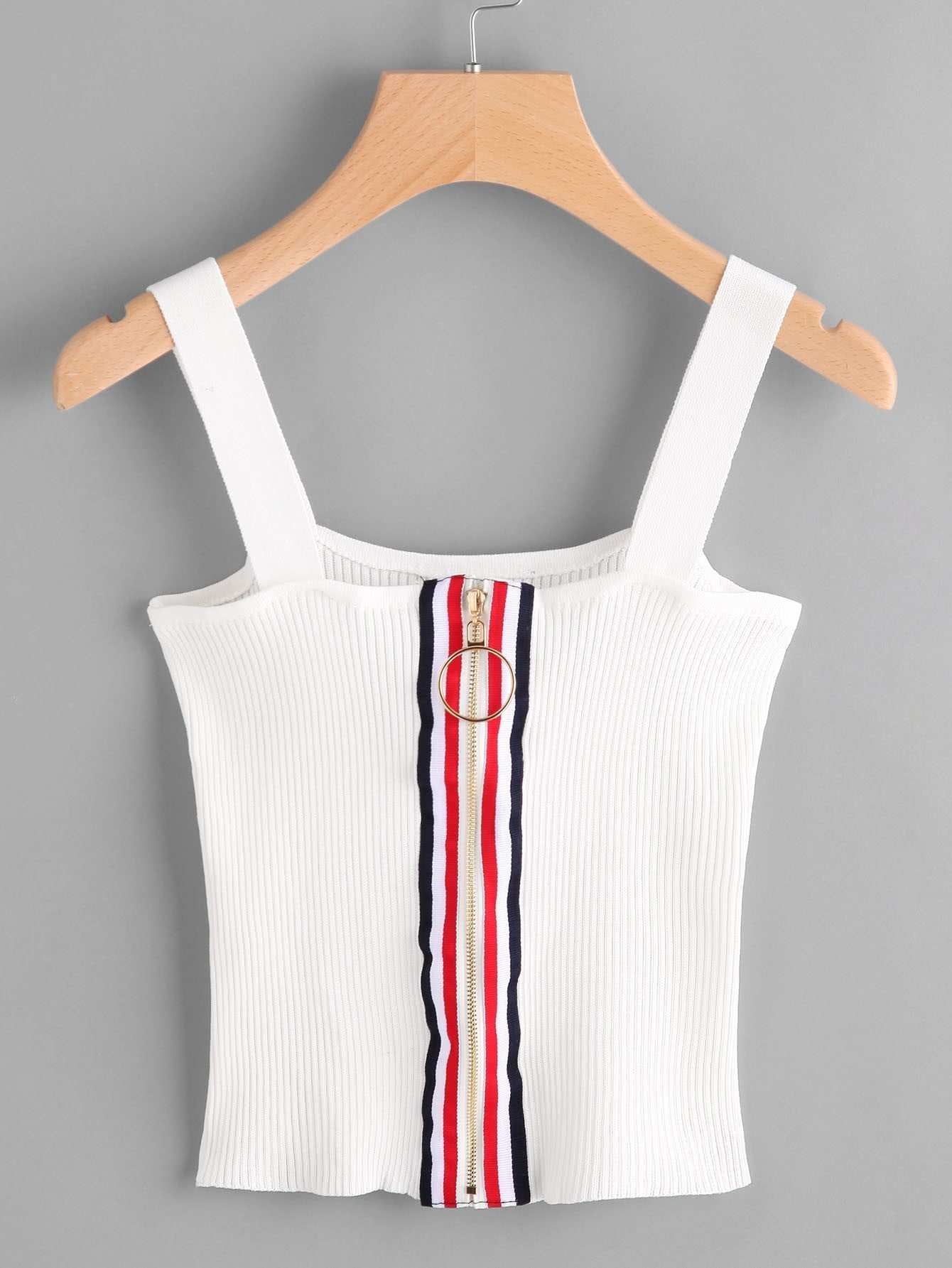 للنساء - بلوزة كامي مضلعة بحلقة متباينة وسحاب