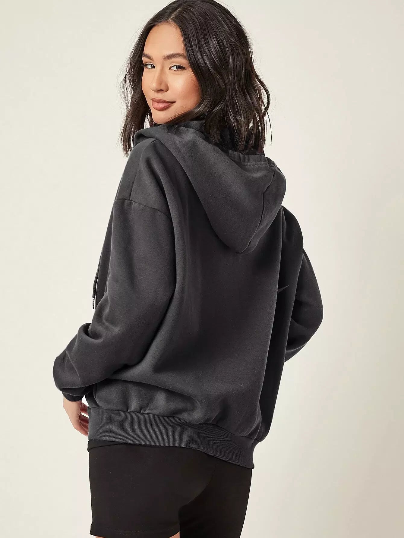 للنساء - سويت شيرت قطني بغطاء للرأس وأكتاف منسدلة وسحاب لأعلى
