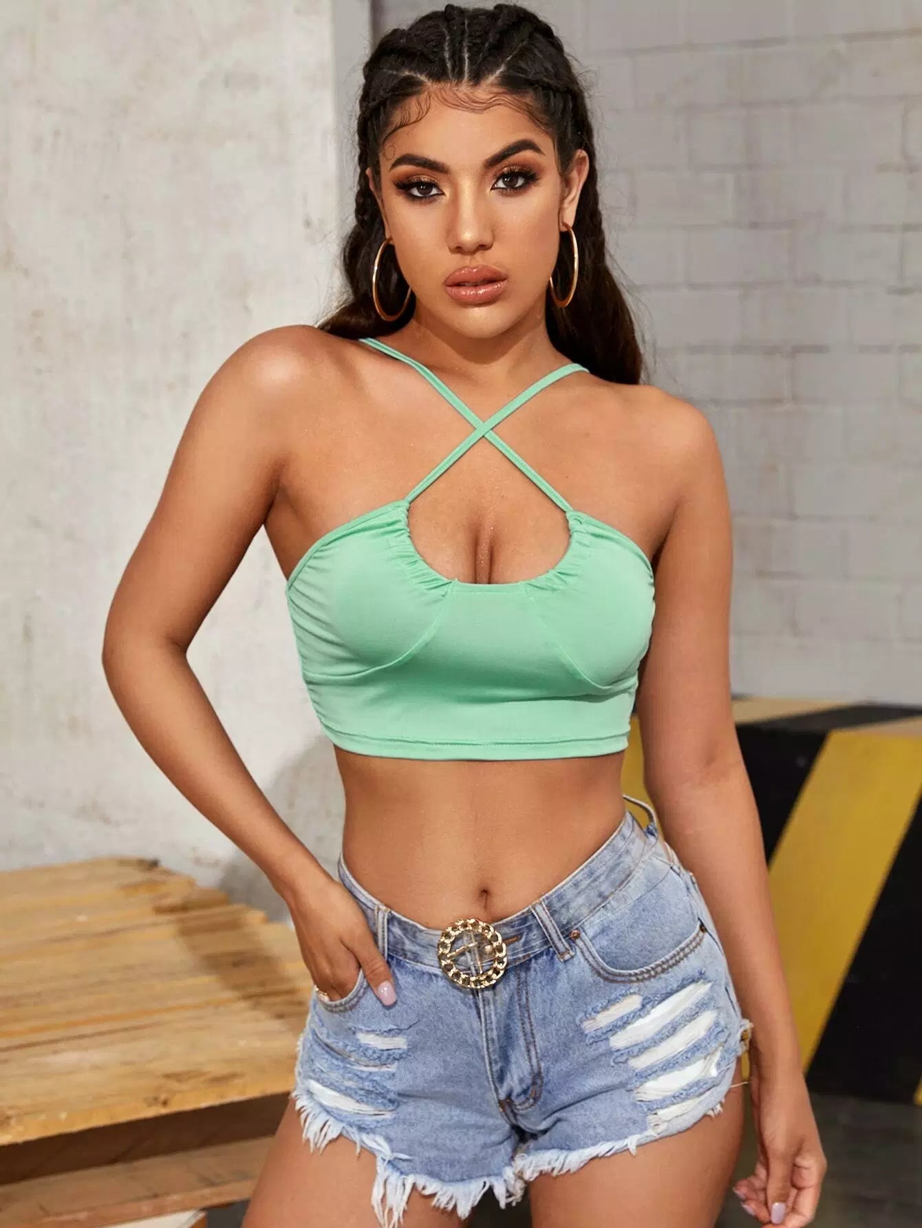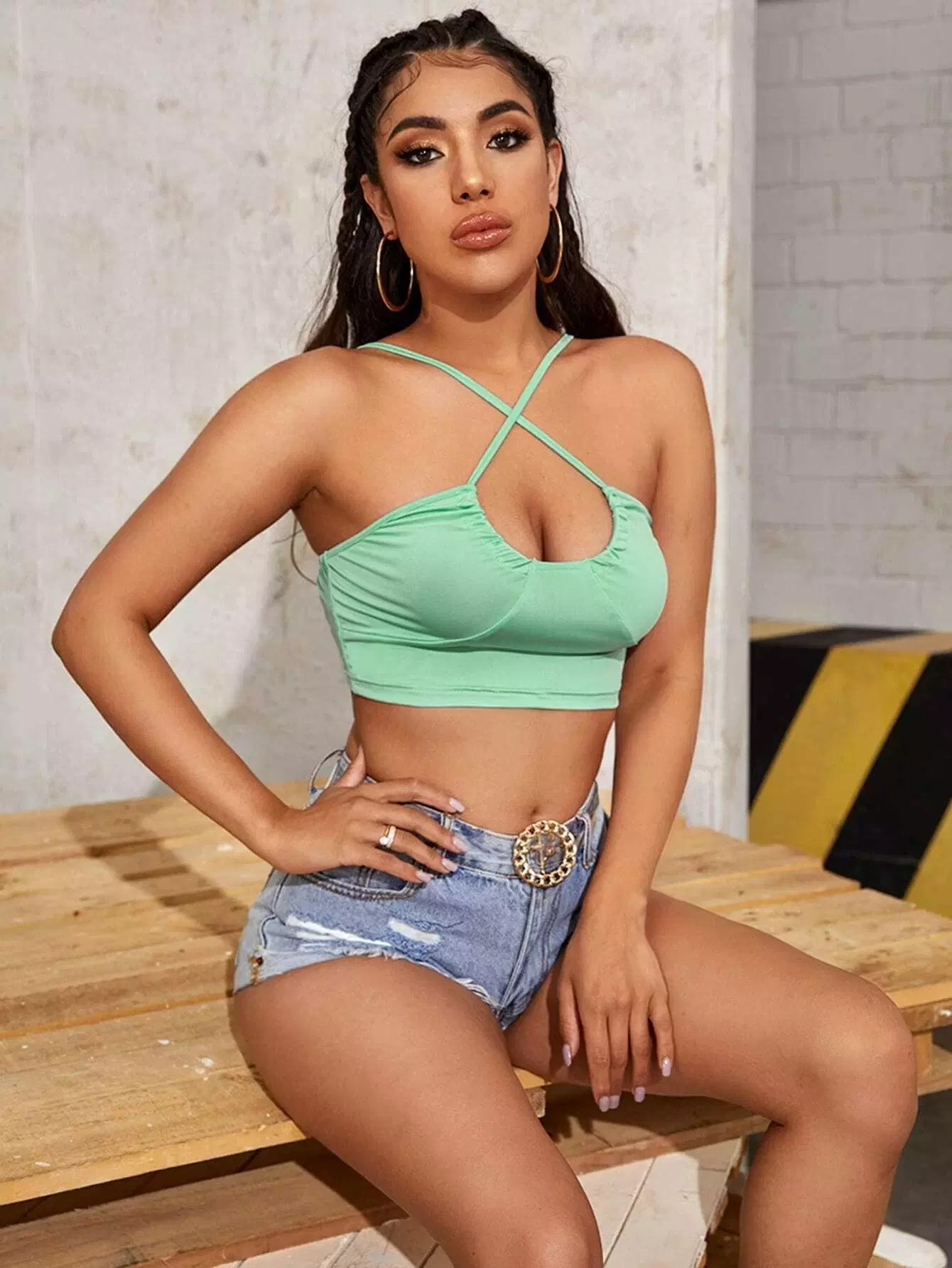 النساء - بلوزة قصيرة بفتحة رقبة متقاطعة