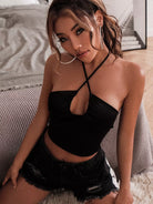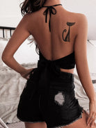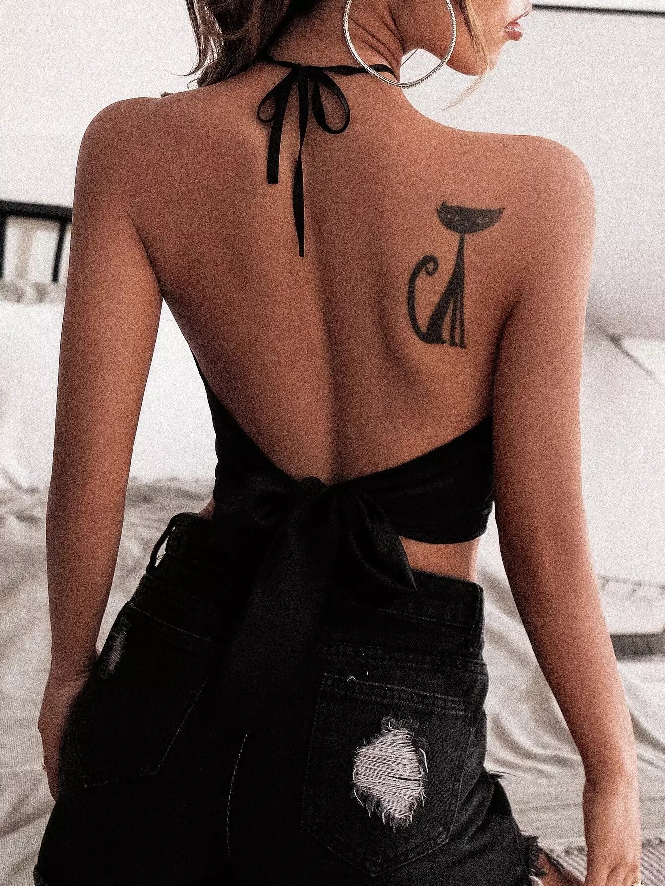 بلوزة قصيرة مكشوفة الظهر ومربوطة بشكل متقاطع
