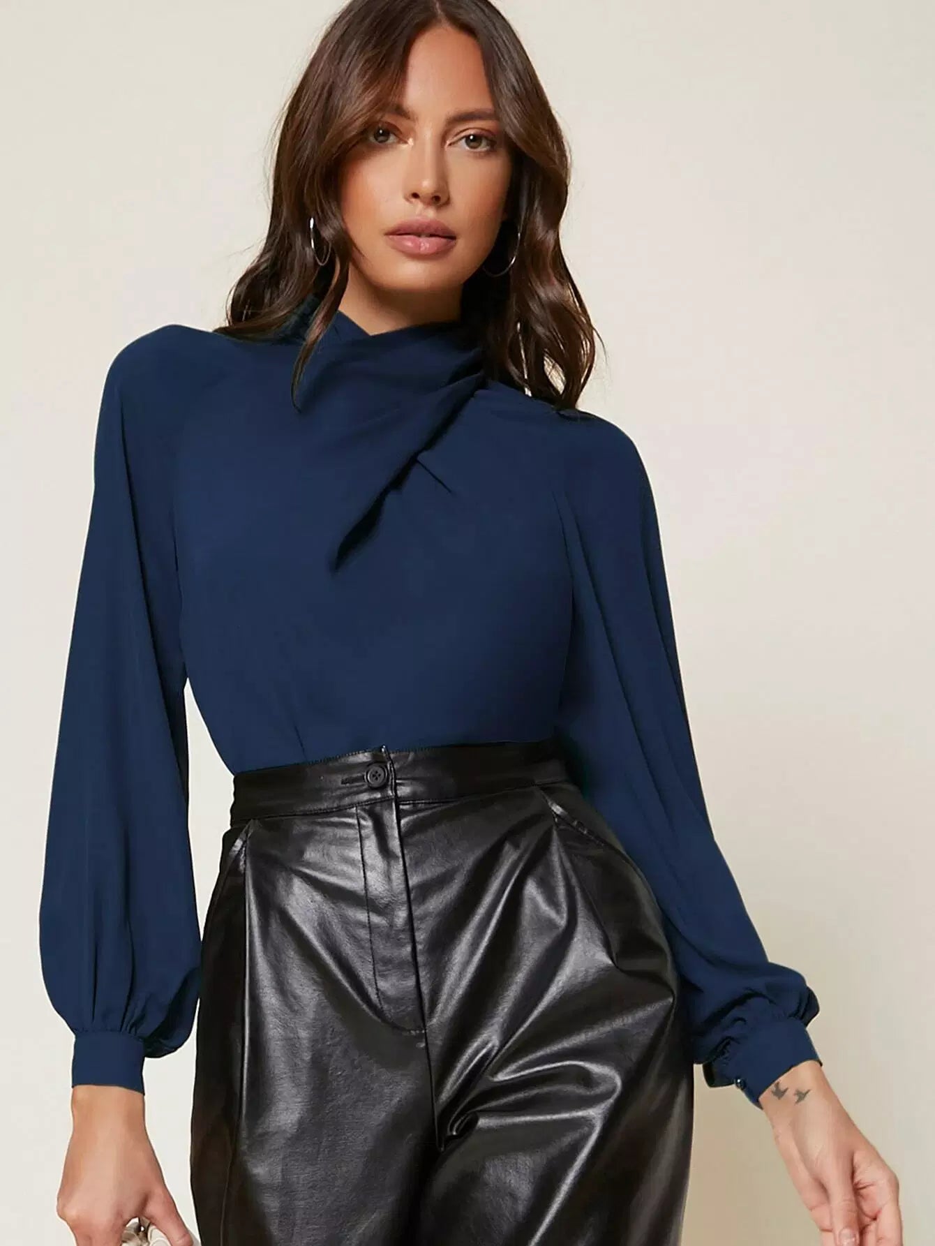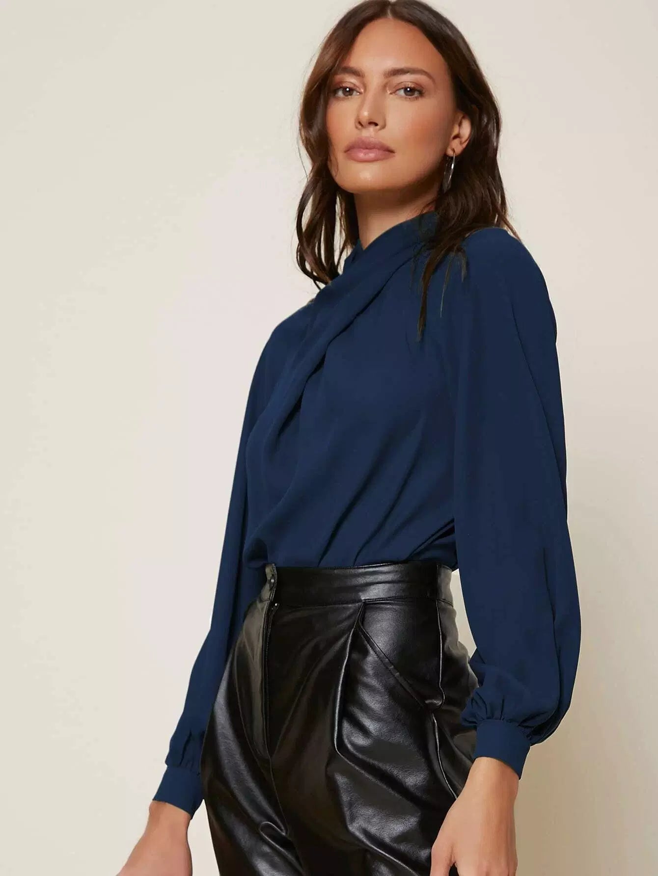 بلوزة بأكمام من الأمام ملفوفة على شكل صليب