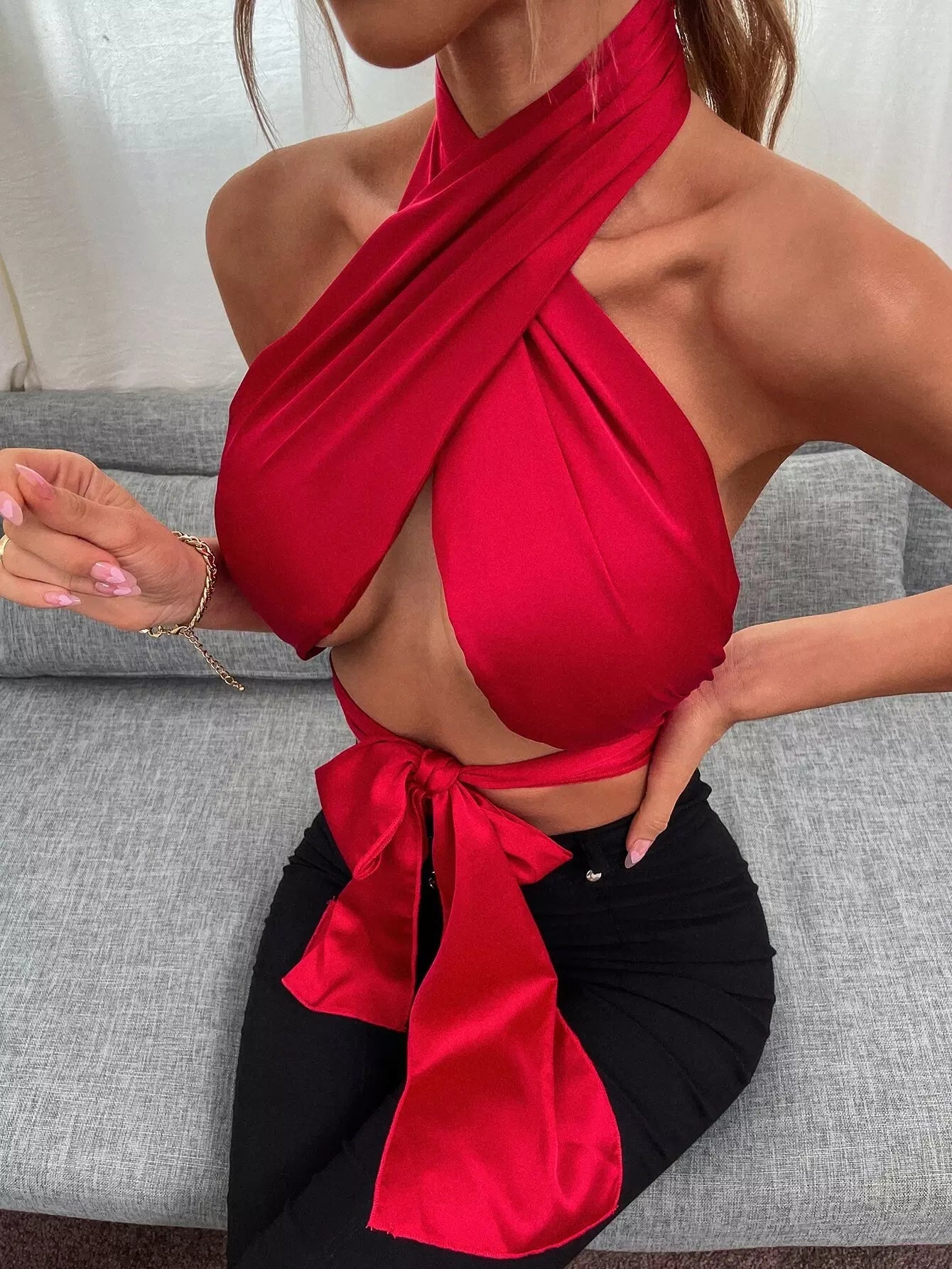 توب قصير برباط أمامي بربطة عنق متقاطعة من الأمام