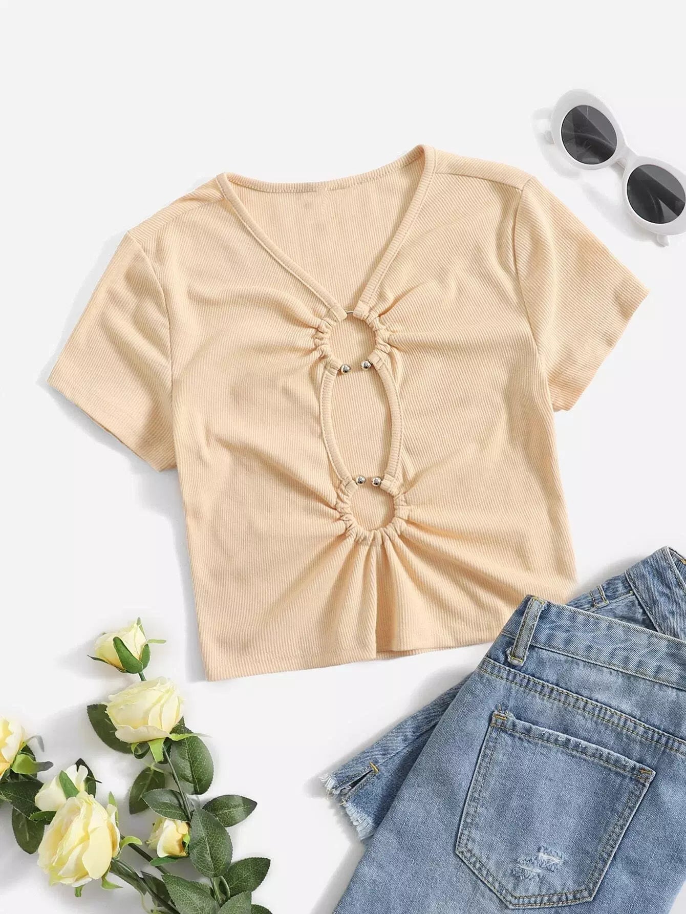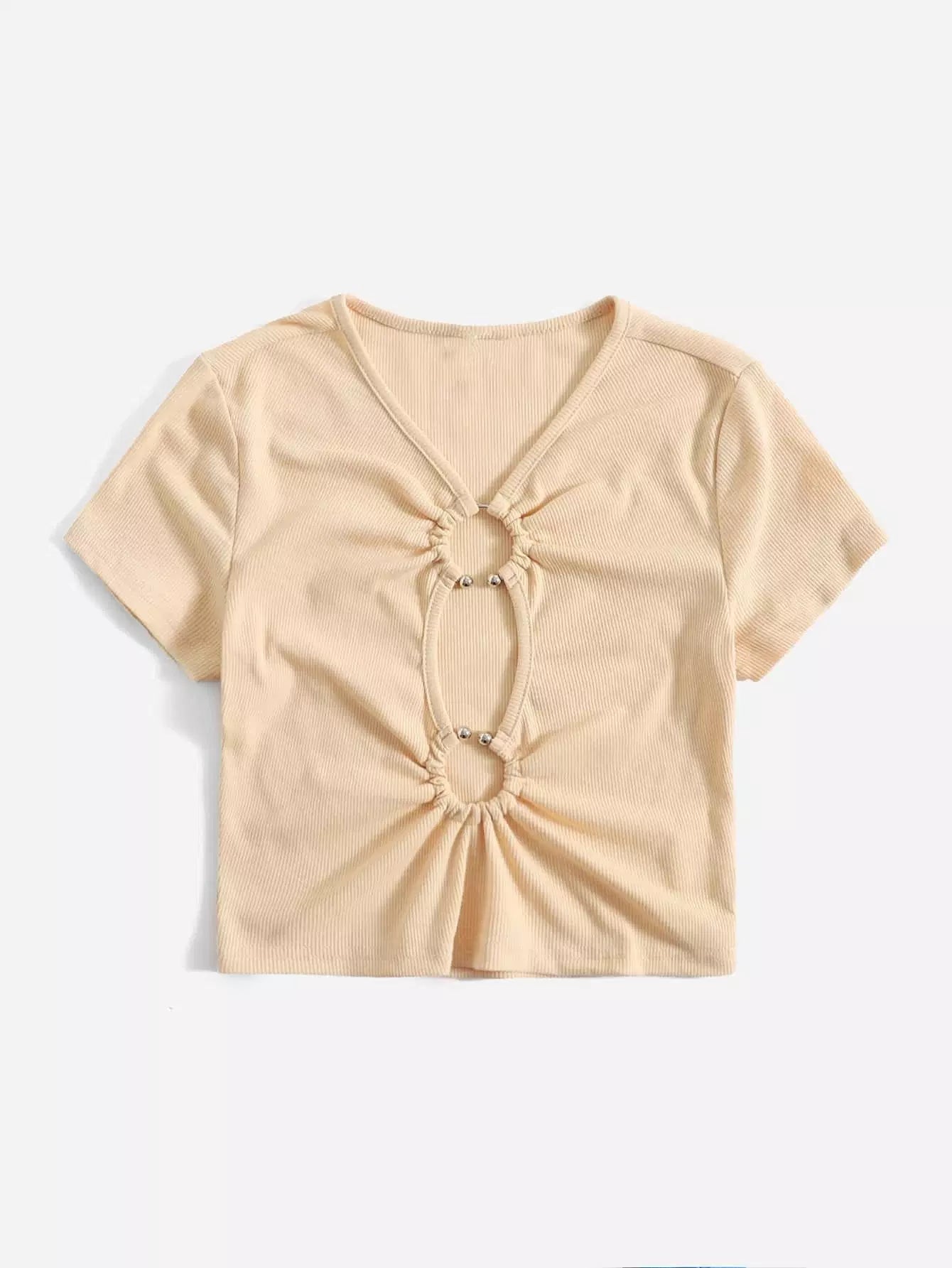 تي شيرت بقصّة منقوشة بتفاصيل خاتم مقطوعة