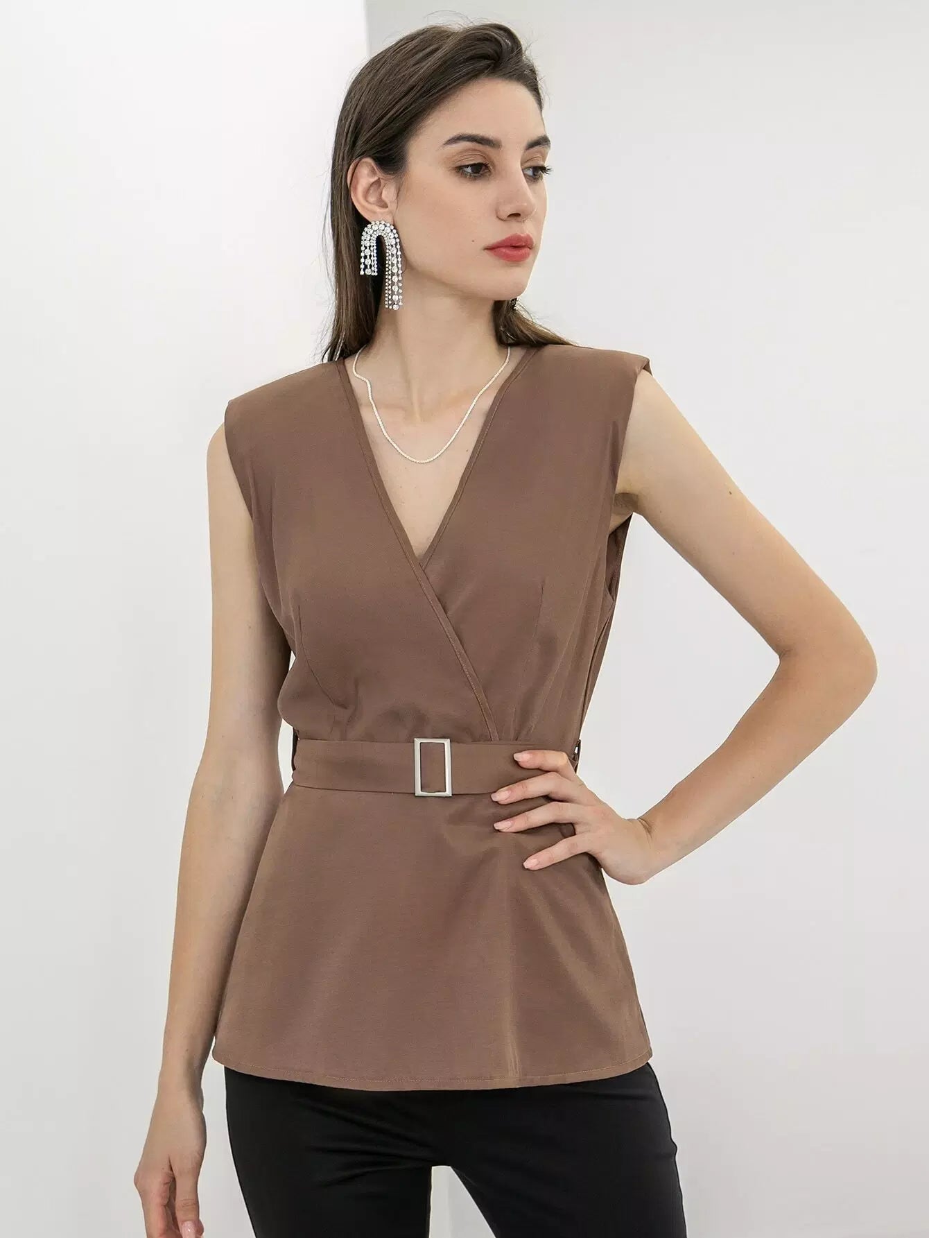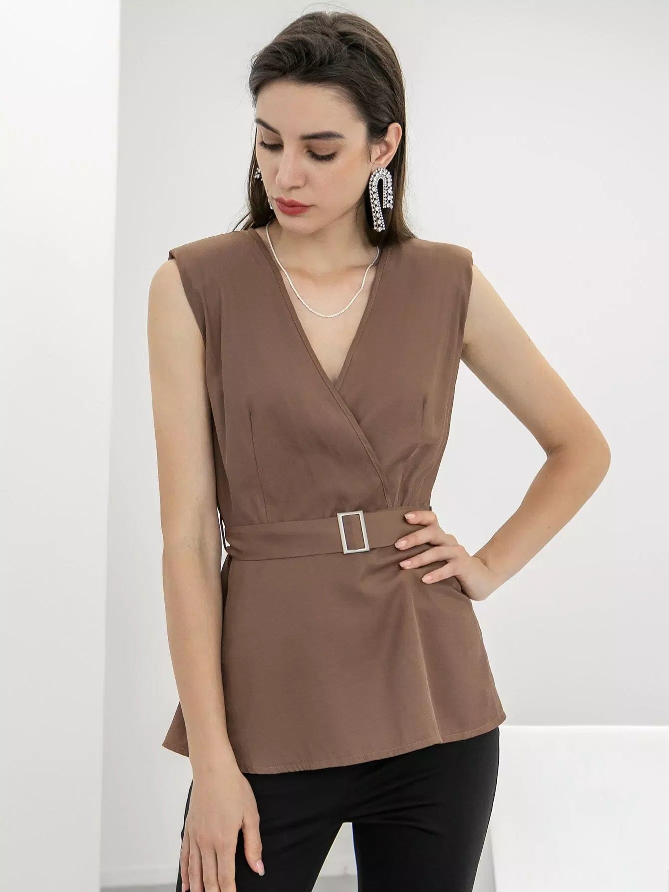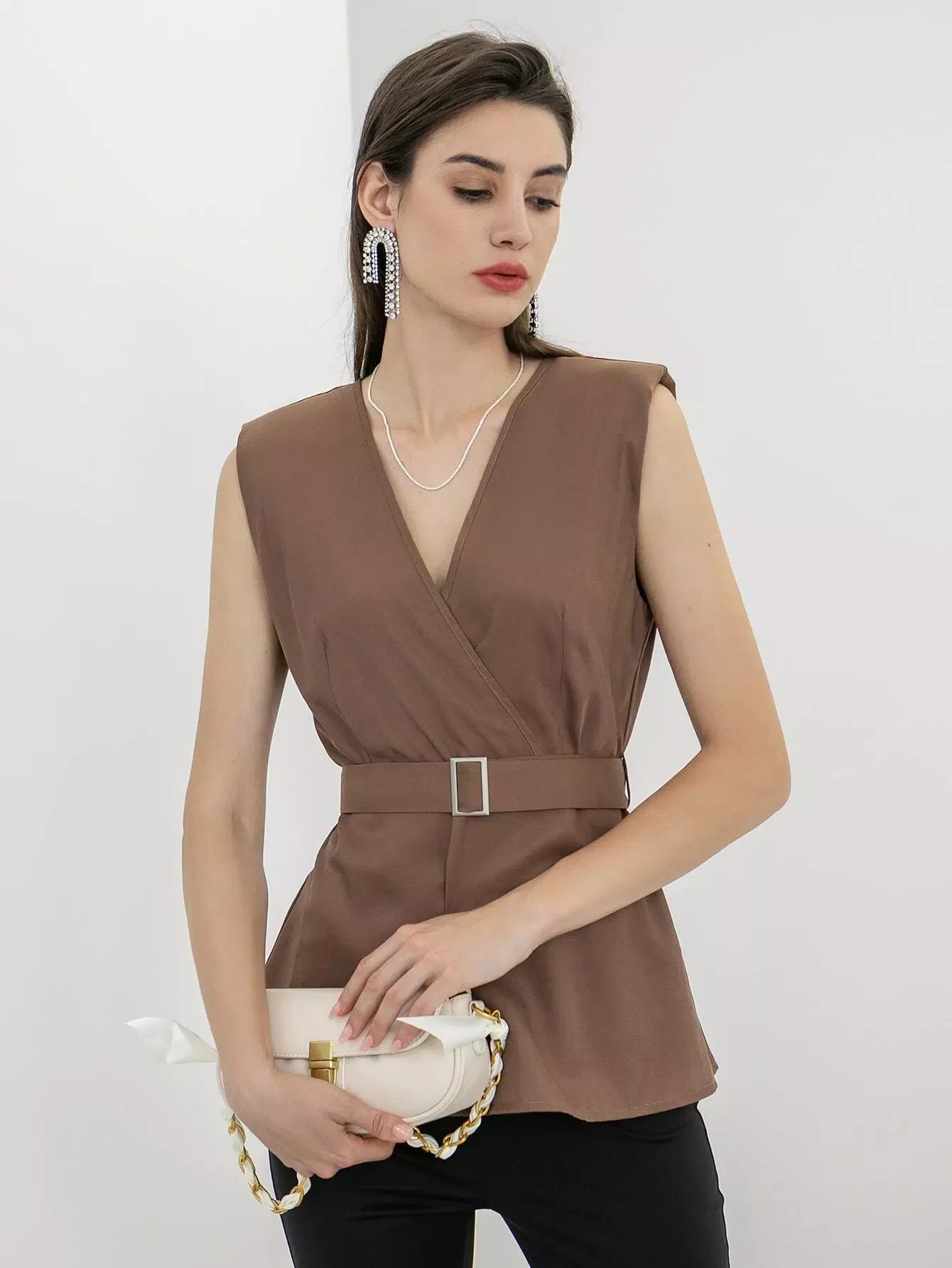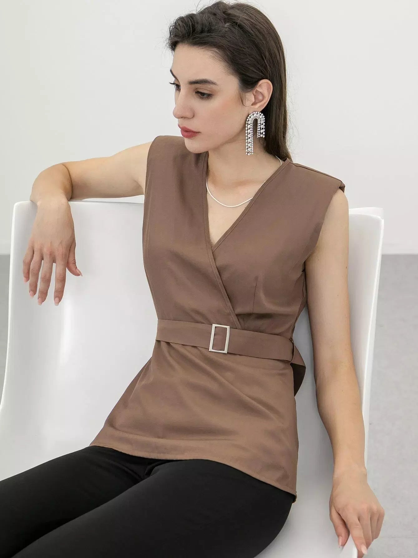 قطع بلوزة الأكمام بدون حزام