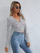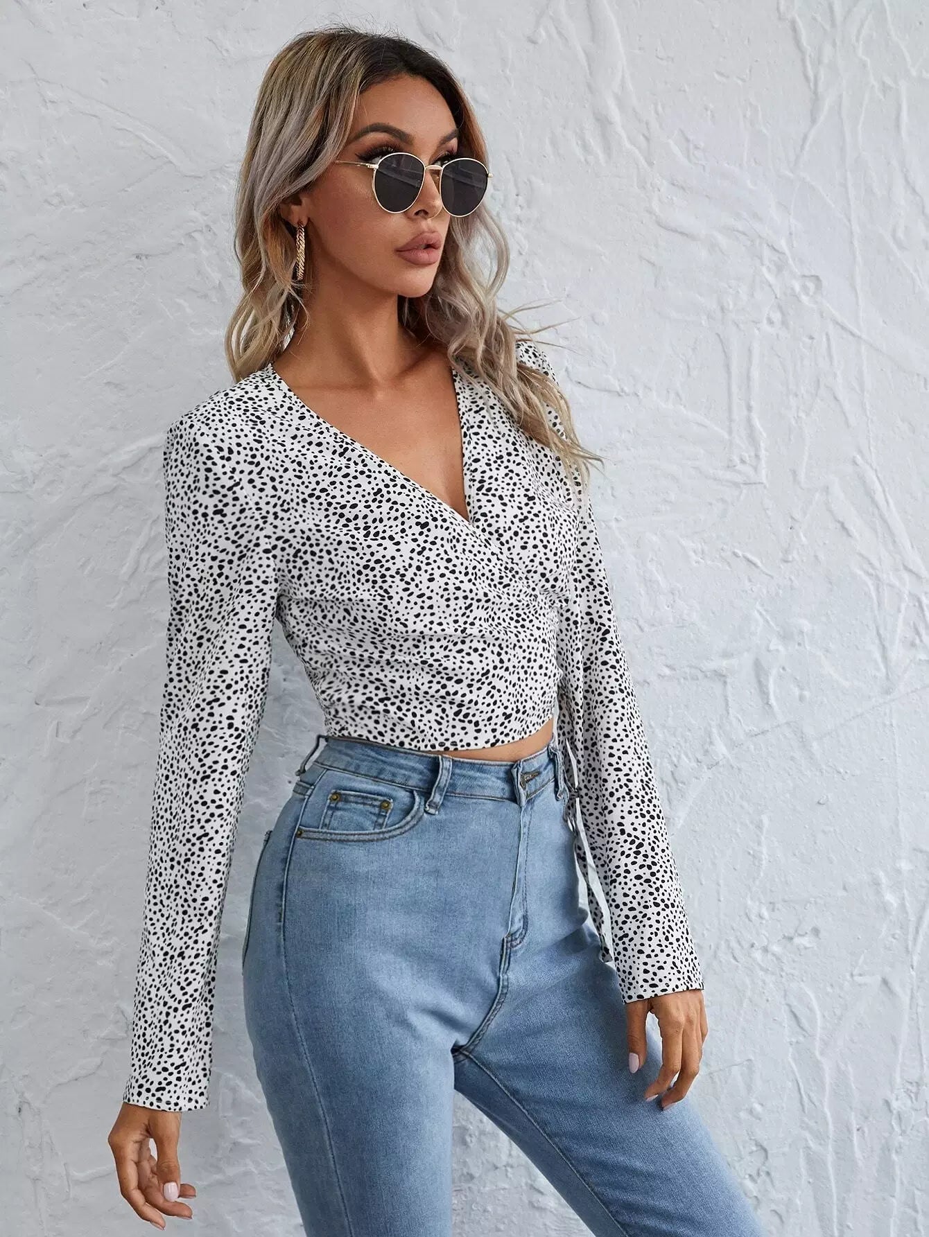 بلوزة ملفوفة برقبة ذات طباعة دلماسية بدون حزام
