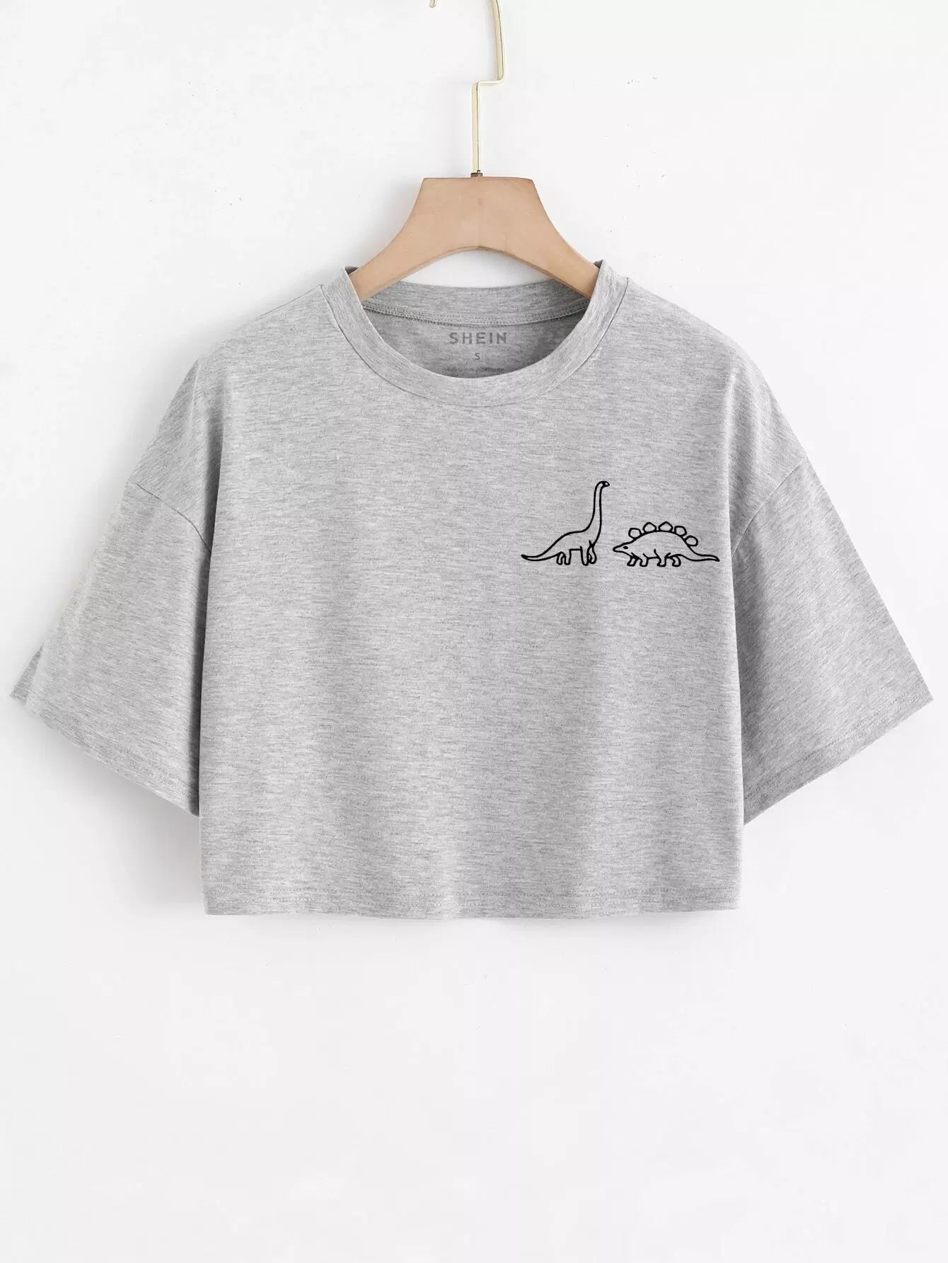 تي شيرت قصير منسدل الكتفين بتصميم ديناصور جرافيك منسدل الكتفين