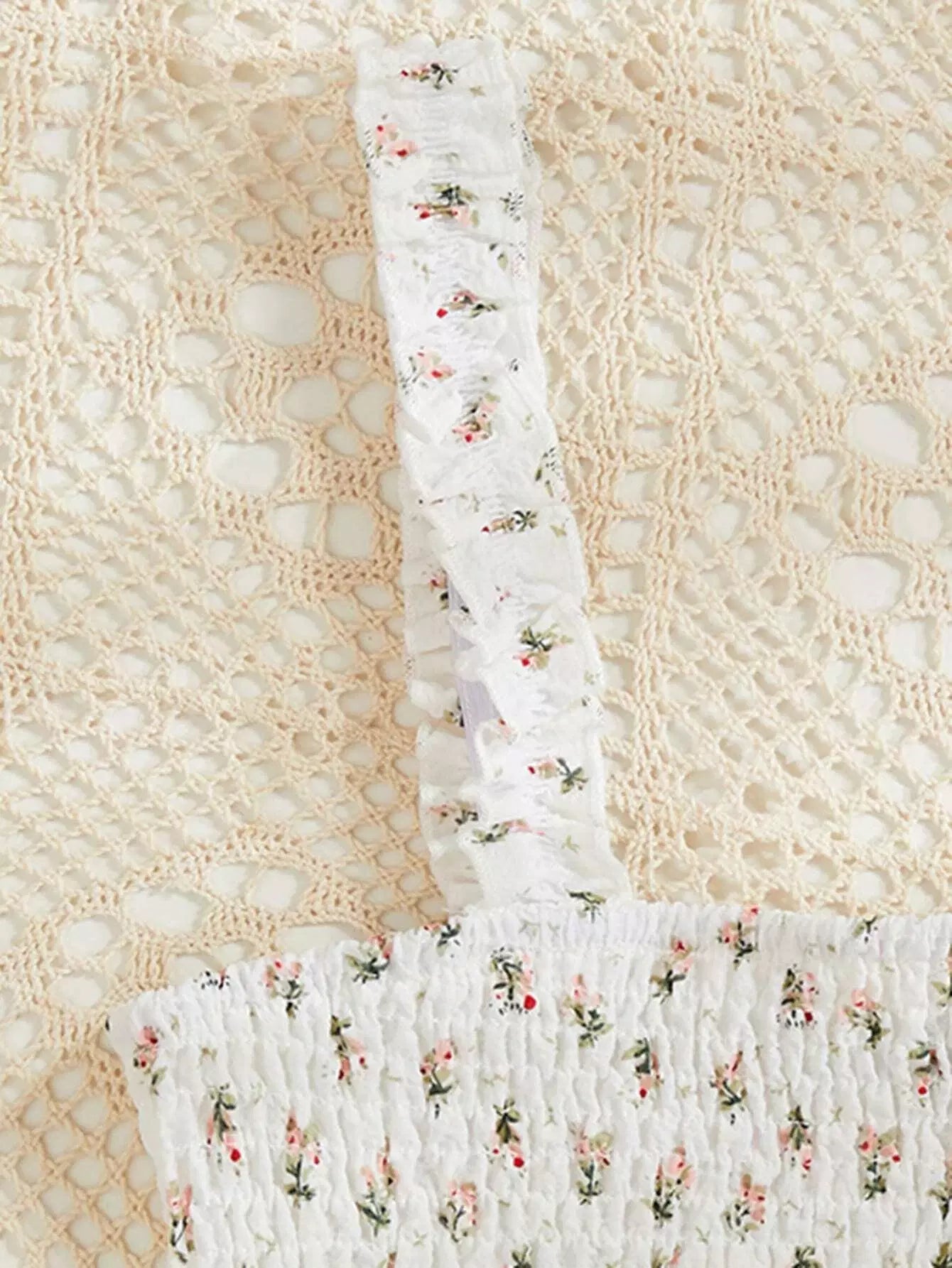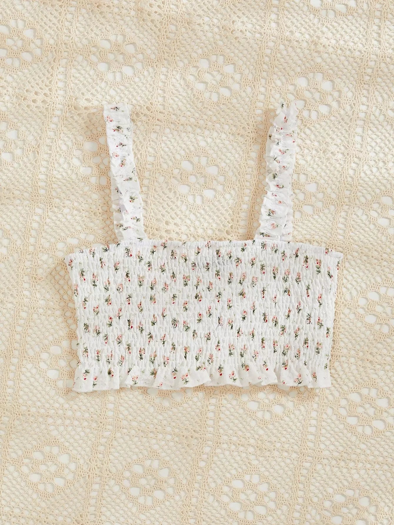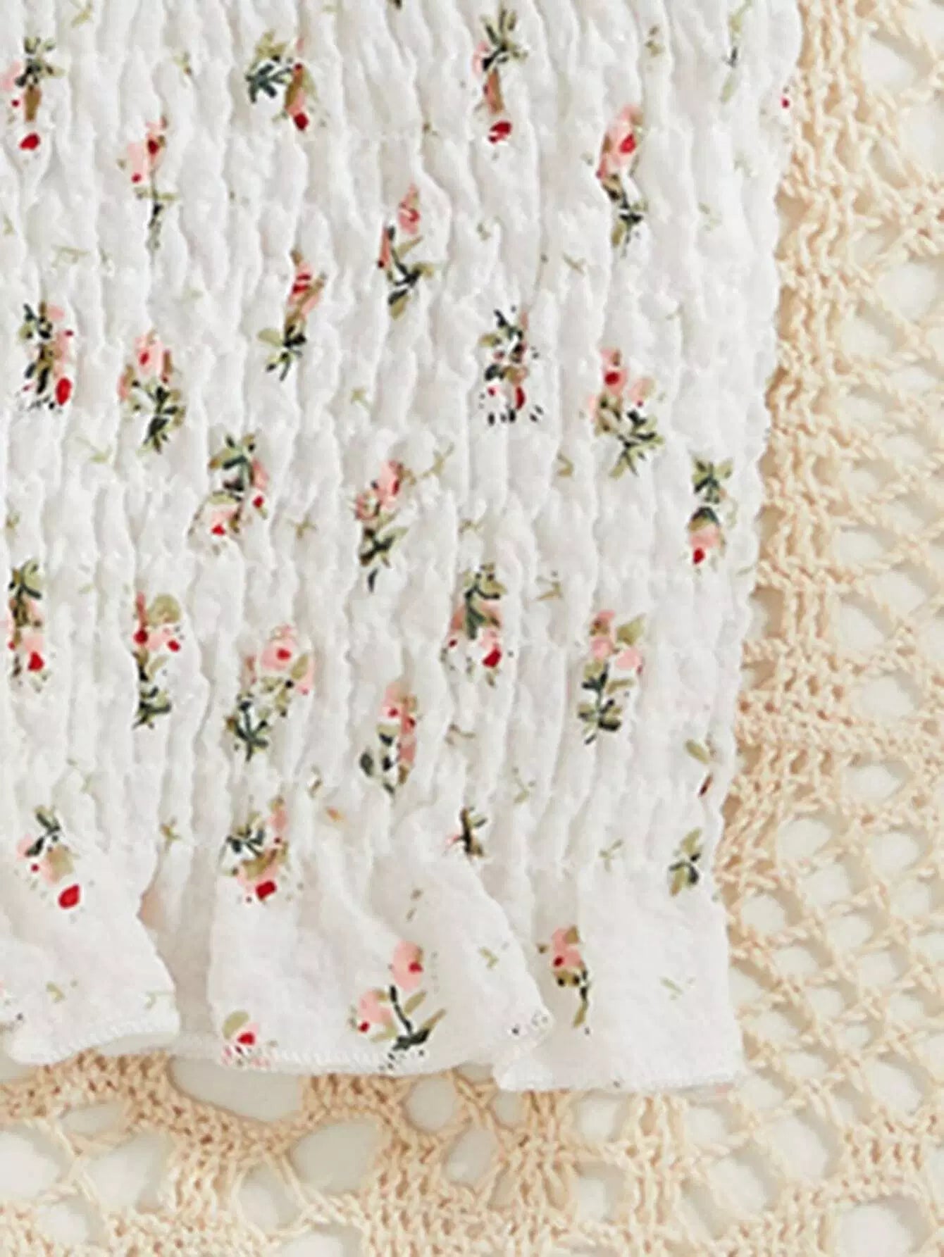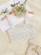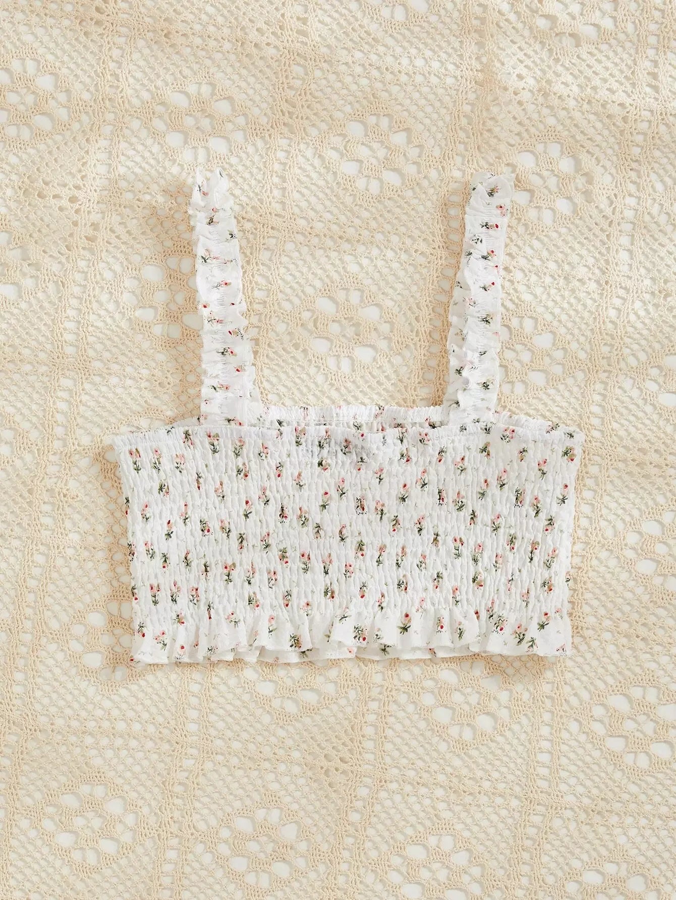 تي شيرت قصير مزين بالورود مزين بشريط كمّي