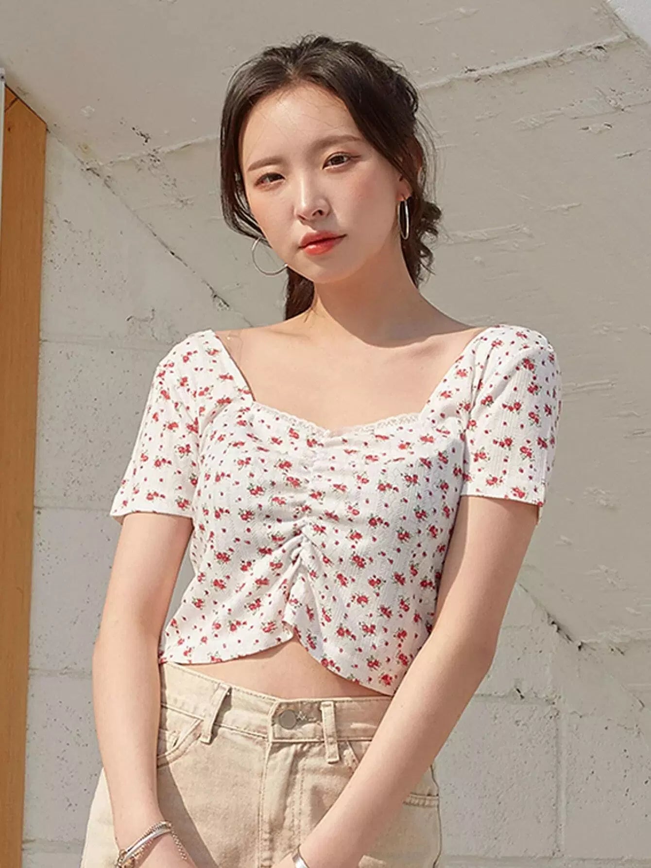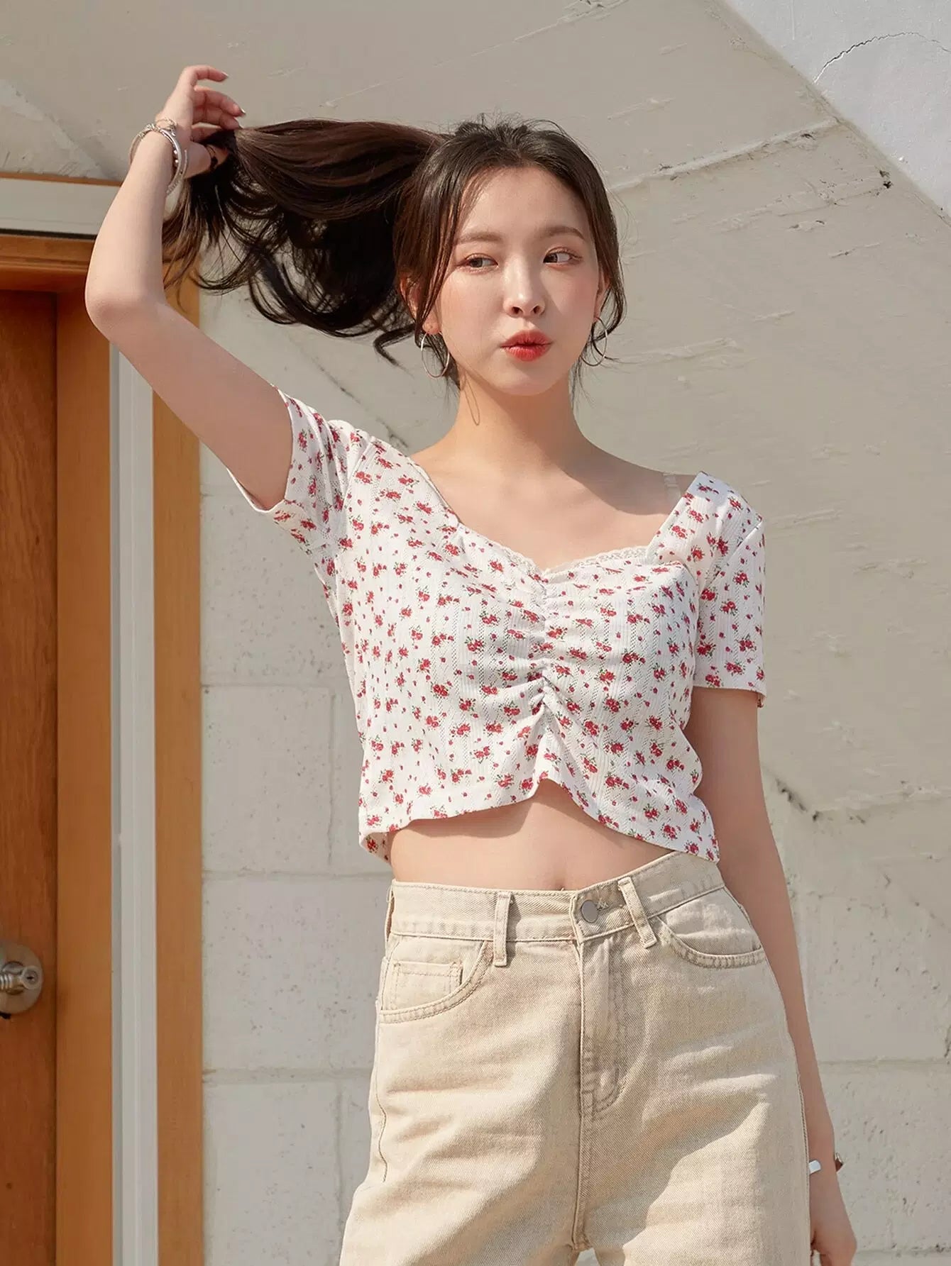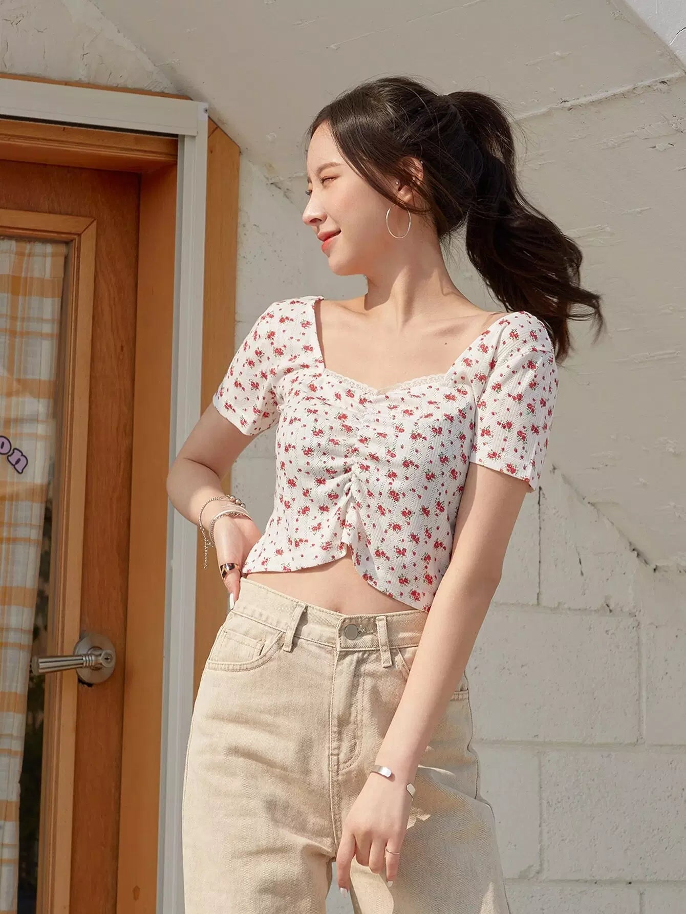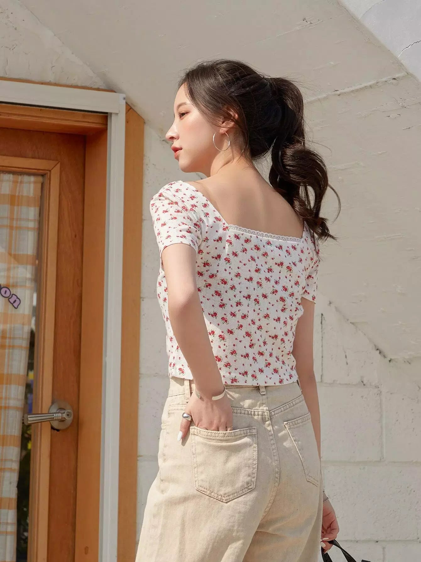 تي شيرت ديتسي مزين بالدانتيل المزين بزخارف من الدانتيل