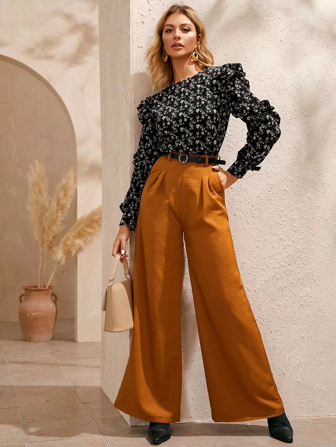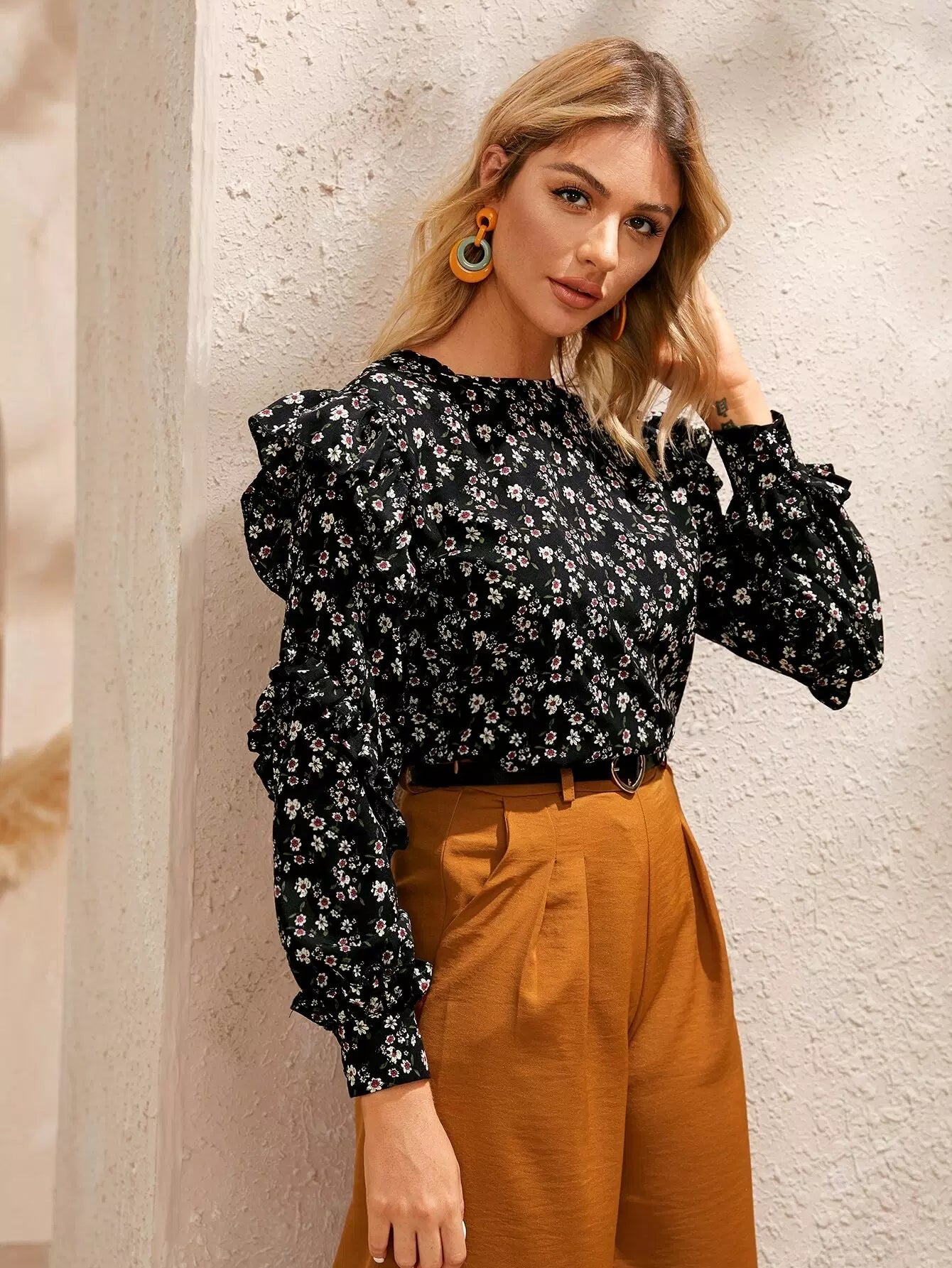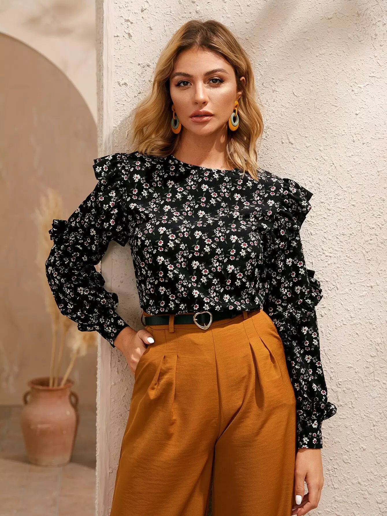 بلوزة ديتسي مزينة بكشكشة زهرية مزركشة