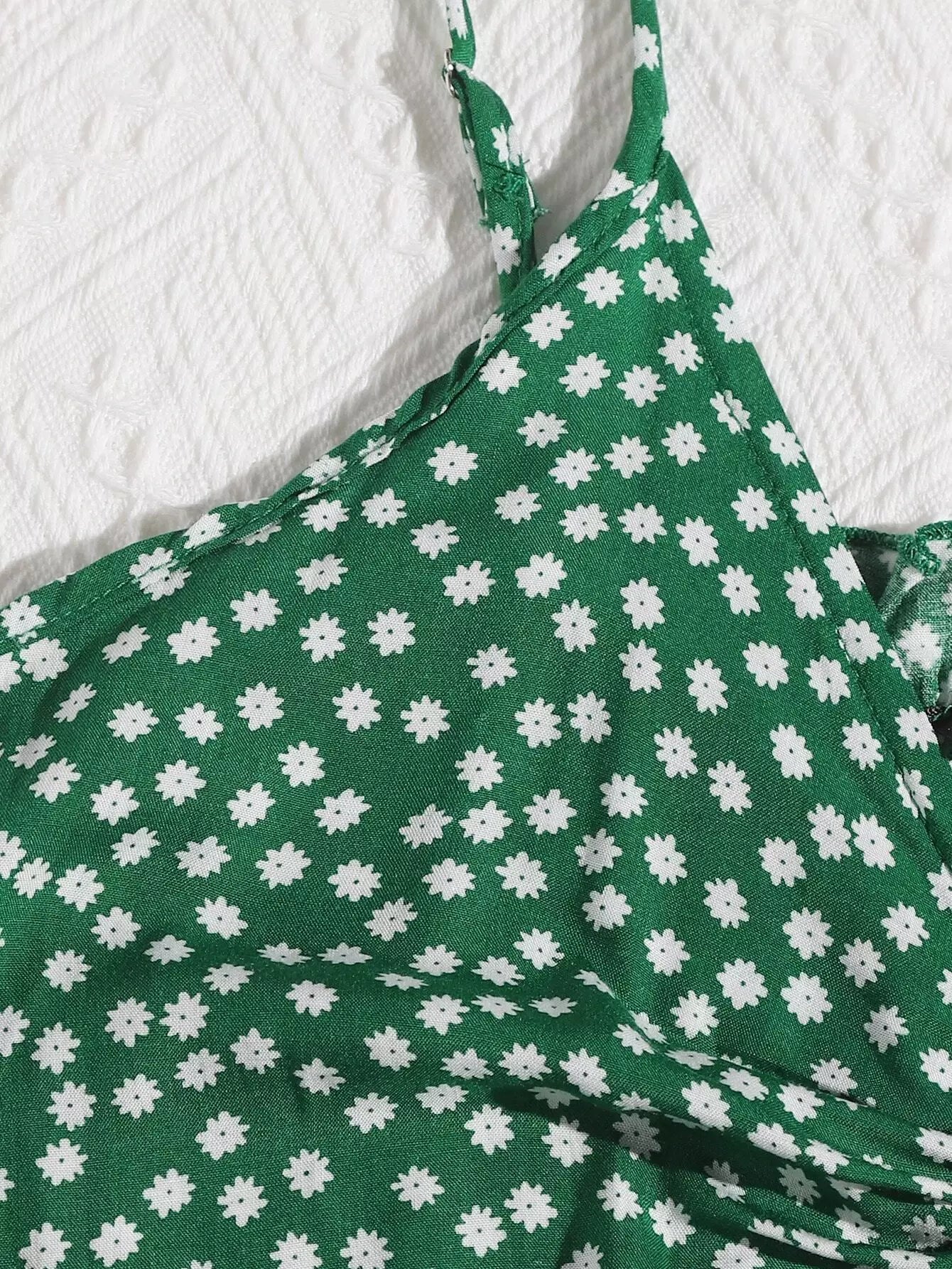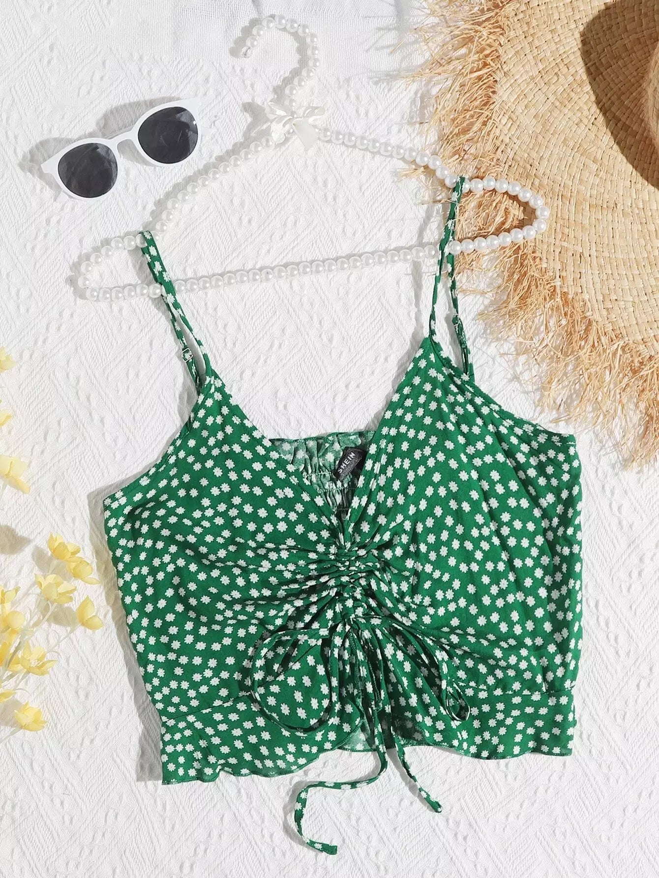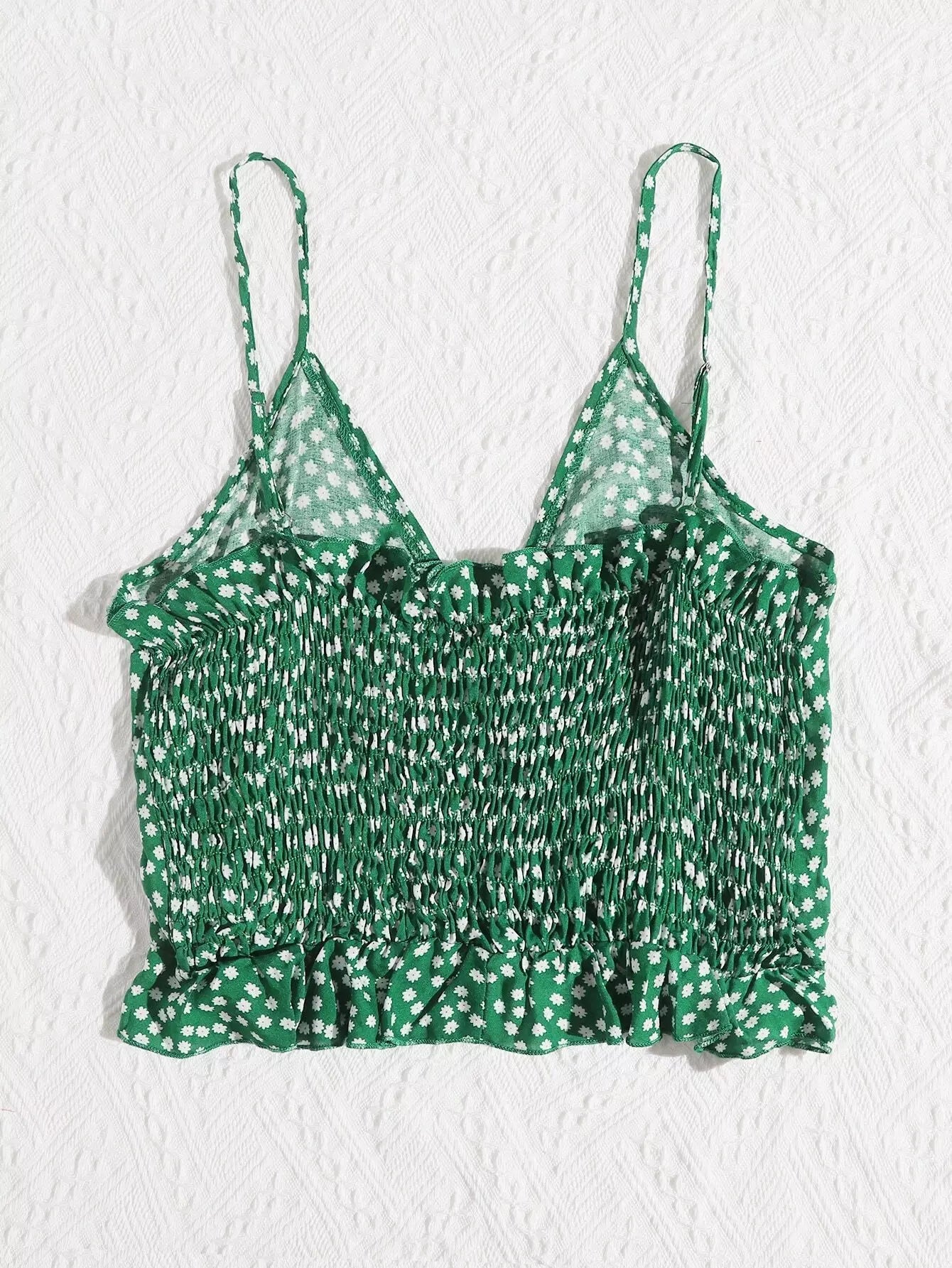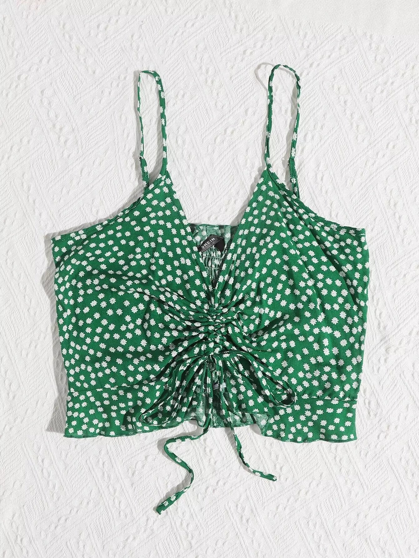 المرأة - بلوزة كامي قصيرة من الأمام مكشكشة ومكشكشة ومزودة بنقشة الزهور من Ditsy