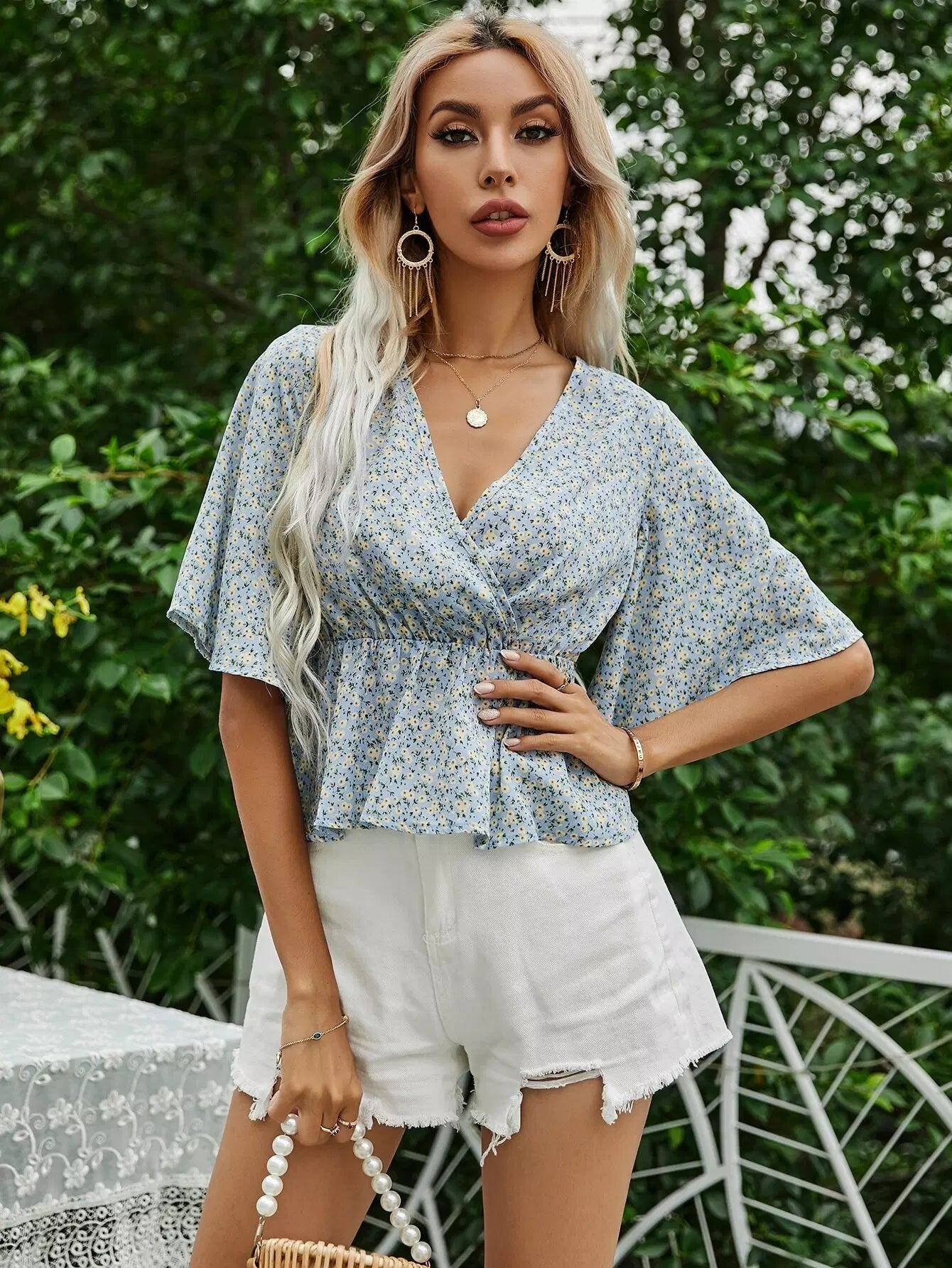 بلوزة بيبي دول ملفوفة ديتسي مزينة بالورود