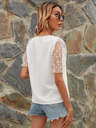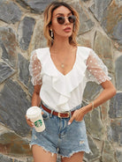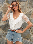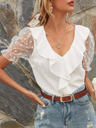 بلوزة مزينة بشريط شبكي مكشكش من الدوبي