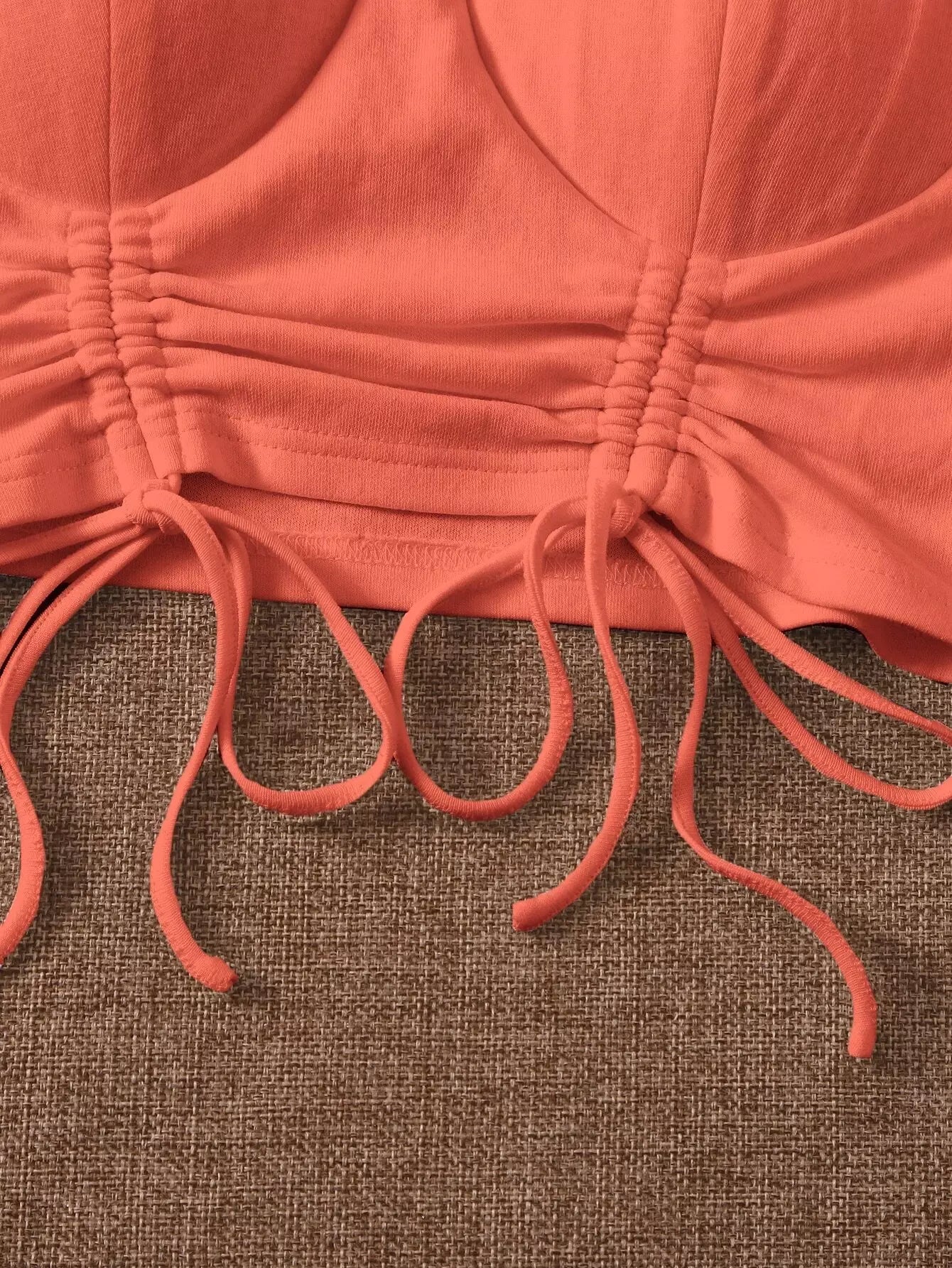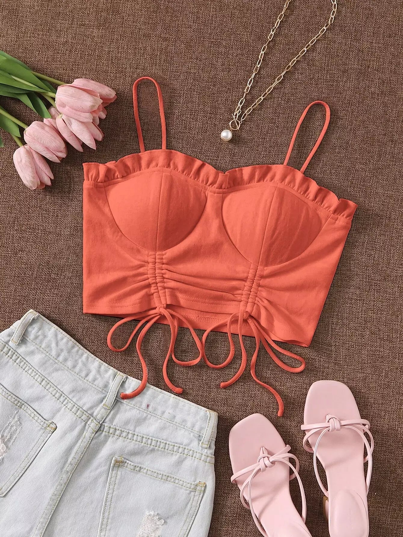 بلوزة كامي بحواف مكشكشة ورباط سحب