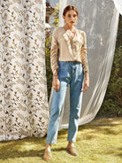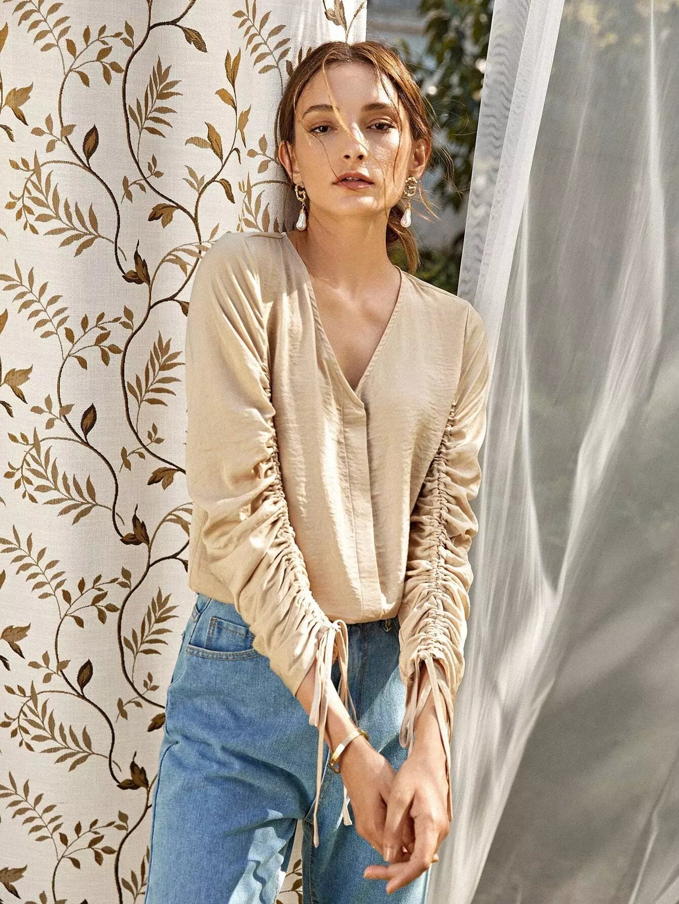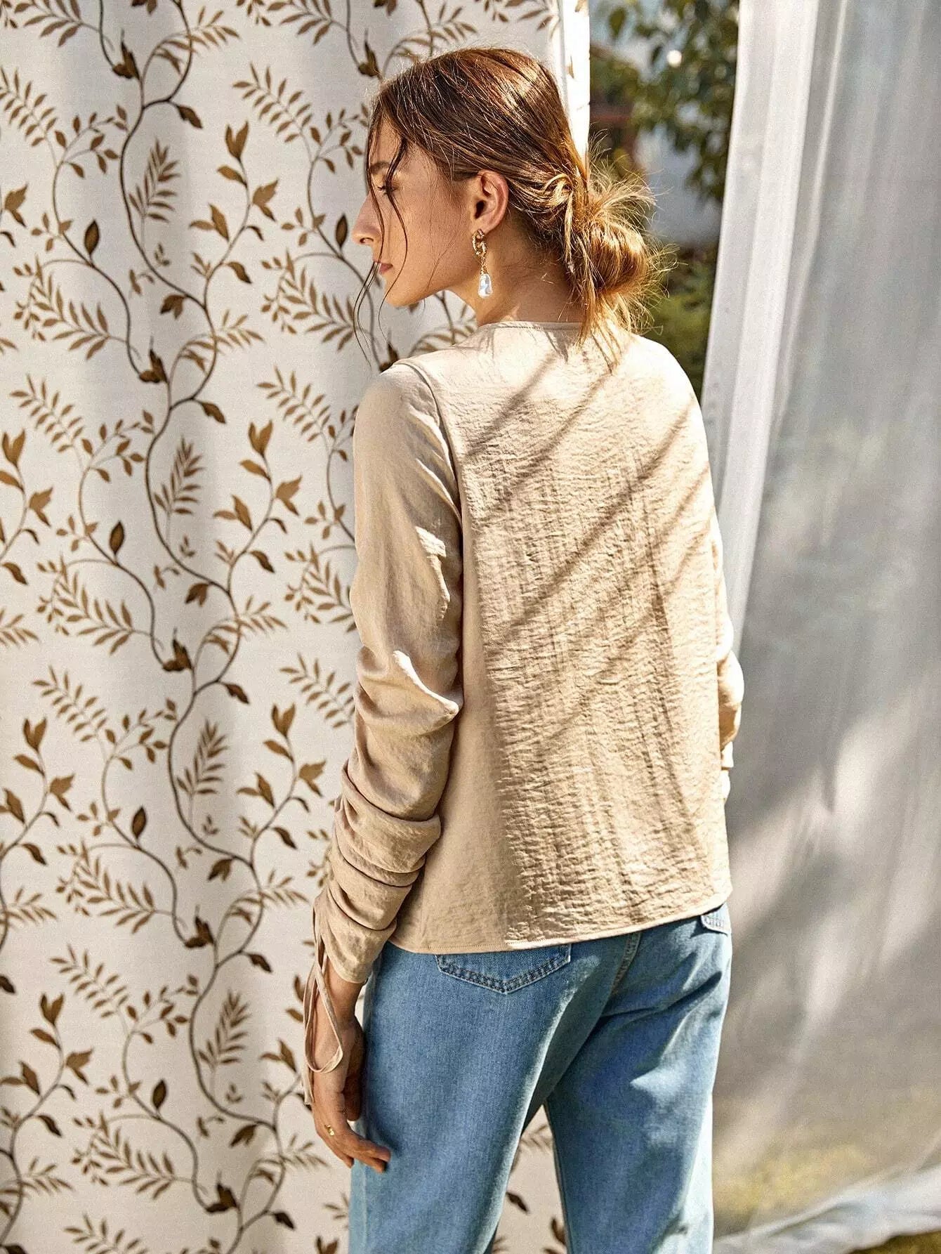 بلوزة بأزرار بأكمام بأزرار أمامية بأربطة