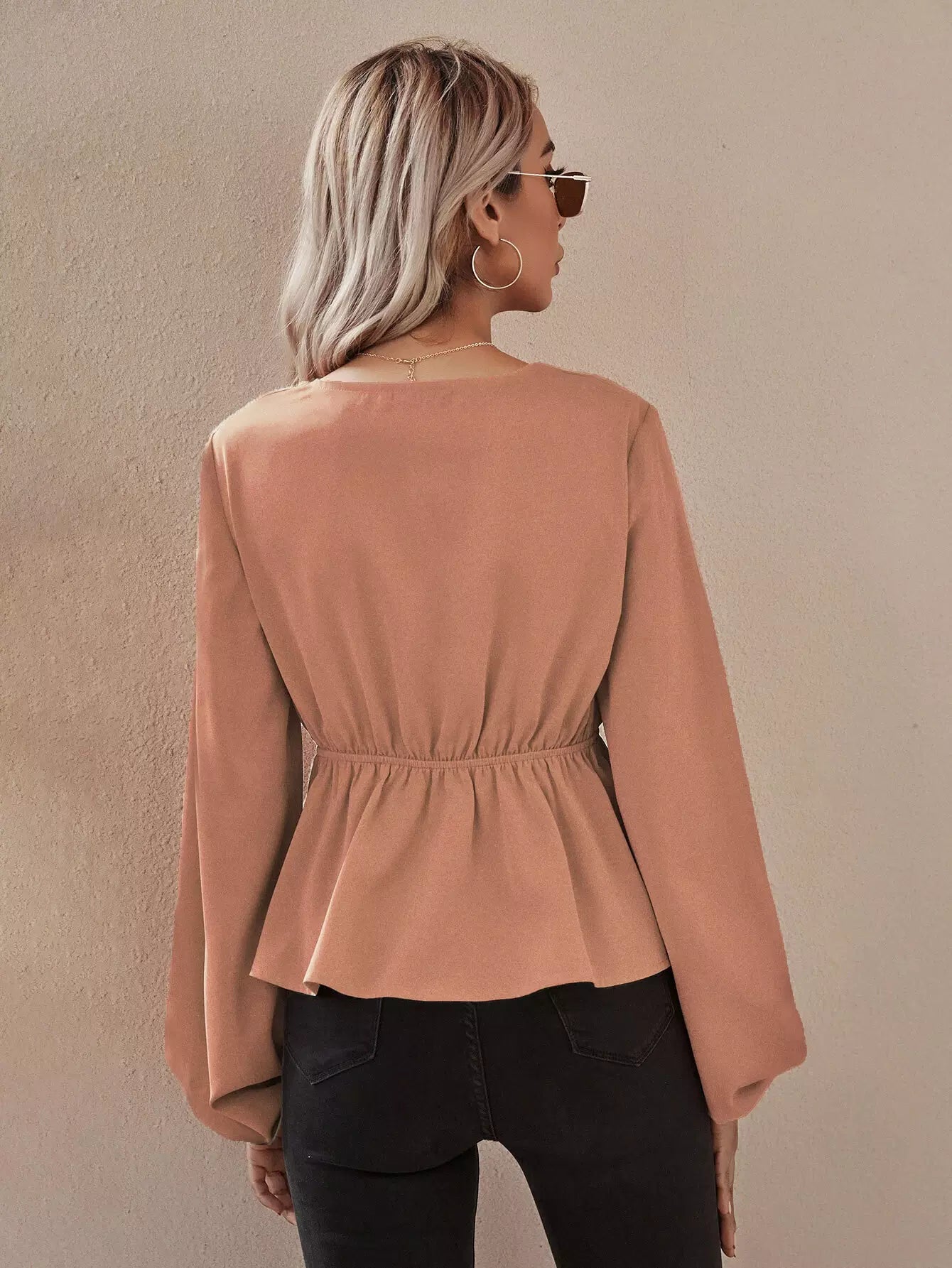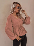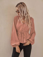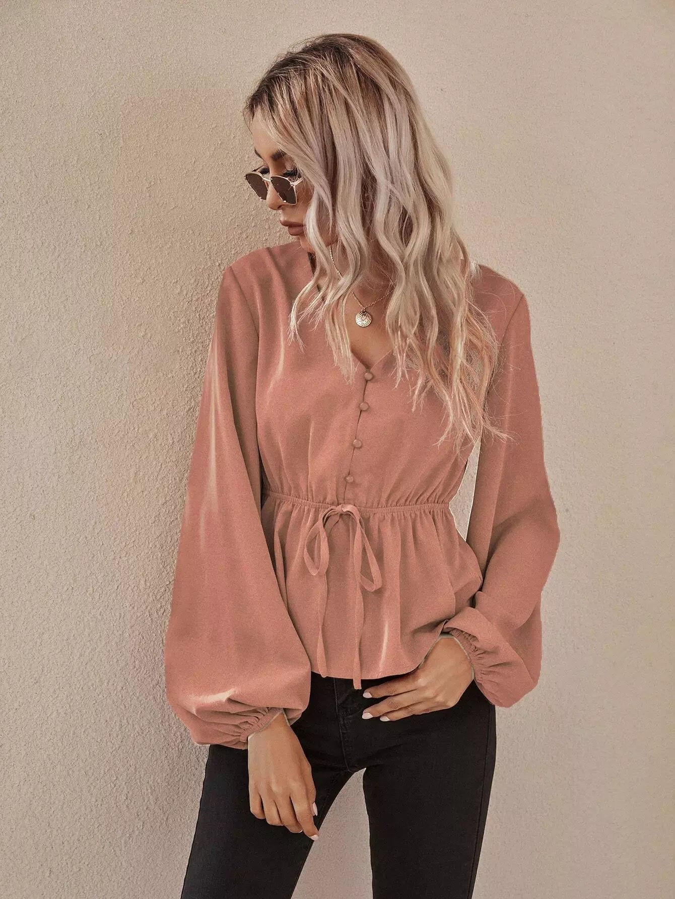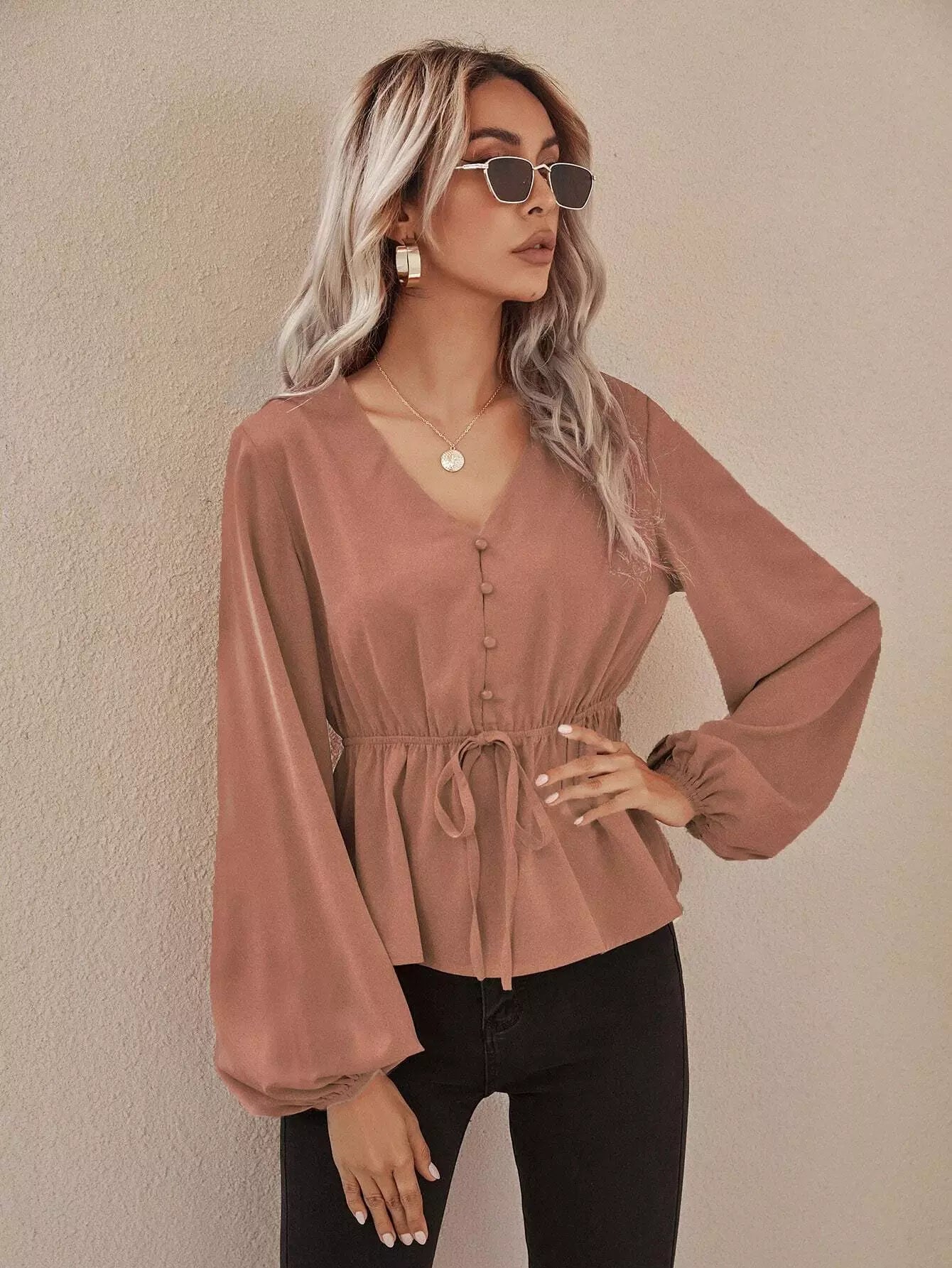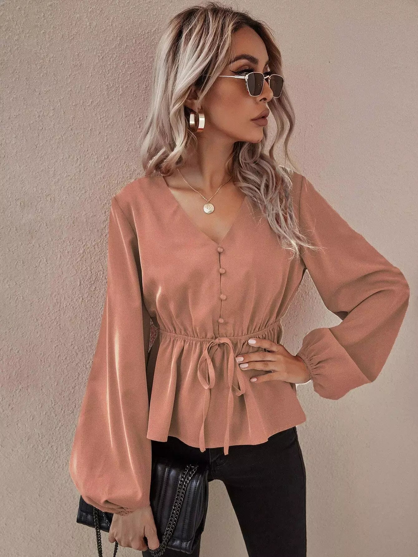 بلوزة بأكمام رباط خصر بأربطة على الخصر بأكمام فاتنة