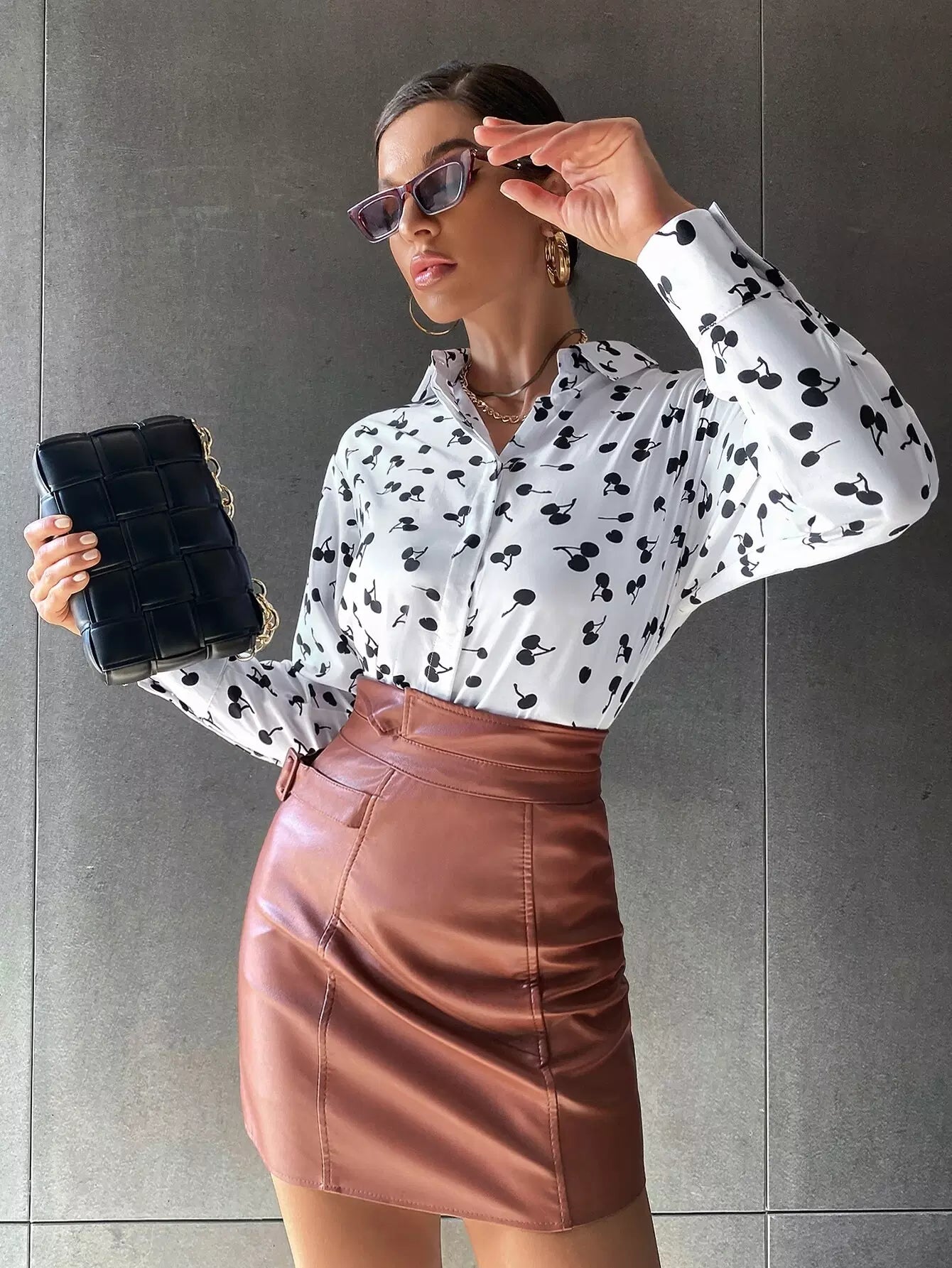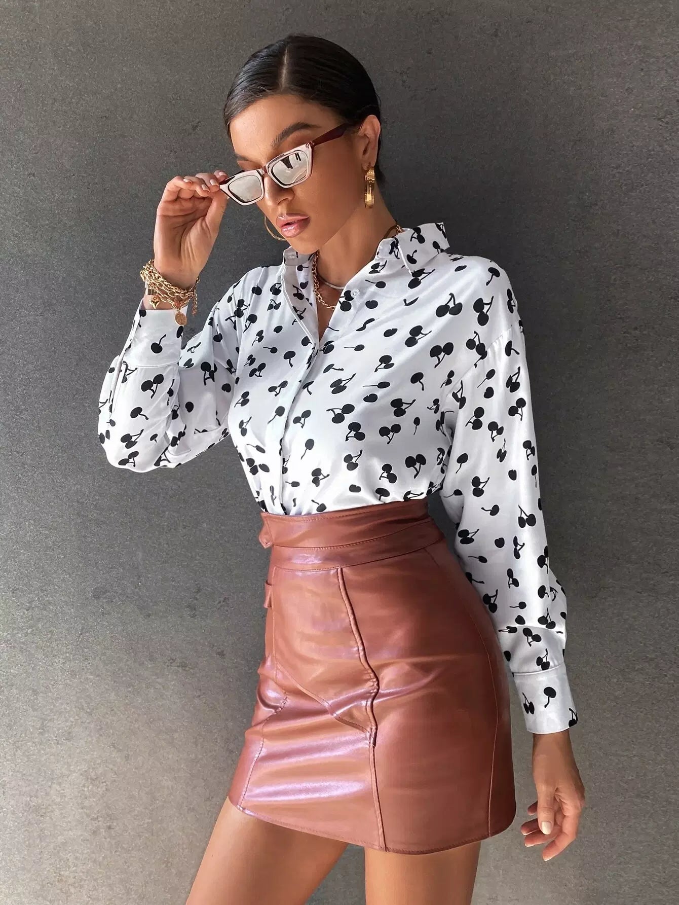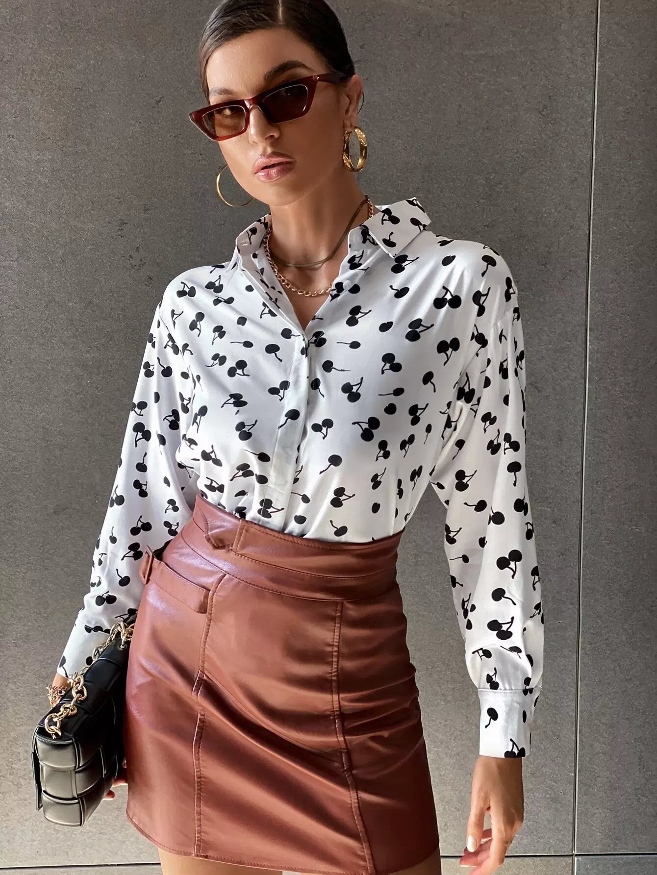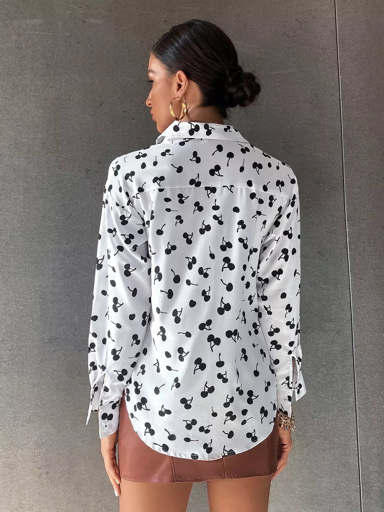 قميص مطبوع عليه أكتاف منسدلة بطبعة كرز