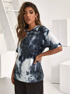 تي شيرت بقصّة منسدلة الكتفين بقصّة منسدلة الكتفين مصبوغ بالصبغة