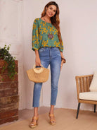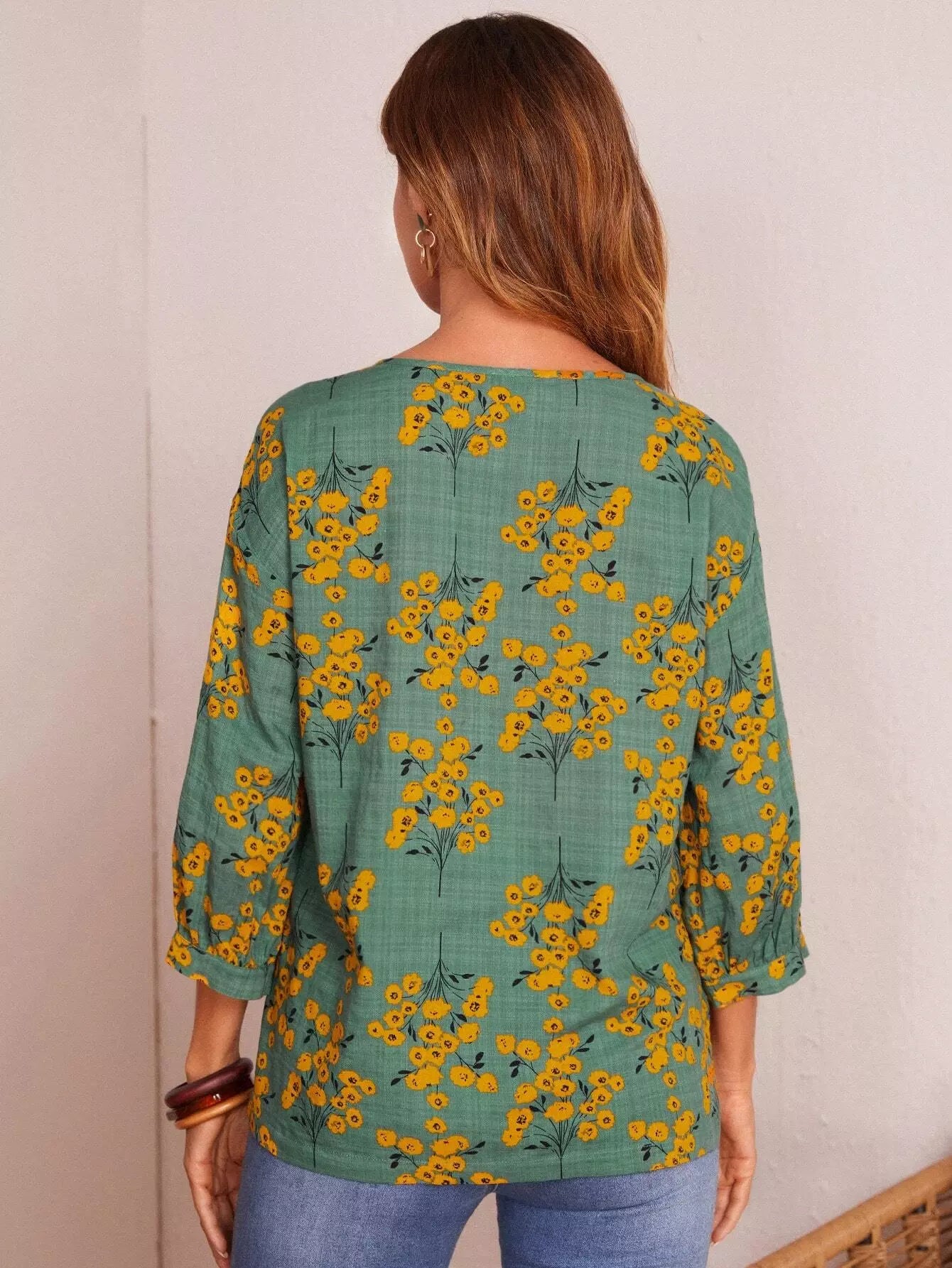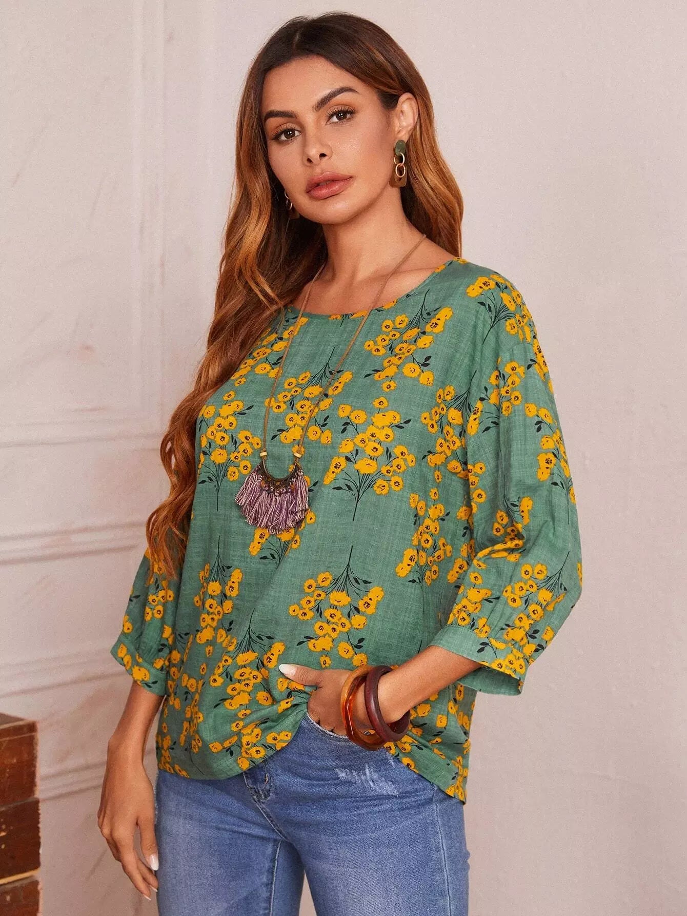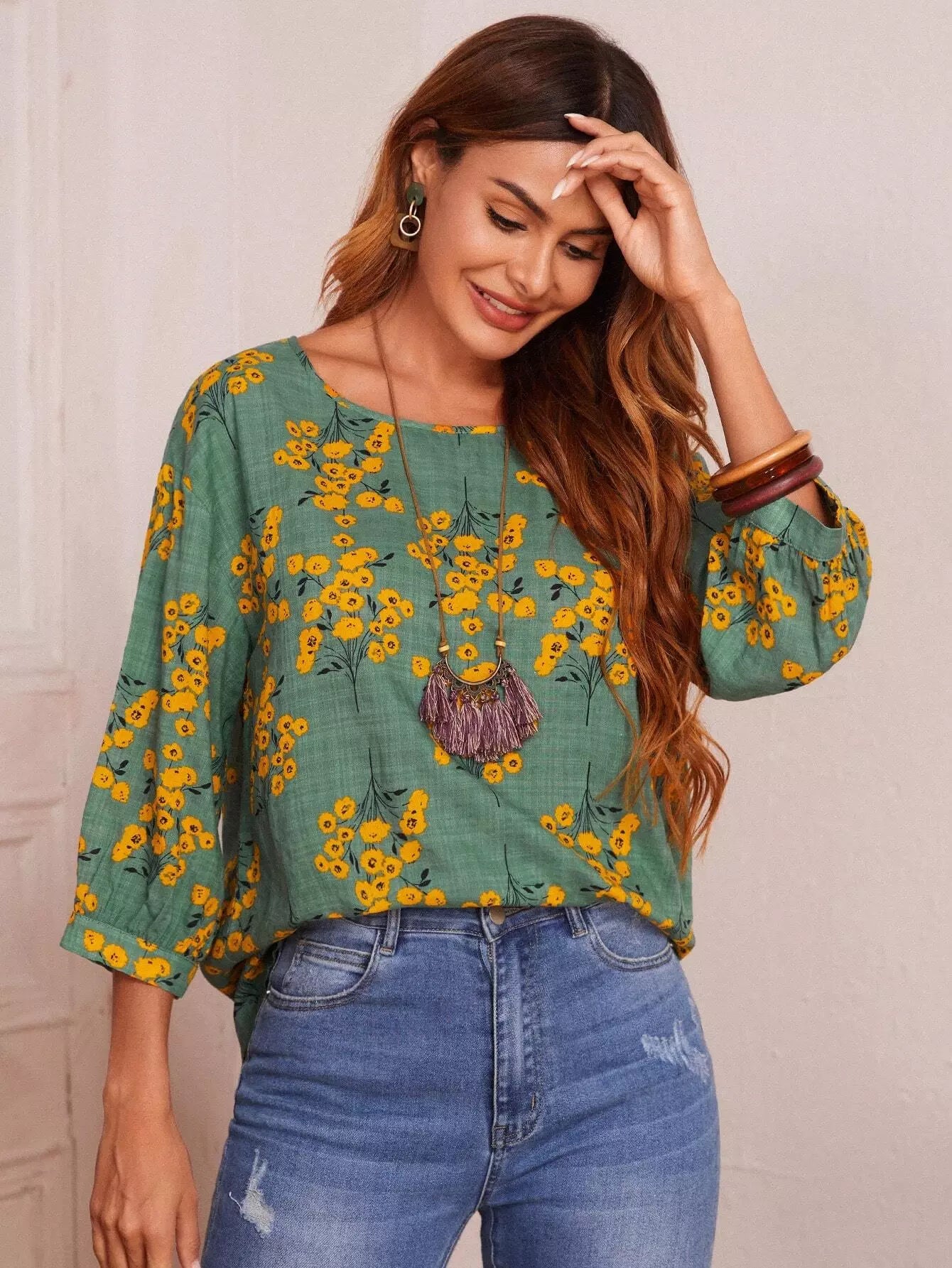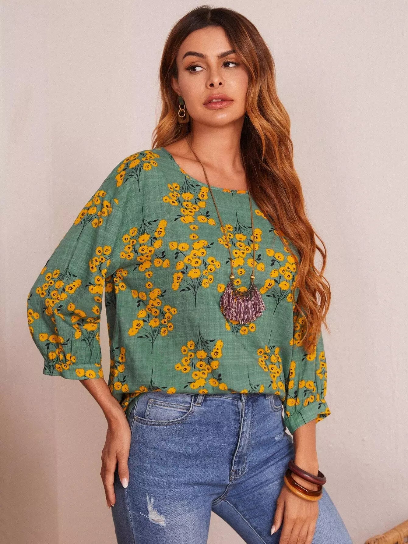 بلوزة زهرية منسدلة الكتفين منسدلة الكتفين
