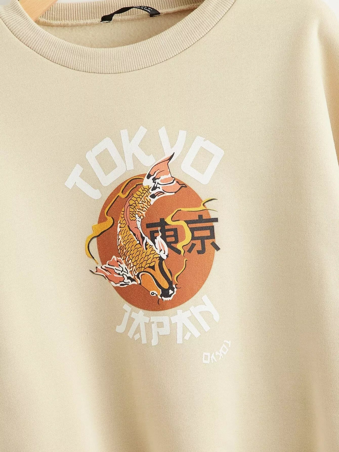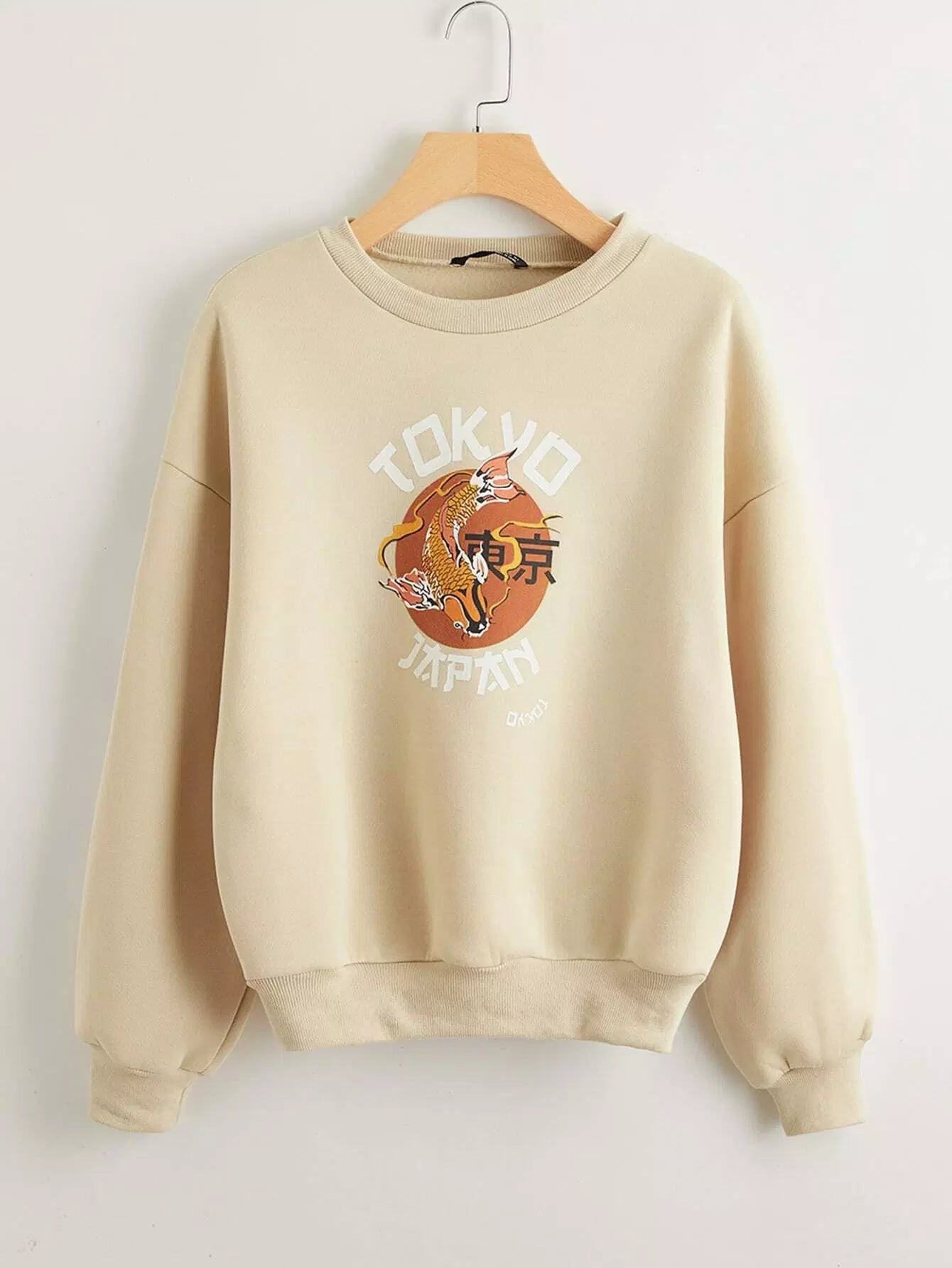 كنزة صوفية يابانية منسدلة الكتفين ذات رسومات يابانية حريرية