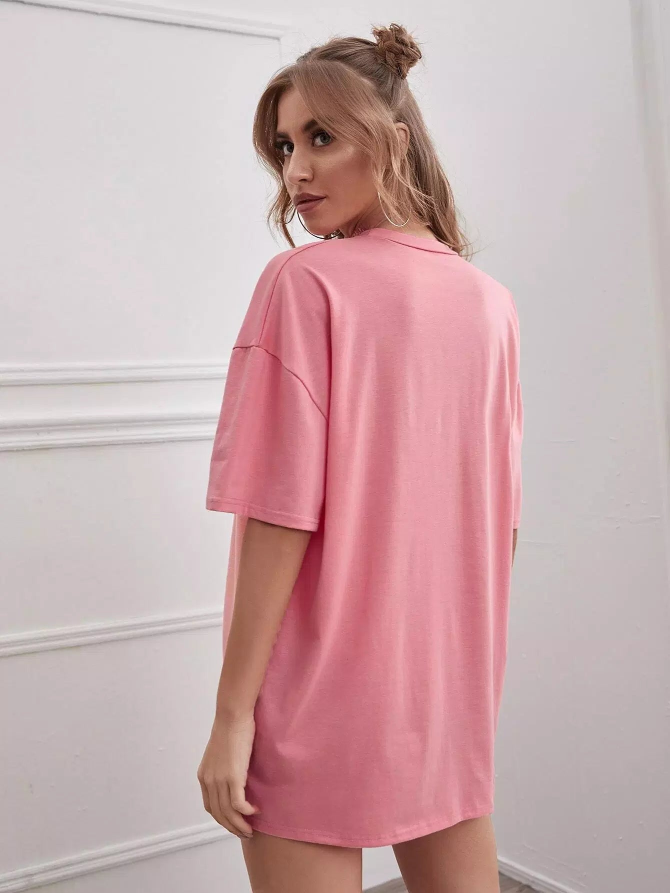 تي شيرت ذو أكتاف منسدلة برسومات على الأكتاف كبيرة الحجم