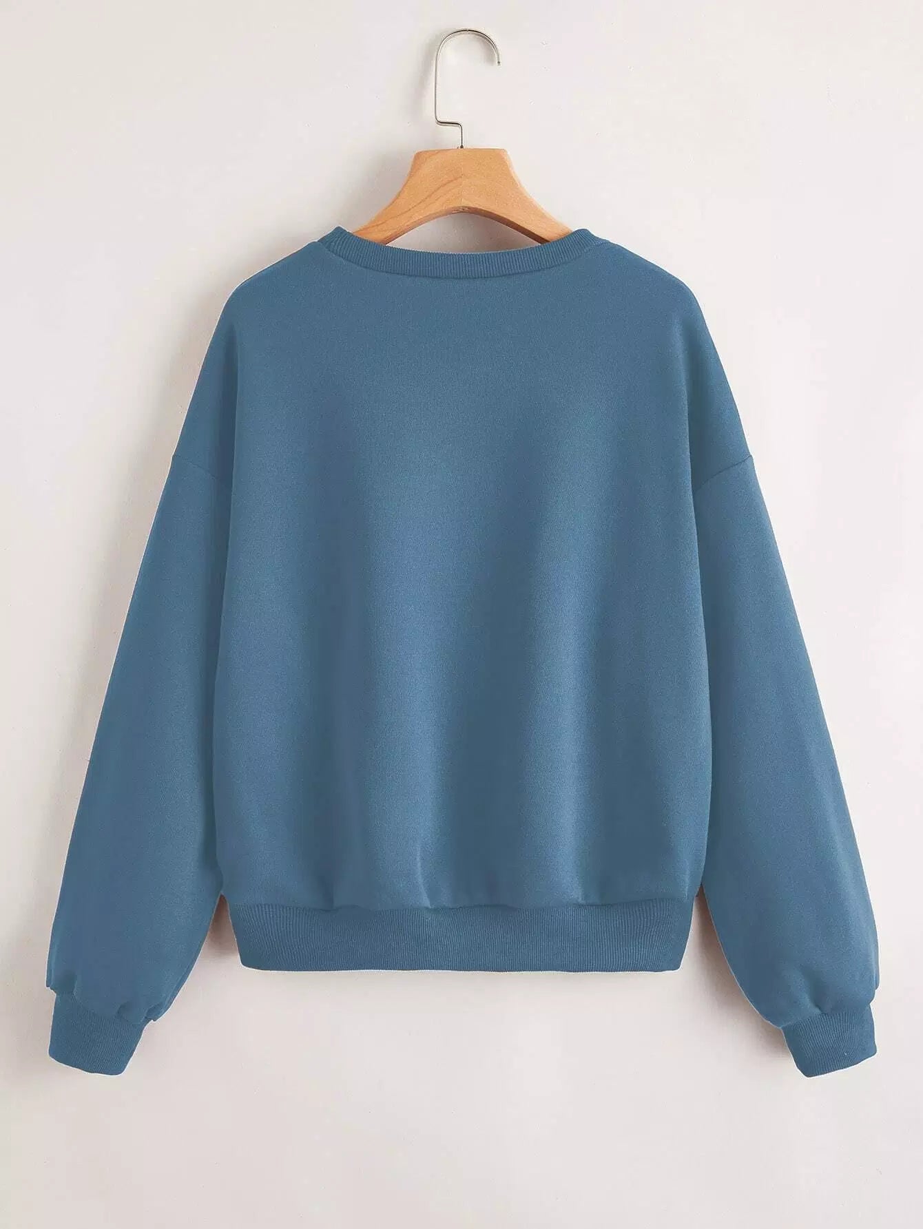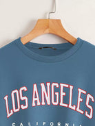 قميص سويت شيرت ذو أكتاف منسدلة برسومات حرارية مبطنة بحروف منسدلة