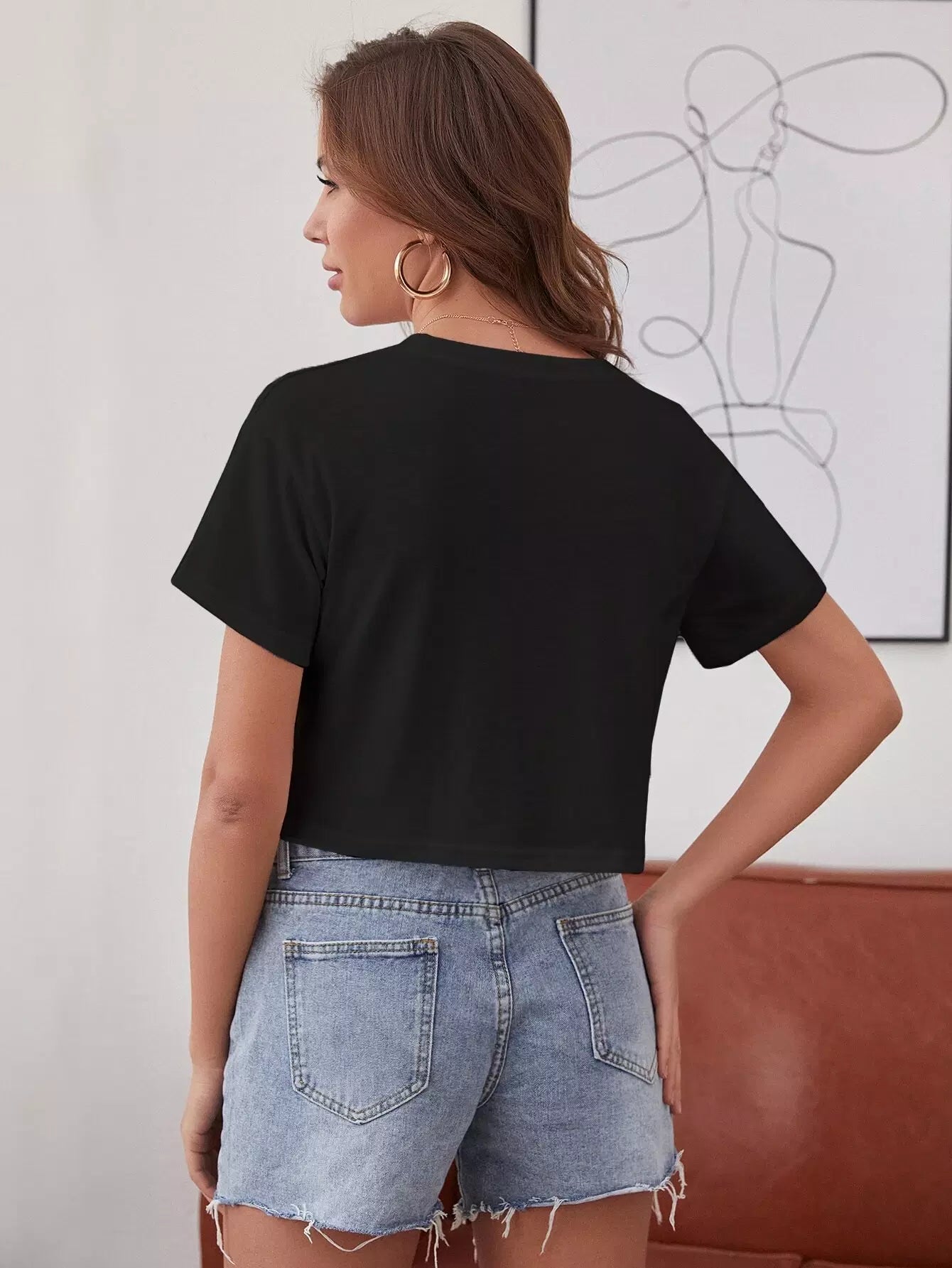 تي شيرت قصير قصير منسدل الكتفين سادة