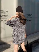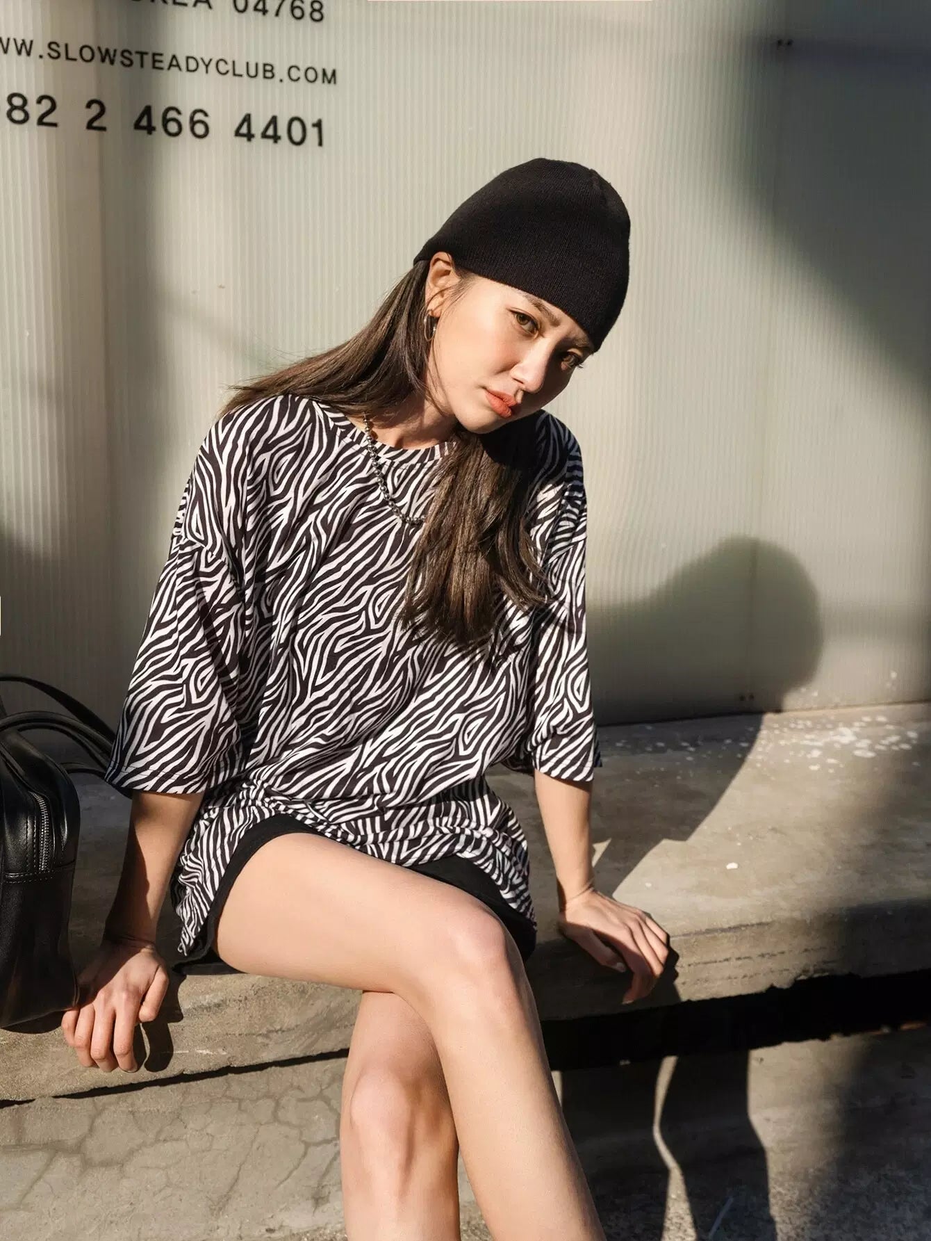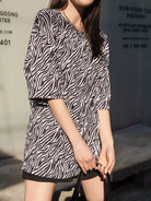 تي شيرت طويل مخطط بأكتاف منسدلة على شكل زيبرا