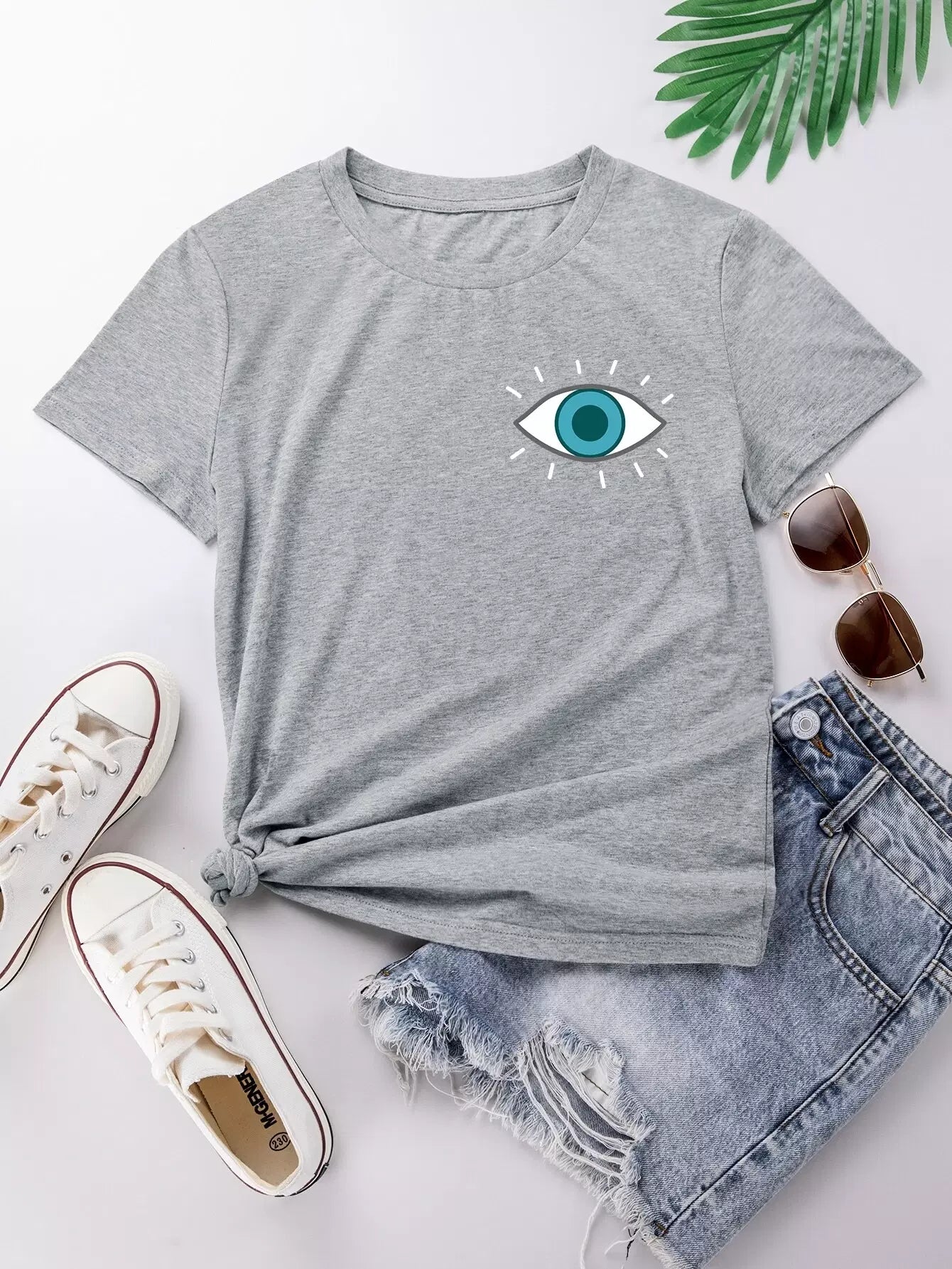 تي شيرت برقبة مستديرة مطبوع عليه عينين