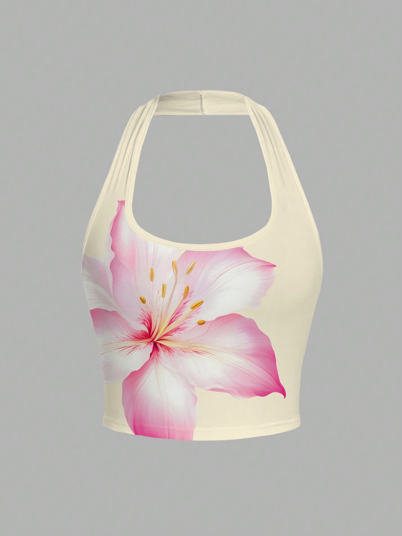 EZwear Women's Casual Floral Print Tight-Fitting Halter Neck Tank Top For Summer