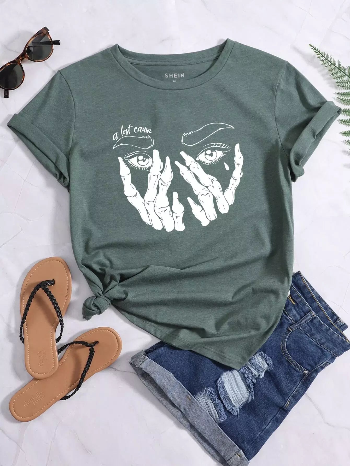 للنساء - تي شيرت برقبة دائرية وطبعة شخصية وشعار