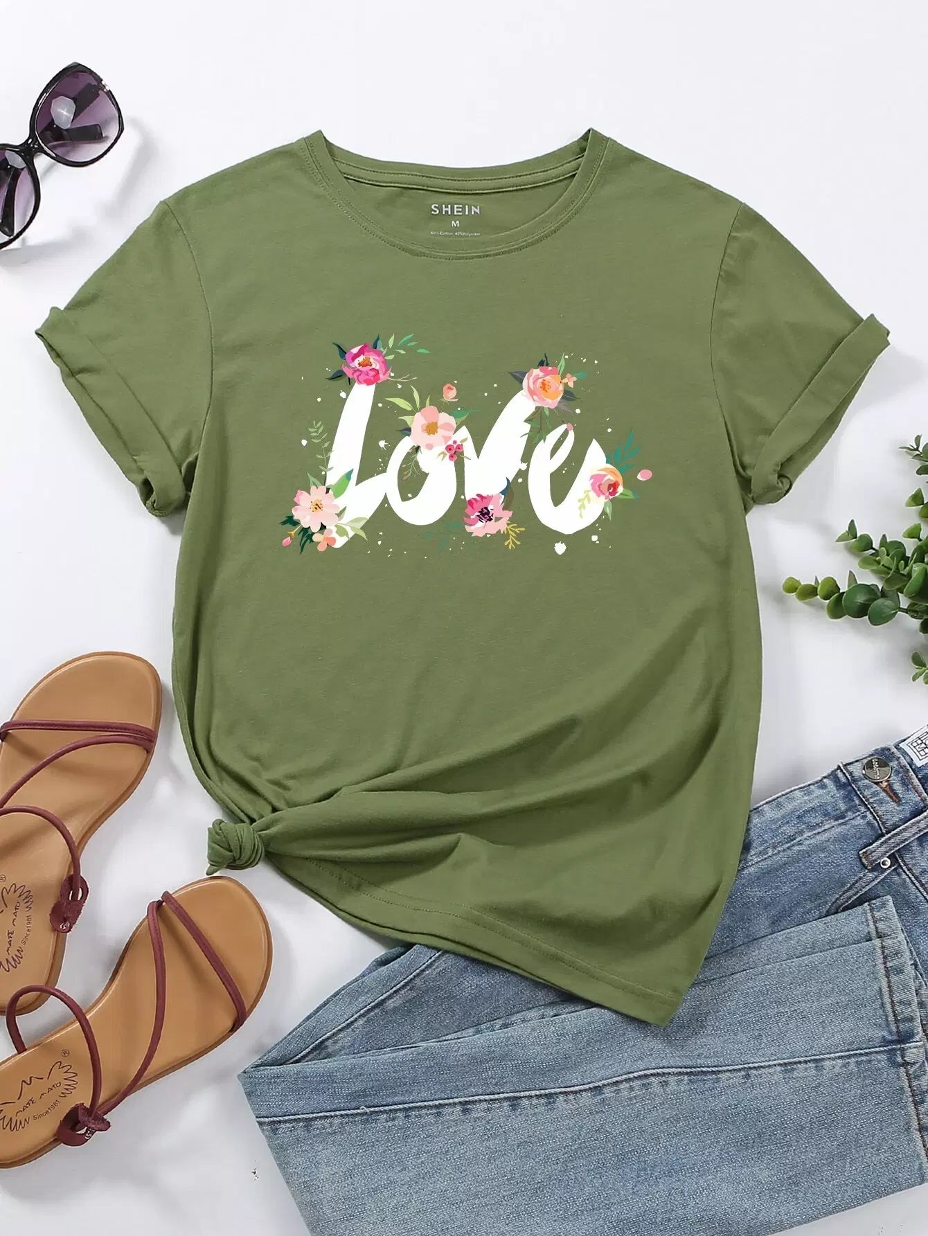 تي شيرت برسومات زهور وحروف