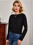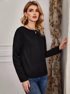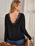 بلوزة بياقة قارب بياقة قارب مزينة بزخارف من الدانتيل