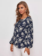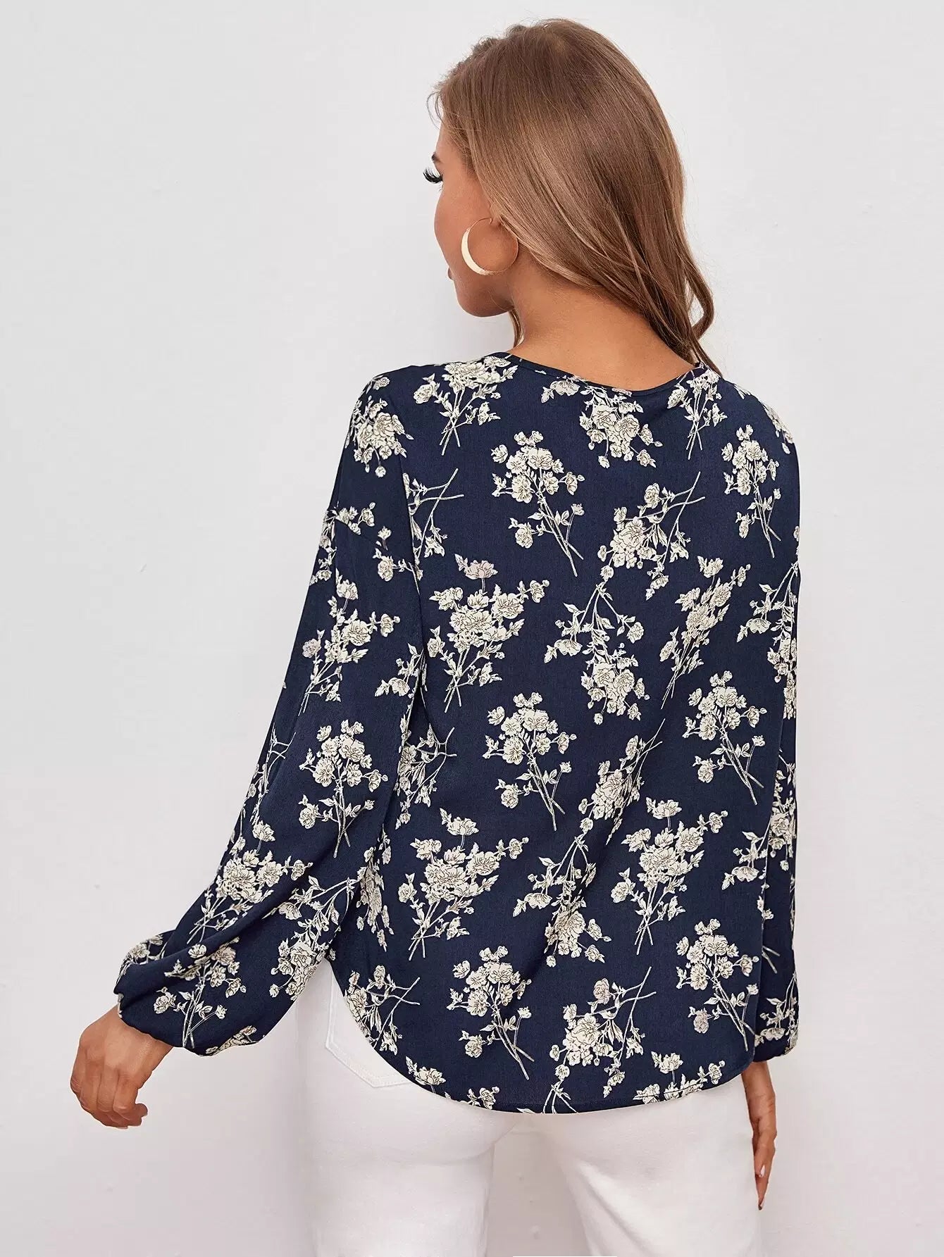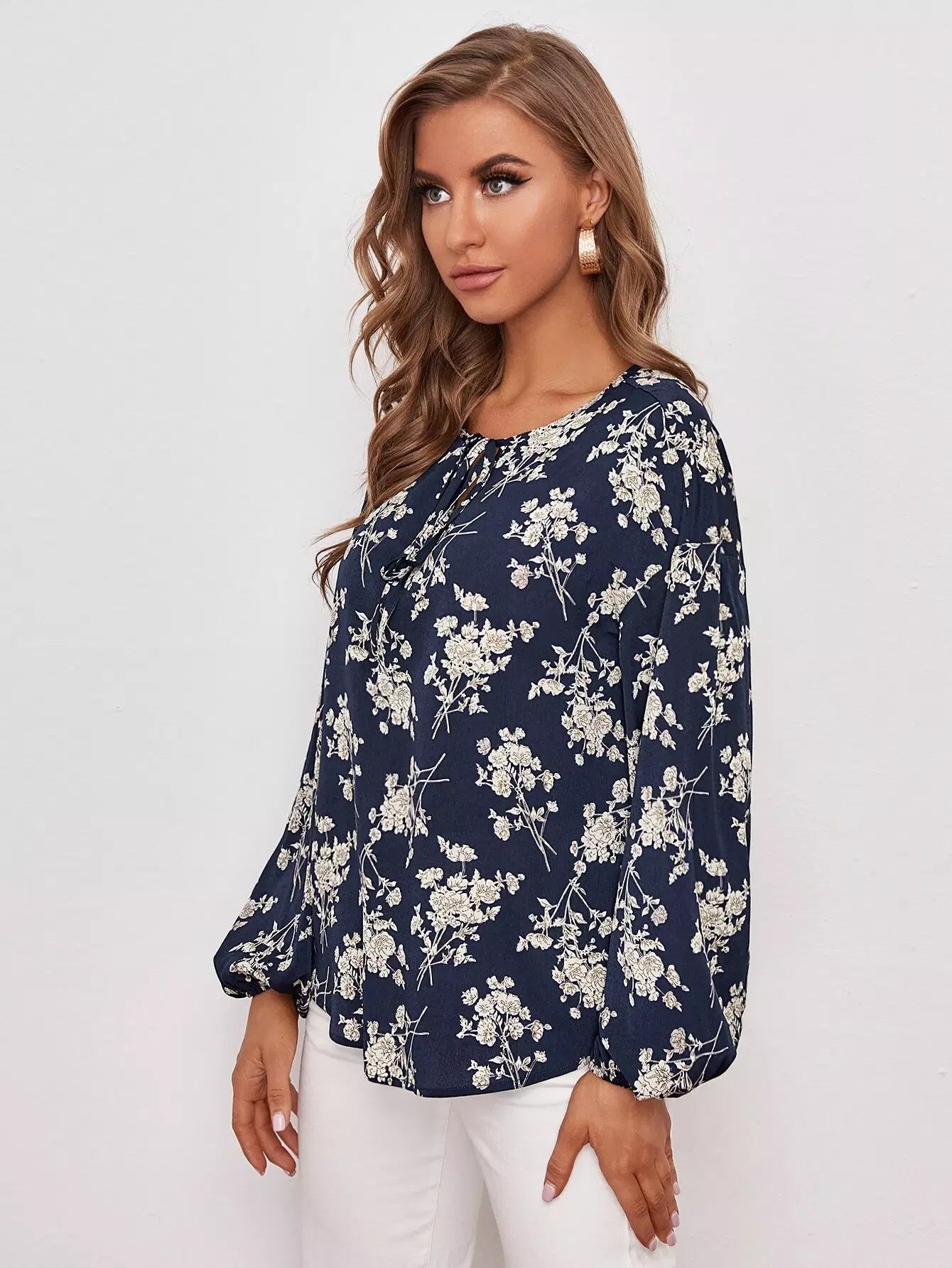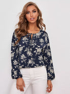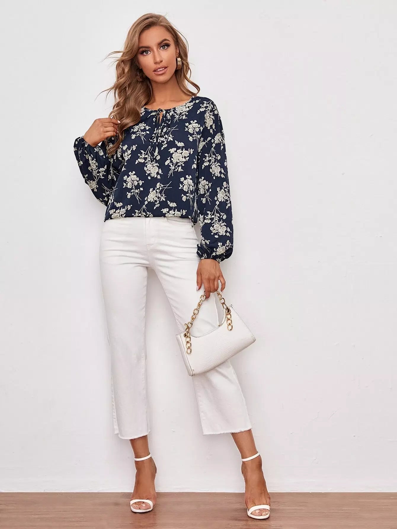 بلوزة بأكمام زهرية بأربطة أمامية معقودة من الأمام